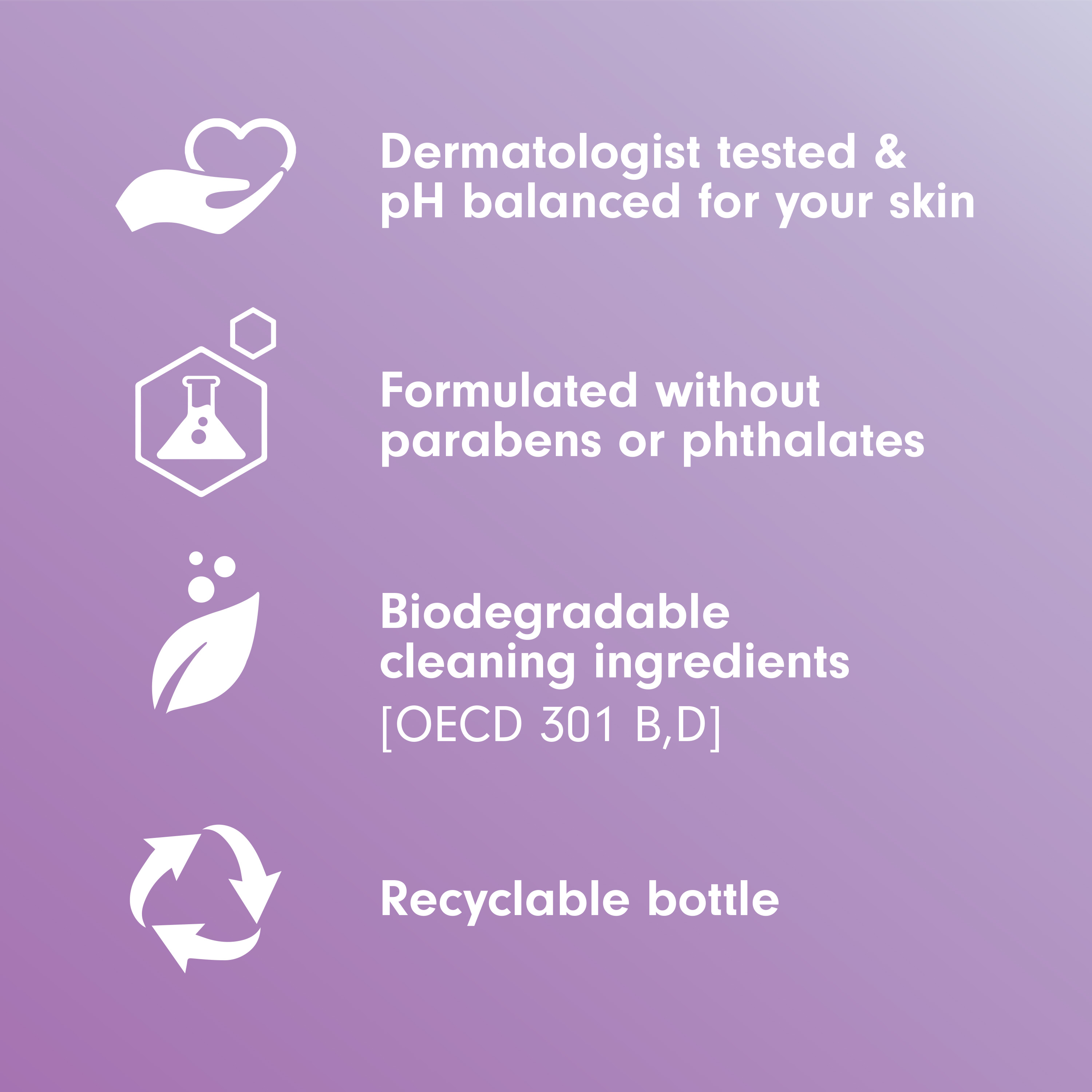 | Bullet 6 | This moisturizing body wash helps retain skin’s natural moisture, is formulated without parabens and phthalates, and is pH balanced for your skin |