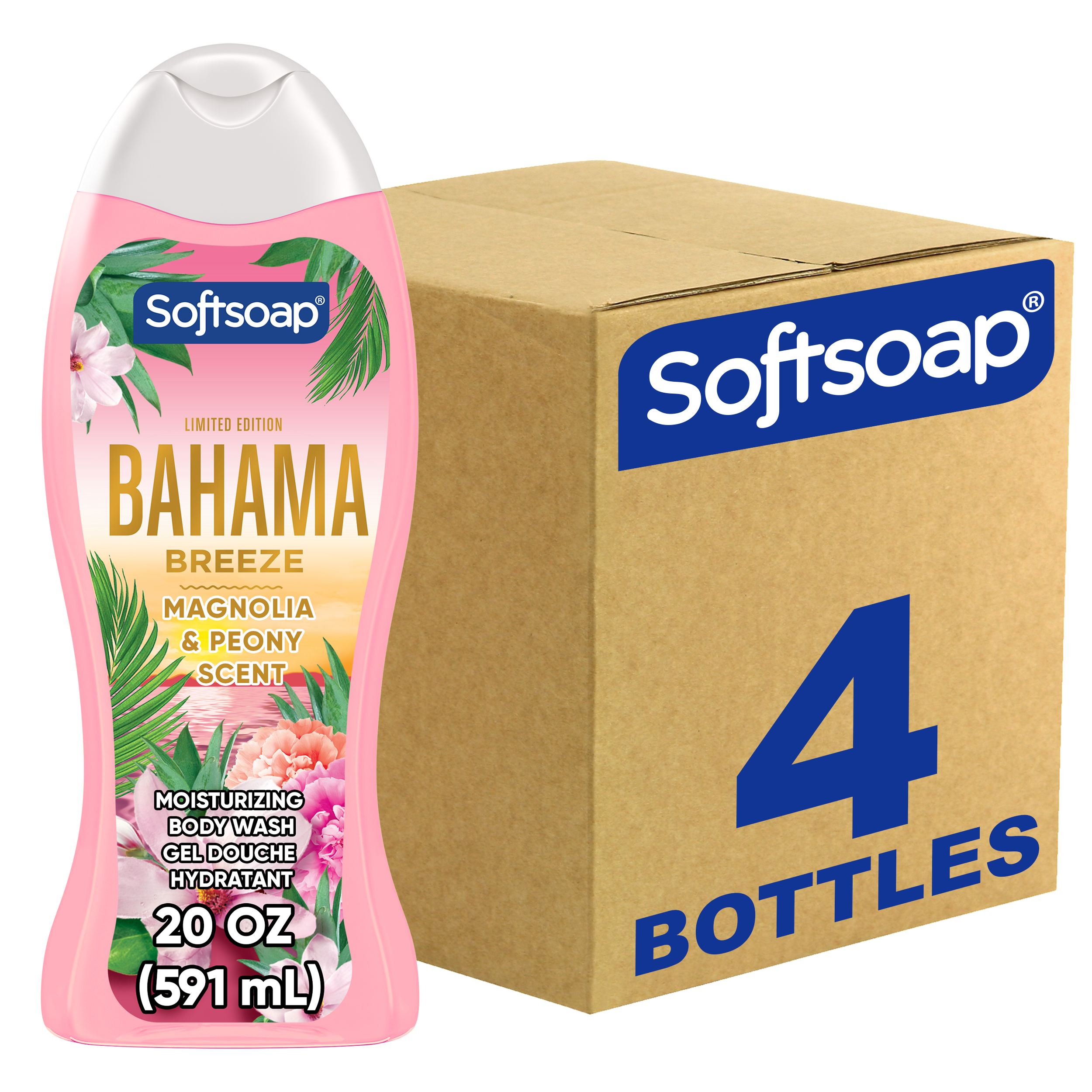Softsoap Limited Edition Bahama Breeze Moisturizing Body Wash, Magnolia and Peony Scent, 20 fl oz Bottle