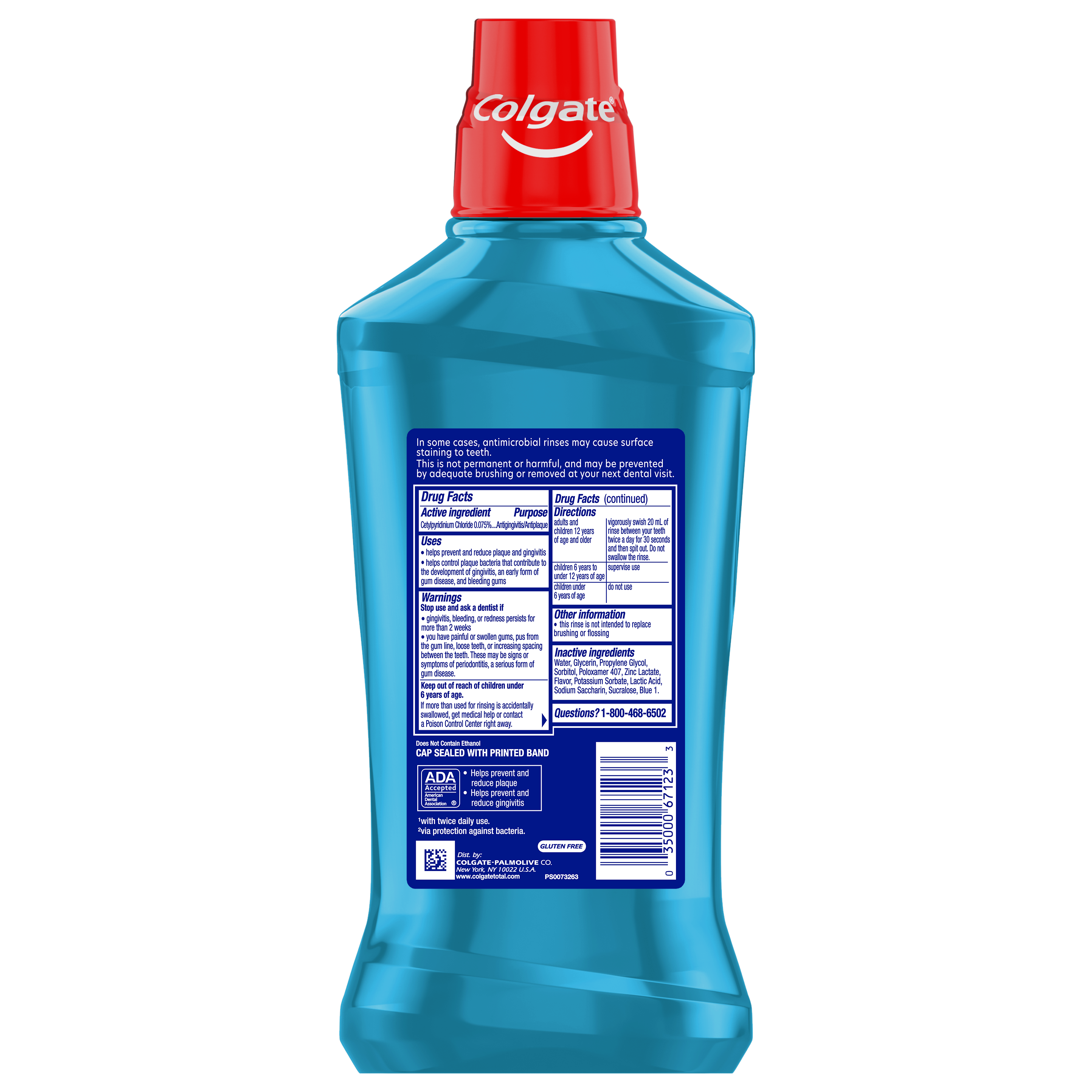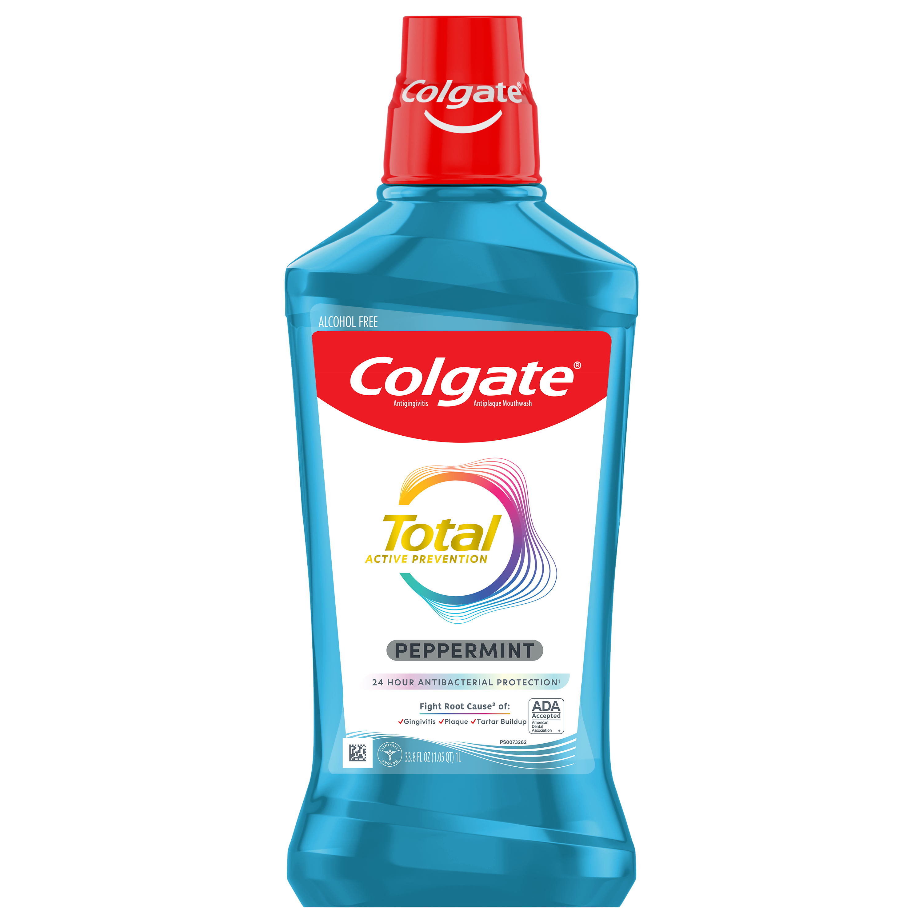 SKU 61046771 Consumer Unit - GTIN 00035000671233 Case - GTIN 10035000671230 Product Category Oral Care Product Sub Category Mouthwash Product Equity (Brand) Colgate Product Sub Brand Colgate Total MW Product Title Colgate Total Alcohol Free Mouthwash, Peppermint, 1.0 L Product Description Experience a healthy smile and fresh breath with Colgate Total Alcohol Free Peppermint Mouthwash, the only ADA-accepted alcohol-free* oral rinse with CPC as an active ingredient for plaque and gingivitis. This no-alcohol mouthwash is designed to deliver 24-hour protection against bacteria. Plus, it’s clinically proven to fight the root cause of plaque, gingivitis, and tartar buildup**, to help prevent oral health issues*** before they start. Colgate Total Alcohol Free Mouthwash uses a Zinc formula for freshness and doesn’t burn after use. This alcohol-free Colgate Total mint mouthwash continues to work after you brush, providing ongoing protection from bacteria between brushings. Use this alcohol-free mouthwash for superior performance**** and to help prevent many common oral care issues like plaque and gingivitis. For a complete approach to your oral health, use this peppermint mouthwash in combination with the Colgate Total toothpaste and the Colgate Total Active Prevention toothbrush. *does not contain ethanol **via protection against bacteria ***such as gingivitis and plaque ****vs. brushing alone eCommerce Copy- Long Description Experience a healthy smile and fresh breath with Colgate Total Alcohol Free Peppermint Mouthwash, the only ADA-accepted alcohol-free* oral rinse with CPC as an active ingredient for plaque and gingivitis. This no alcohol mouthwash is designed to deliver 24-hour protection against bacteria. Plus, it’s clinically proven to fight the root cause of plaque, gingivitis, and tartar buildup**, to help prevent oral health issues*** before they start. Colgate Total Alcohol Free Mouthwash uses a Zinc formula for freshness and doesn’t burn after use. This alcohol free Colgate Total mint mouthwash continues to work after you brush, providing ongoing protection from bacteria between brushings. Use this alcohol free mouthwash for superior performance**** and to help prevent many common oral care issues like plaque and gingivitis. For a complete approach to your oral health, use this peppermint mouthwash in combination with the Colgate Total toothpaste and the Colgate Total Active Prevention toothbrush. *does not contain ethanol **via protection against bacteria ***such as gingivitis and plaque ****vs. brushing alone Bullet 1 Includes one (1) 1.0 L bottle of Colgate Total Alcohol Free Mouthwash, Peppermint Mouthwash Bullet 2 Colgate Total Alcohol Free* Peppermint Mouthwash delivers 24-hour protection against bacteria Bullet 3 Clinically proven to target the root causes of plaque, gingivitis, and tartar buildup** and helps prevent oral health issues before they start Bullet 4 Enjoy a fresh clean with Colgate Total Peppermint Mouthwash, a no-alcohol mouthwash Bullet 5 Colgate Total Peppermint Mouthwash is an ADA-accepted mint mouthwash and the oral rinse formula uses Zinc to help with fresh breath Active Ingredients Cetylpyridinium Chloride 0.075% Amazon RPC B00CBXSGKA AMZ URL https://www.amazon.com/dp/B00CBXSGKA Walmart RPC 24491226 Walmart URL (Computed) https://www.walmart.com/ip/a/24491226 Target RPC 93723462 Target URL https://www.target.com/p/a/-/A-93723462 Albertsons RPC 960088240 Albertsons URL https://www.albertsons.com/shop/product-details.960088240.html CVS RPC 926273 Family Dollar RPC 903156