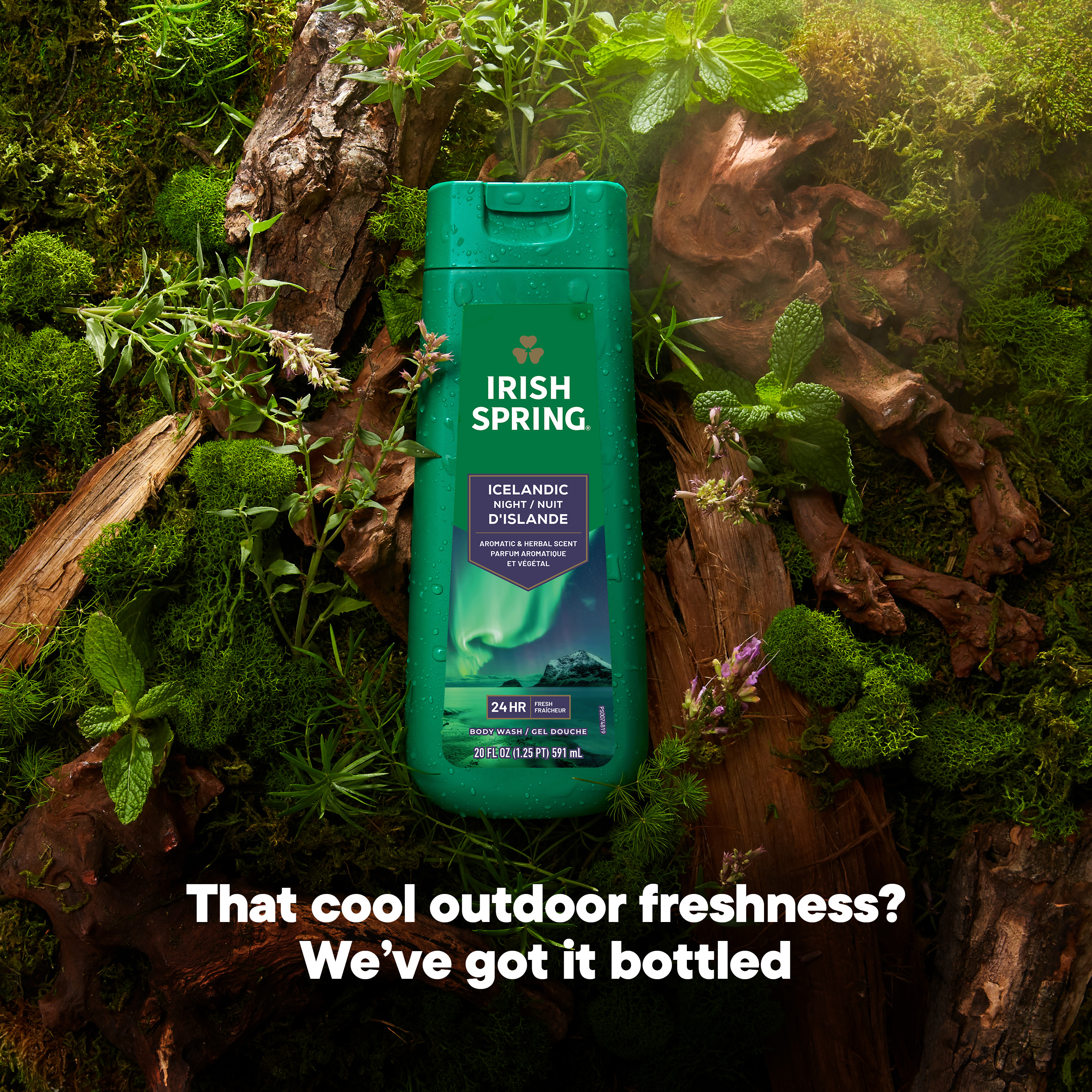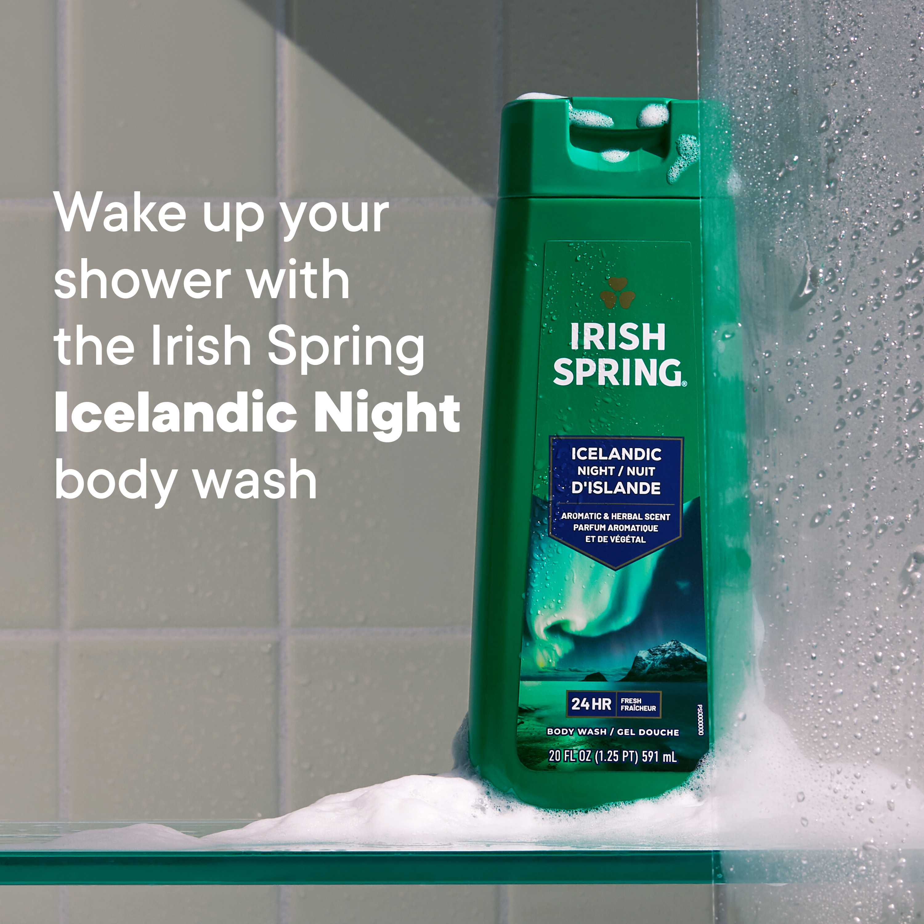 SKU 61047272 Consumer Unit - GTIN 00827854020547 Case - GTIN 10827854020544 Product Category Personal Care Product Sub Category Body Wash Product Equity (Brand) Irish Spring Product Sub Brand Irish Spring BW Product Title Irish Spring Icelandic Night Moisturizing Body Wash for Men, 24 Hour Fresh, Face and Body Wash, Men’s Body Wash, Paraben Free, Aromatic and Herbal Scent, 20 fl oz Bottle Product Description Wake up your shower with this exclusive Irish Spring Icelandic Night Body Wash, crafted for thrill-seekers who crave adventure. Infused with a curated aromatic and herbal fragrance that evokes the mysterious allure of an Icelandic night, transporting your senses to a realm of fresh, cool air and rugged landscapes. Delivering 24 hours of long-lasting crisp freshness. Designed to double as both a face wash and body wash, Irish Spring Icelandic Night simplifies your routine, giving you a refreshing cleanse from head to toe. Its formula is paraben free and crafted without phthalates. Plus, it helps retain your skin’s natural moisture, ensuring you feel hydrated and clean after every use. Whether you're exploring the world or navigating your day-to-day, Irish Spring makes sure you're ready for any journey. Let the bold, curated aromatic and herbal fragrance of Icelandic Night inspire your wanderlust, wherever life takes you. Bullet 1 What’s Included: One 20 fl oz bottle of Irish Spring Icelandic Night Face and Body Wash for Men Bullet 2 Feel Fresh All Day: Enjoy 24 hours of long-lasting freshness Bullet 3 Retains Skin’s Natural Moisture: Use as a men’s body wash or face wash Bullet 4 Aromatic and Herbal Fragrance: This invigorating formula transports your senses to the cool, mysterious landscapes of an Icelandic night, inspiring your daily quests Bullet 5 Refreshing Scent: That cool outdoor Freshness? We’ve got it bottled Bullet 6 No Luck Required: Fresh. Green. Irish Amazon RPC B0DHWJZLN9 AMZ URL https://www.amazon.com/dp/B0DHWJZLN9