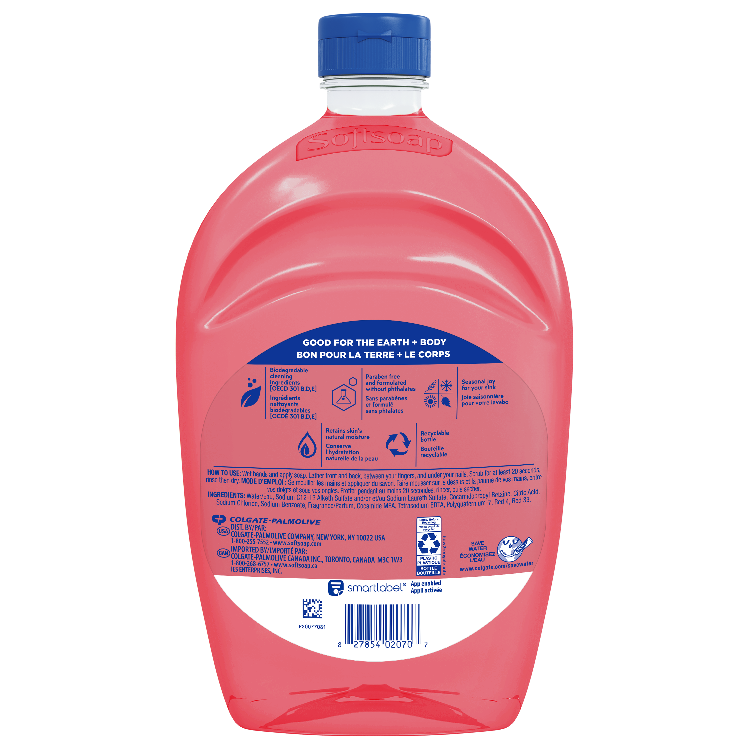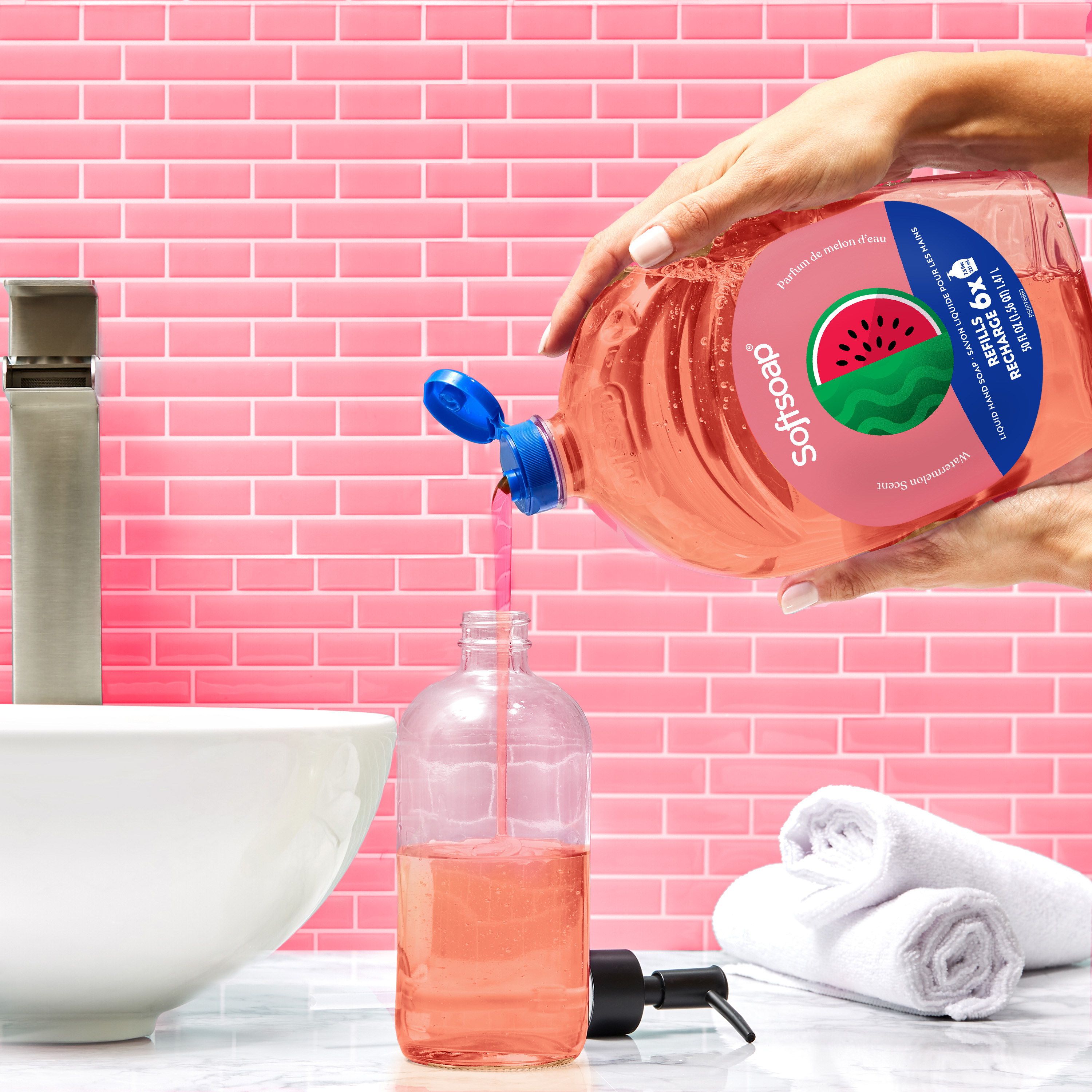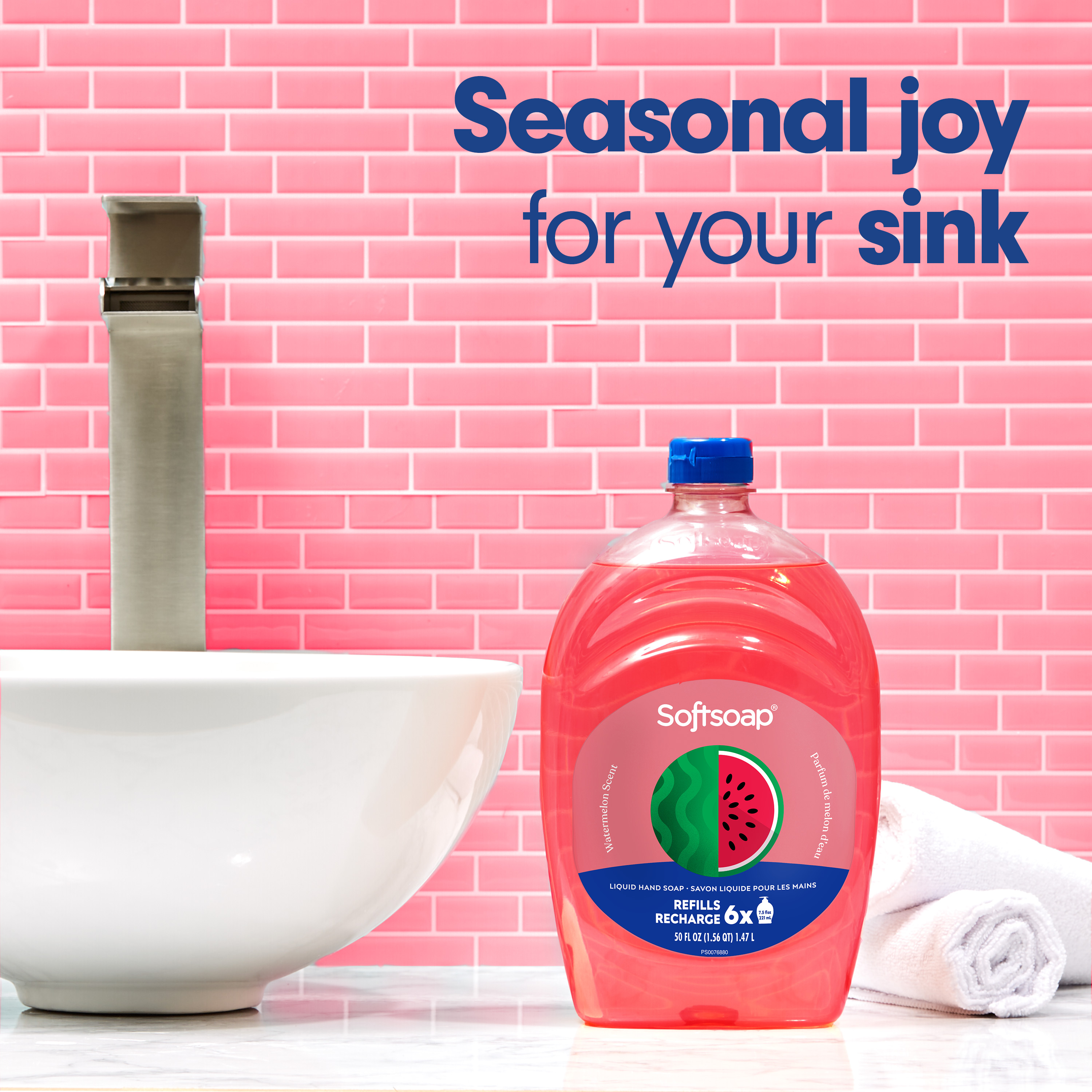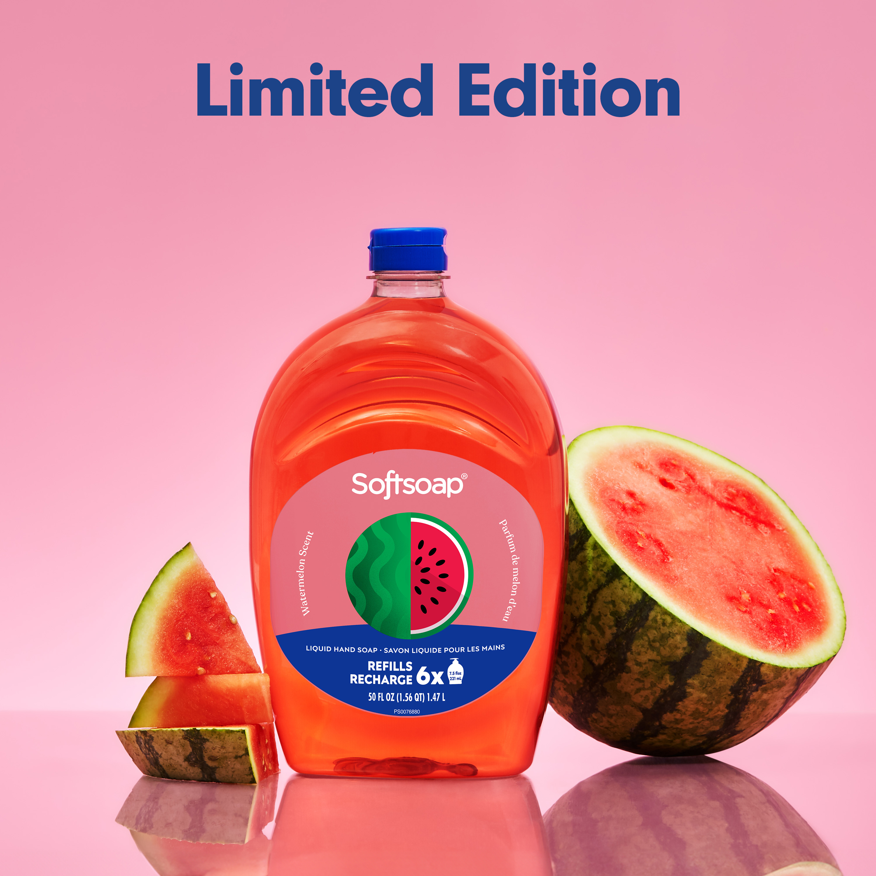SKU 61047346 Consumer Unit - GTIN 00827854020707 Case - GTIN 10827854020704 Product Category Personal Care Product Sub Category Liquid Hand Wash Product Equity (Brand) Softsoap Product Sub Brand Softsoap LHW Product Title Softsoap Limited Edition Liquid Hand Soap, Seasonal Hand Soap, Paraben Free, pH Balanced, Watermelon Scent, 50 fl oz Refill Bottle Product Description Infuse your daily routine with Softsoap’s Limited Edition Watermelon Scented Liquid Hand Soap. Add a touch of fun to your daily routine with this delightful hand soap that sparks joy with every pump, turning a simple task into a cheerful moment. Softsoap is America's #1 Liquid Hand Soap brand (1), trusted to clean your hands since 1975. Enjoy the juicy, refreshing scent of watermelon with our seasonal hand soap, capturing the essence of sunny days and revitalizing sweetness. Our refill size bottle is perfect for keeping the handwashing experience going, with enough soap to refill six 7.5 fl oz bottles. Our formula is pH balanced, is paraben free, and formulated without phthalates. This hand soap helps retain your skin's natural moisture after every wash. Health care agencies recommend washing hands with soap and clean running water for 20 seconds to wash away dirt and bacteria. Don't miss the chance to make every hand wash a moment of happiness, grab yours while supplies last. (1) Based in part on data reported by Nielsen through its Market Track Service for the Liquid Hand Soap Category for the 52 week period ending 9/28/24, for the All Outlet market. Copyright © 2024 Nielsen. eCommerce Copy- Long Description Infuse your daily routine with Softsoap’s Limited Edition Watermelon Scented Liquid Hand Soap. Add a touch of fun to your daily routine with this delightful hand soap that sparks joy with every pump, turning a simple task into a cheerful moment. Softsoap is America's #1 Liquid Hand Soap brand (1), trusted to clean your hands since 1975. Enjoy the juicy, refreshing scent of watermelon with our seasonal hand soap, capturing the essence of sunny days and revitalizing sweetness. Our refill size bottle is perfect for keeping the handwashing experience going, with enough soap to refill six 7.5 fl oz bottles. Our formula is pH balanced, is paraben free, and formulated without phthalates. This hand soap helps retain your skin's natural moisture after every wash. Health care agencies recommend washing hands with soap and clean running water for 20 seconds to wash away dirt and bacteria. Don't miss the chance to make every hand wash a moment of happiness, grab yours while supplies last. (1) Based in part on data reported by Nielsen through its Market Track Service for the Liquid Hand Soap Category for the 52 week period ending 9/28/24, for the All Outlet market. Copyright © 2024 Nielsen. Bullet 1 One 50 fl oz refill bottle of Softsoap Limited Edition Liquid Hand Soap, Watermelon Scent Bullet 2 Softsoap is America's #1 Liquid Hand Soap brand (1), trusted to clean your hands since 1975 Bullet 3 Our refill size bottle is perfect for keeping the handwashing experience going, with enough soap to refill six 7.5 fl oz bottles Bullet 4 Enjoy the juicy, refreshing scent of watermelon with our seasonal hand soap, capturing the essence of sunny days and revitalizing sweetness Bullet 5 Versatile to use as a bathroom hand soap, kitchen hand soap, or in any other space that needs a touch of fun Bullet 6 Our formula is pH balanced, is paraben free, and formulated without phthalates Bullet 7 This seasonal hand soap helps retain your skin's natural moisture after every wash Walmart RPC 9391170816 Walmart URL (Computed) https://www.walmart.com/ip/a/9391170816