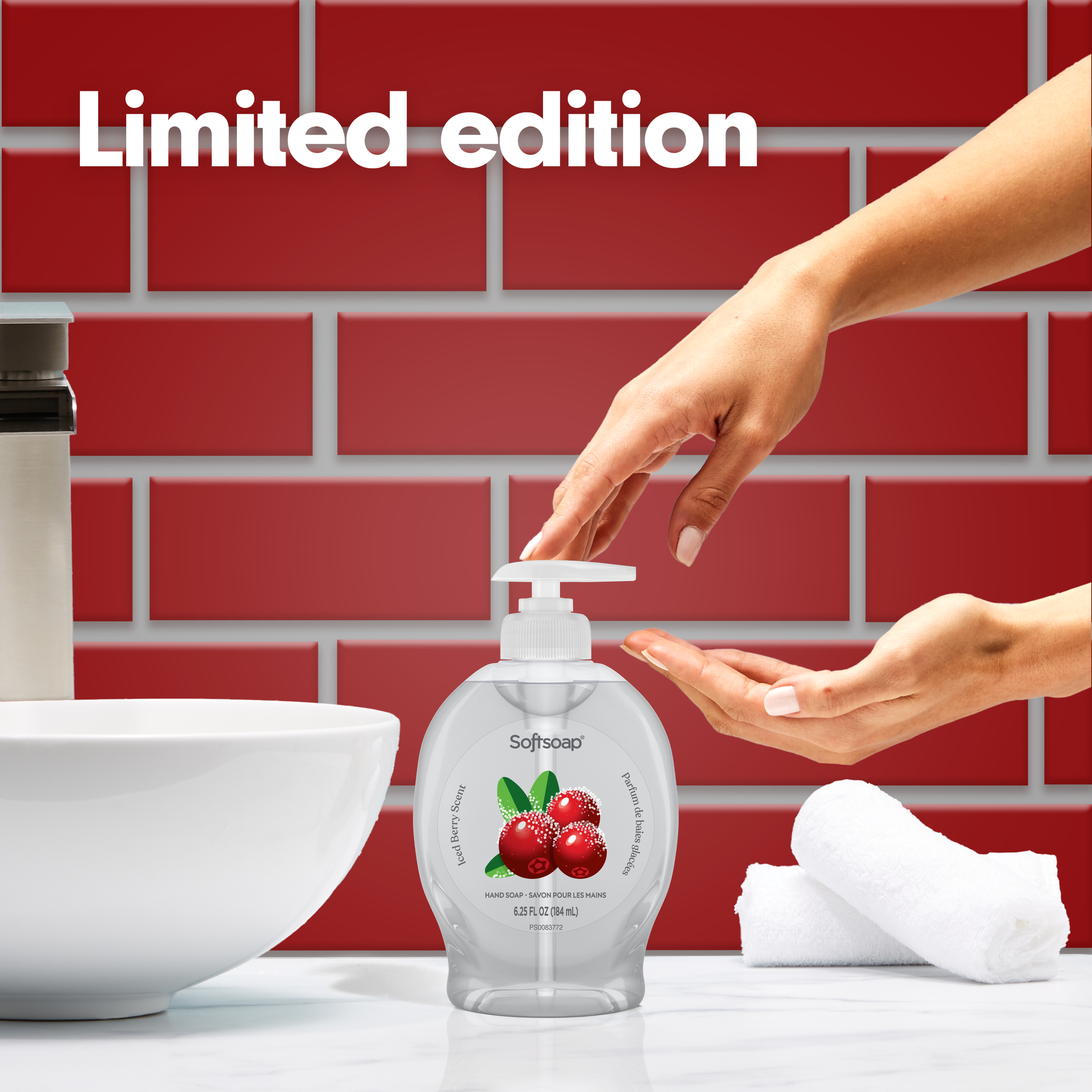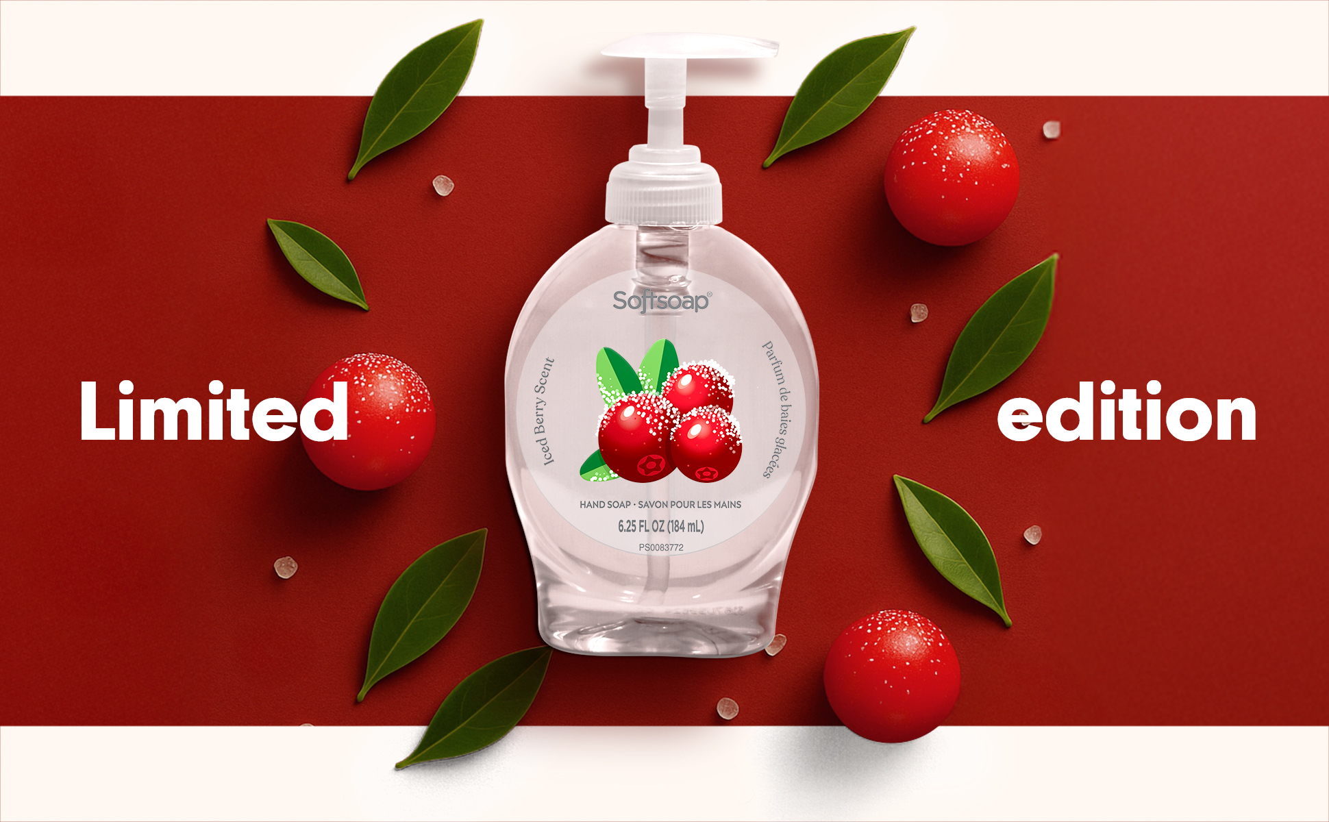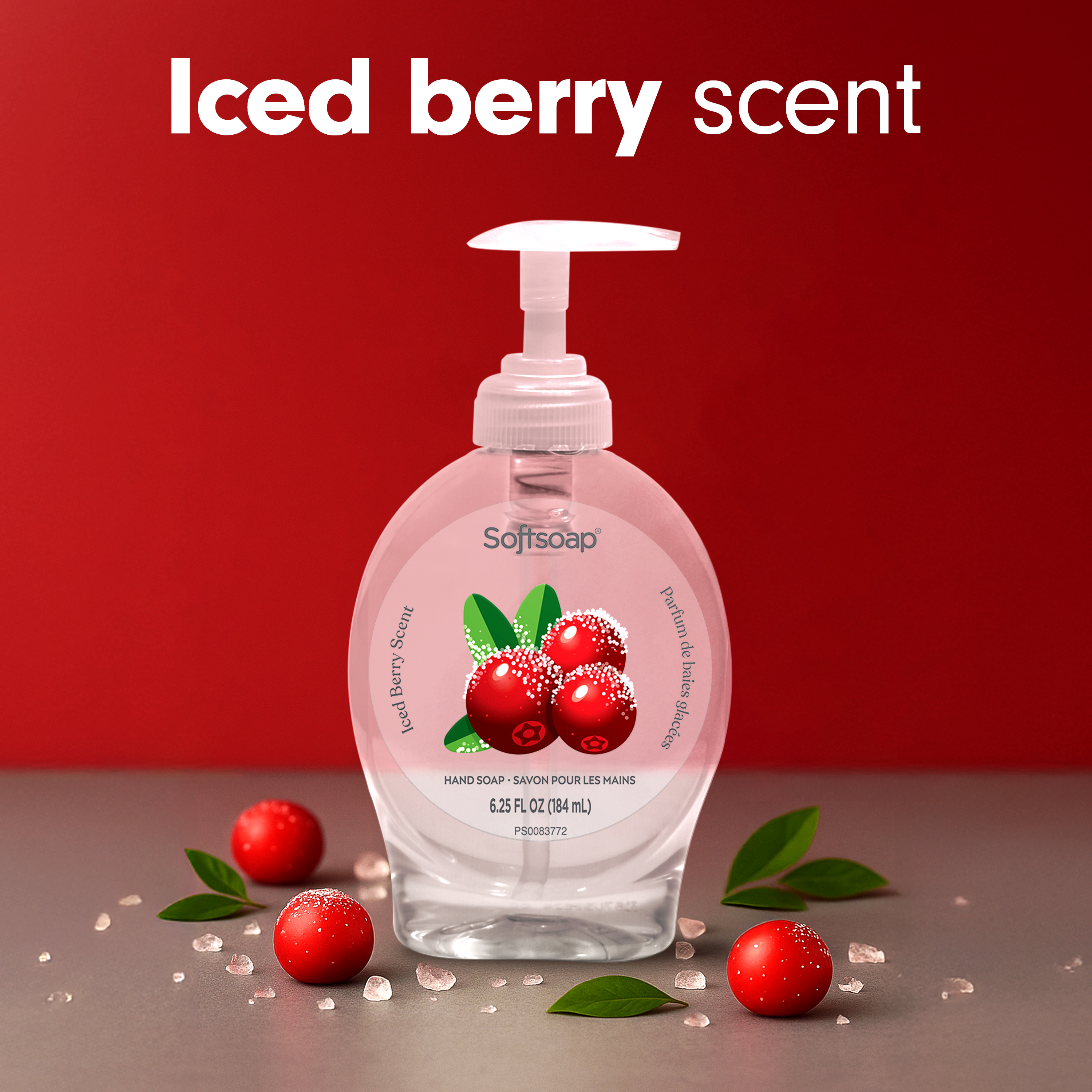 SKU 61047409 Consumer Unit - GTIN 00827854020950 Case - GTIN 10827854020957 Product Category Personal Care Product Sub Category Liquid Hand Wash Product Equity (Brand) Softsoap Product Sub Brand Softsoap LHW Product Title Softsoap Limited Edition Liquid Hand Soap, Kitchen or Bathroom Hand Soap, Iced Berry Scent, 6.25 fl oz Pump Bottle Product Description Love your sink this season with Softsoap's Limited Edition Iced Berry Liquid Hand Soap. From America's #1 Liquid Hand Soap brand (1), our seasonal hand soap is a fruity scent that blends juicy berries with a touch of frosty sweetness for a refreshing winter feel. This hand soap washes away bacteria and helps retain skin’s natural moisture. Its formula is paraben free and formulated without phthalates. Ideal for use throughout the home, from kitchen to bathroom, it’s a perfect addition to any space needing a seasonal touch. Embrace the essence of winter with this inviting Iced Berry scent. Available for a limited time; stock up now to enjoy a little extra warmth and charm in your daily routine! (1) Based in part on data reported by Nielsen through its Market Track Service for the Liquid Hand Soap Category for the 52 week period ending 02/15/2025, for the All Outlet market. Copyright © 2025 Nielsen Bullet 1 One 6.25 fl oz pump bottle of Softsoap Limited Edition Liquid Hand Soap, Iced Berry Scent Bullet 2 Softsoap is America's #1 Liquid Hand Soap brand (1), trusted to clean your hands since 1975 Bullet 3 Our seasonal hand soap is a crisp, fruity scent that blends juicy berries with a touch of frosty sweetness for a refreshing winter feel Bullet 4 This winter hand soap helps to retain skin's natural moisture Bullet 5 This scented hand soap is paraben free and formulated without phthalates Bullet 6 Health care agencies recommend washing hands with soap and clean running water for 20 seconds to wash away dirt and bacteria Bullet 7 Versatile enough for use in the bathroom, kitchen, or in any space that could use a seasonal touch Walmart RPC 15243017597 Walmart URL (Computed) https://www.walmart.com/ip/a/15243017597