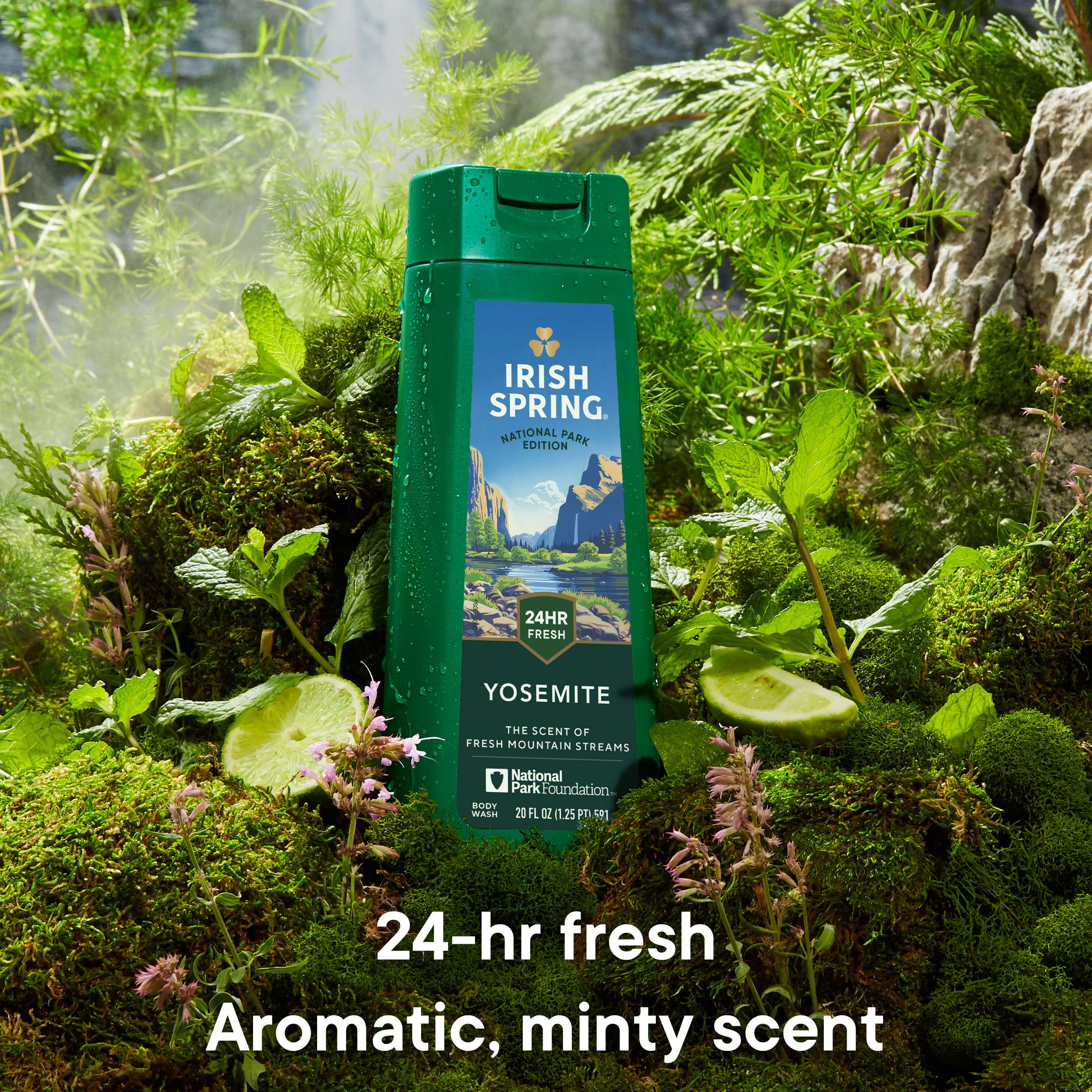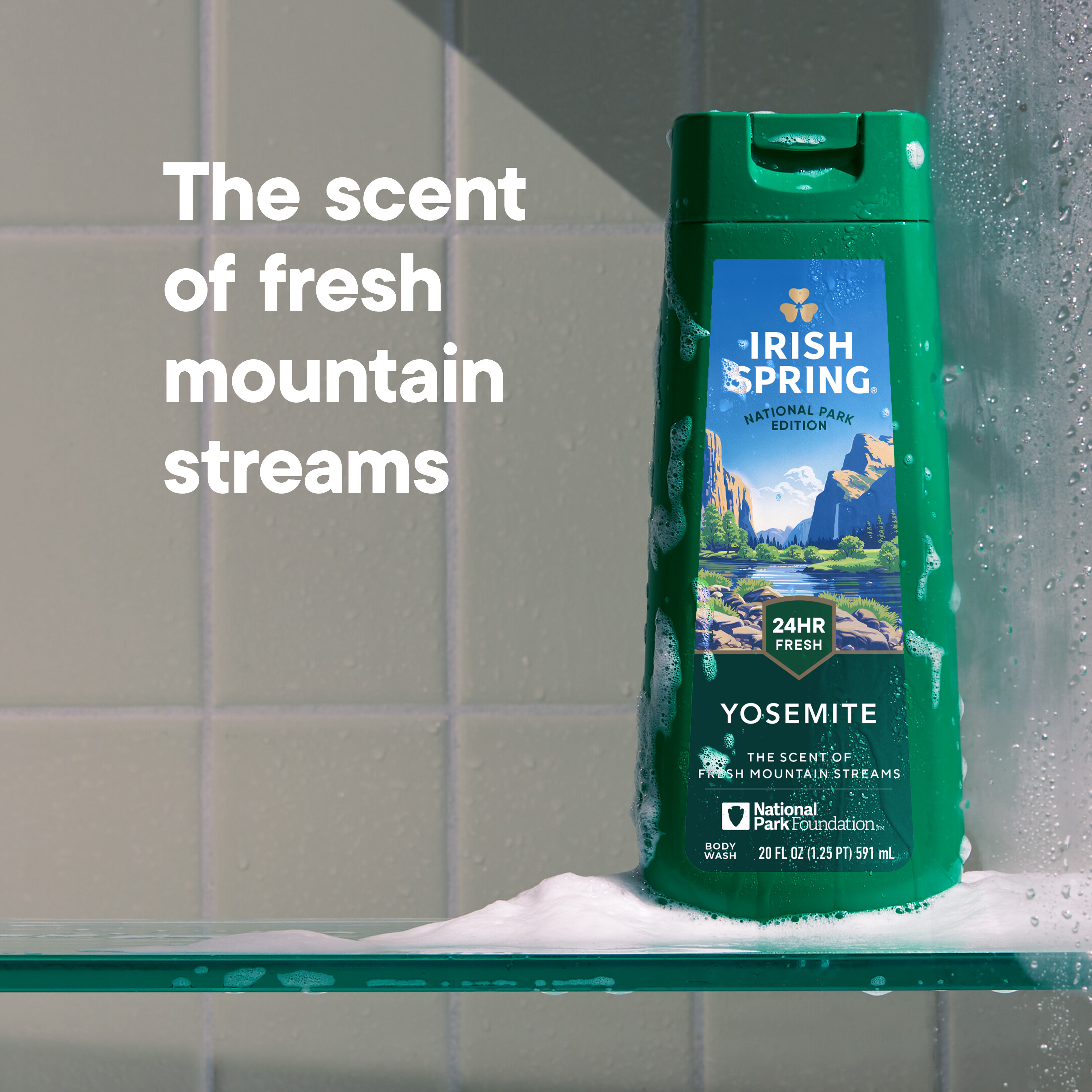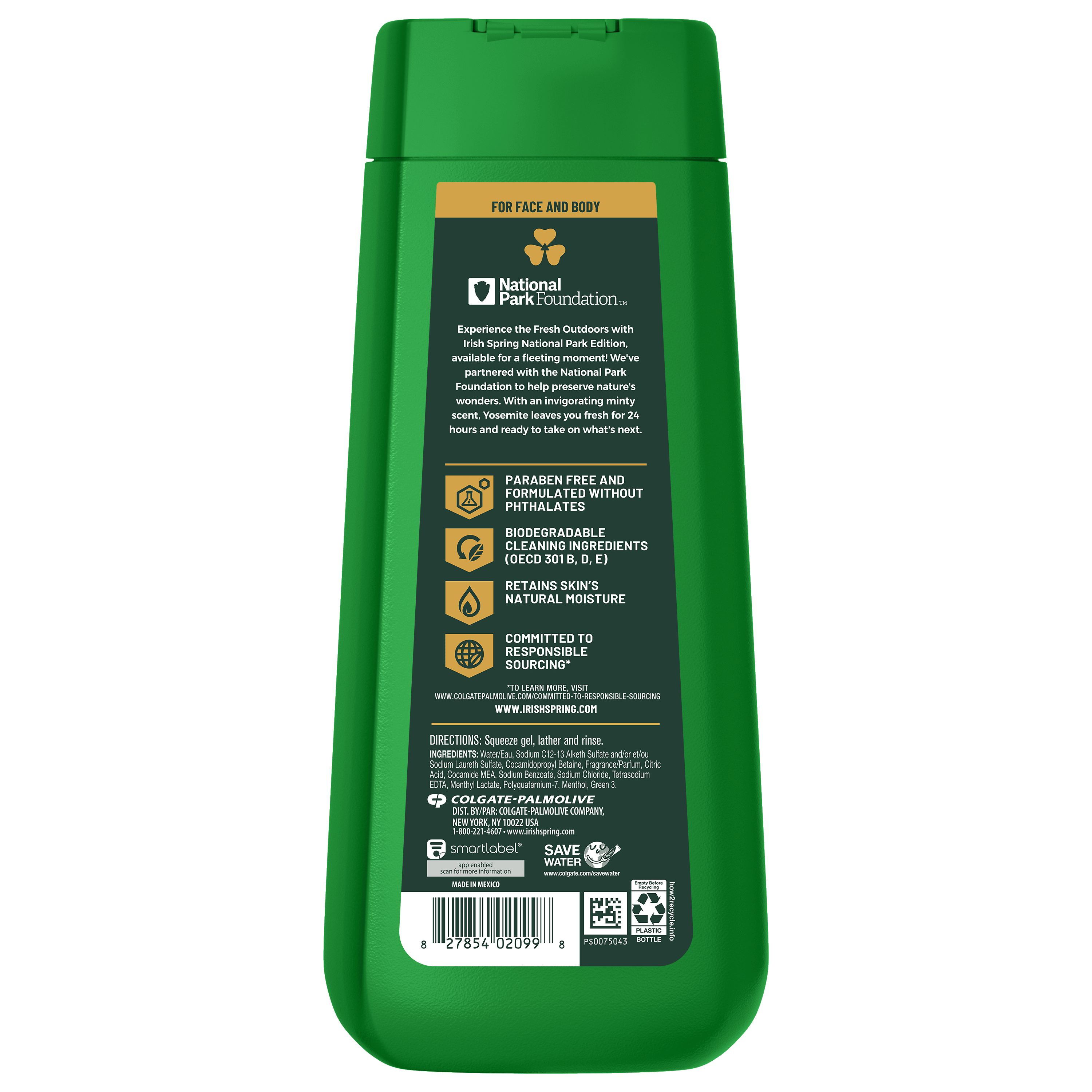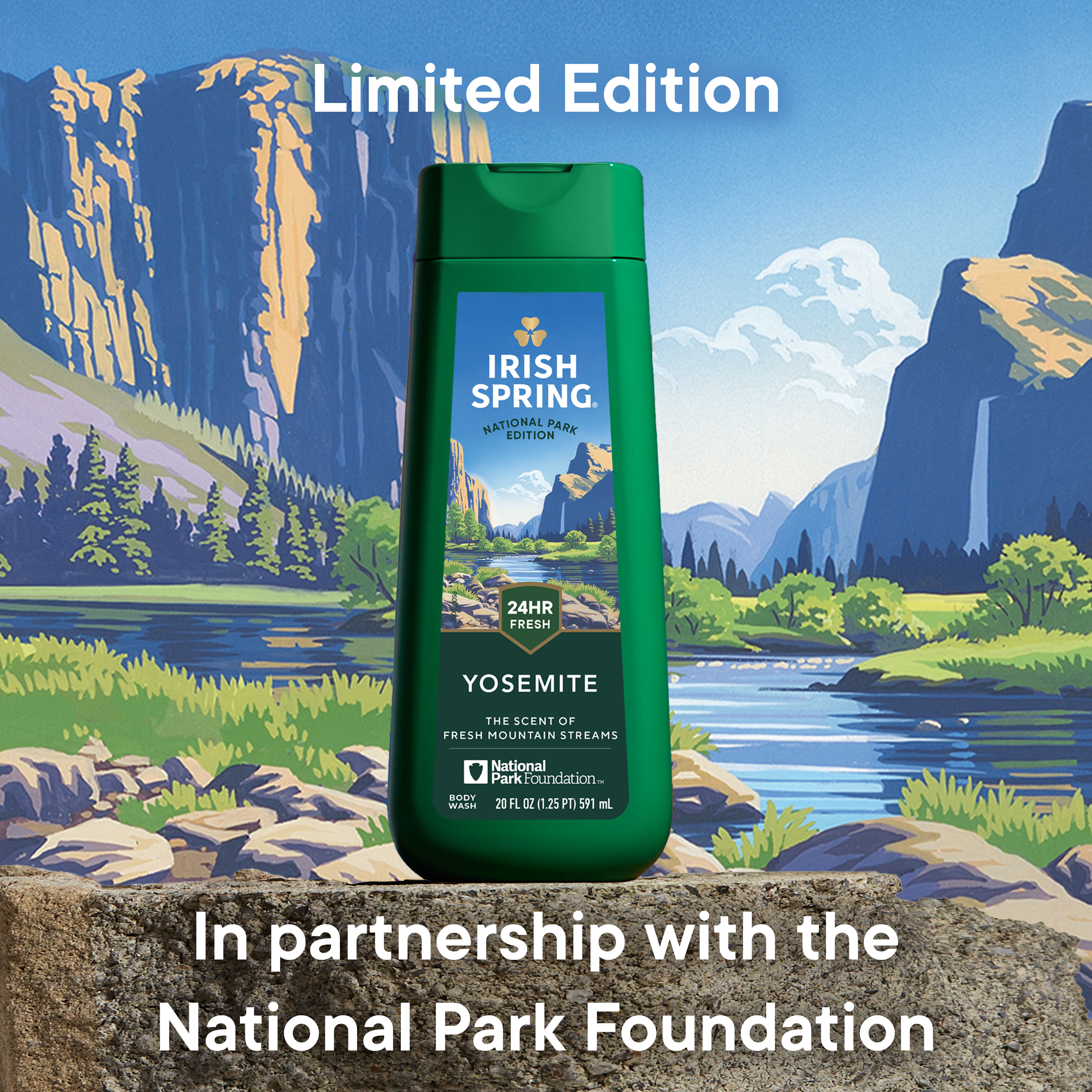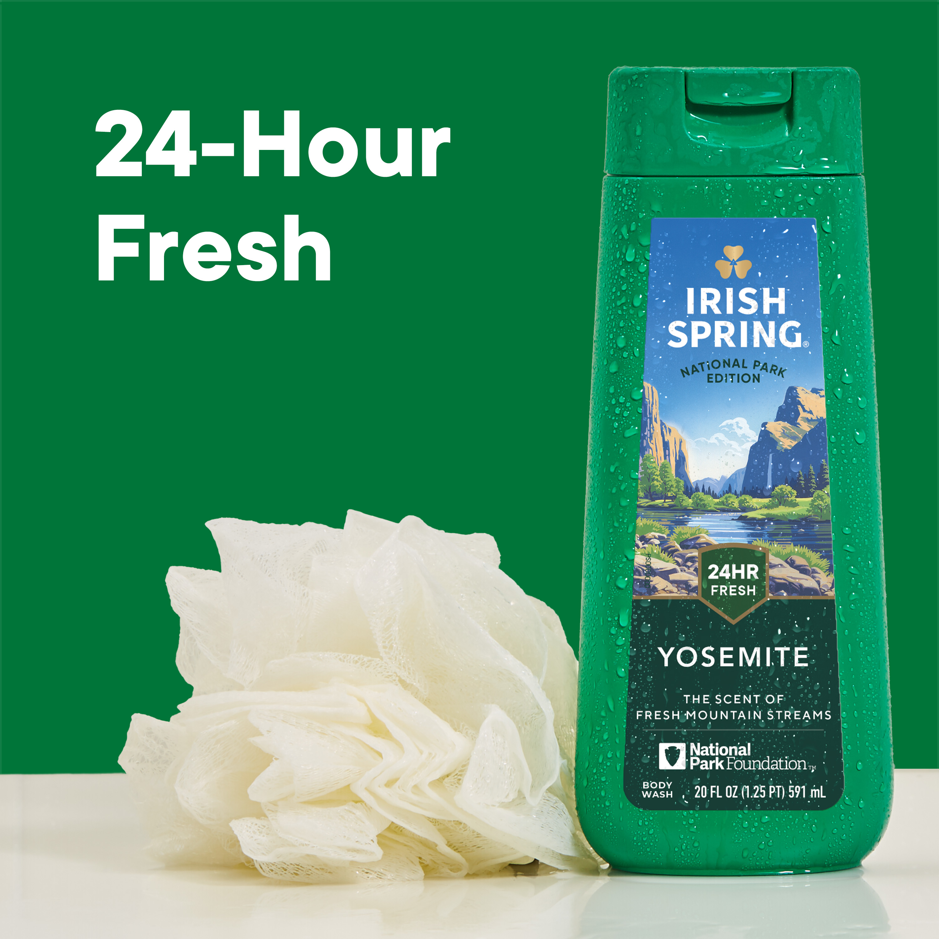 | Product Description | Experience the fresh outdoors with Irish Spring’s exclusive National Park Edition Yosemite Body Wash. This limited edition creation is crafted for those who seek adventure and a deep connection to nature’s beauty. Inspired by the fresh mountain streams of Yosemite, this refreshing body wash delivers a crisp, aromatic scent with minty notes, providing 24 hours of long-lasting freshness. Irish Spring has partnered with the National Park Foundation to bring this unique product to life and help support the preservation of America’s natural wonders. Each bottle is adorned with Yosemite-inspired graphics, transporting you to this iconic landscape and inviting you to start each day with a sense of exploration. Designed to double as a face and body wash, Irish Spring Yosemite simplifies your routine, offering a revitalizing cleanse from head to toe. Its paraben free formula is crafted without phthalates and helps retain your skin’s natural moisture, leaving you feeling hydrated and ready for your next journey. Embrace the refreshing, herbal fragrance of Irish Spring Yosemite and let it awaken your spirit of adventure. With Irish Spring, you’re always ready for what’s next, whether exploring the great outdoors or navigating daily life. |