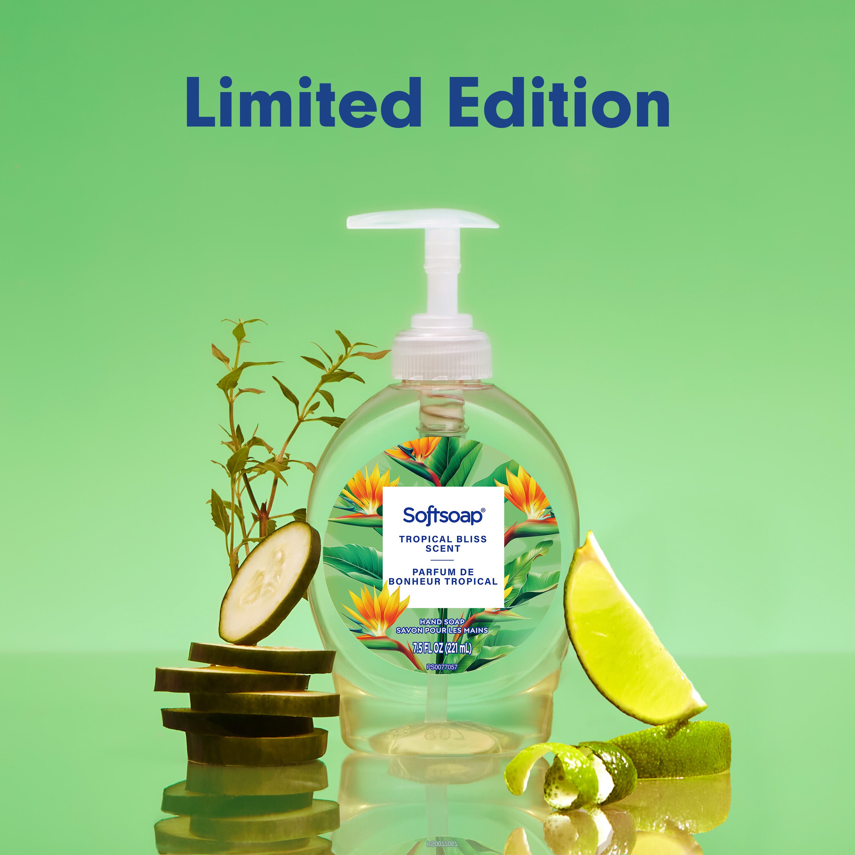 Softsoap Limited Edition Tropical Bliss Liquid Hand Soap, Seasonal Hand Soap, Paraben Free, pH Balanced, Sweet Cucumber Scent, 7.5 fl oz Pump Bottle