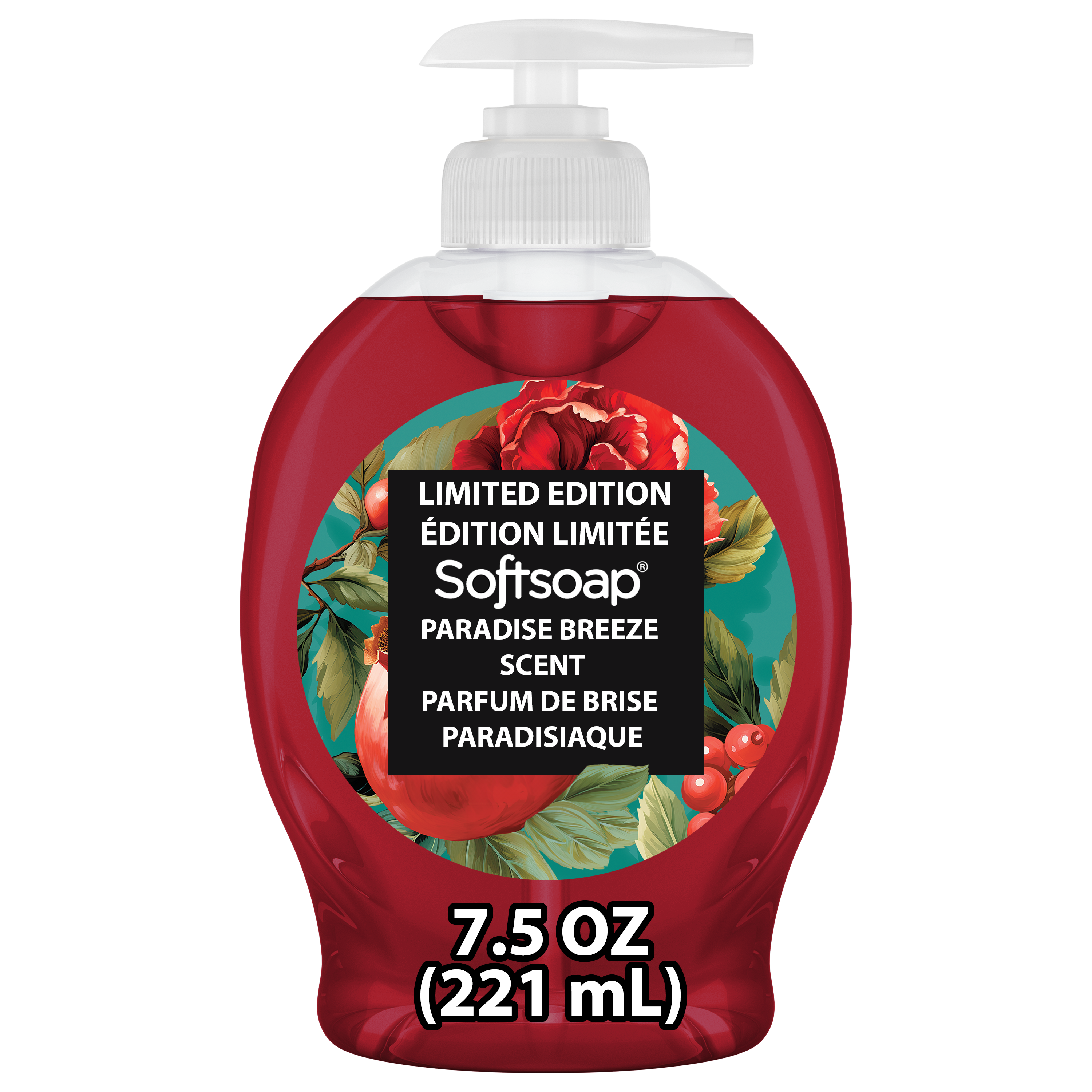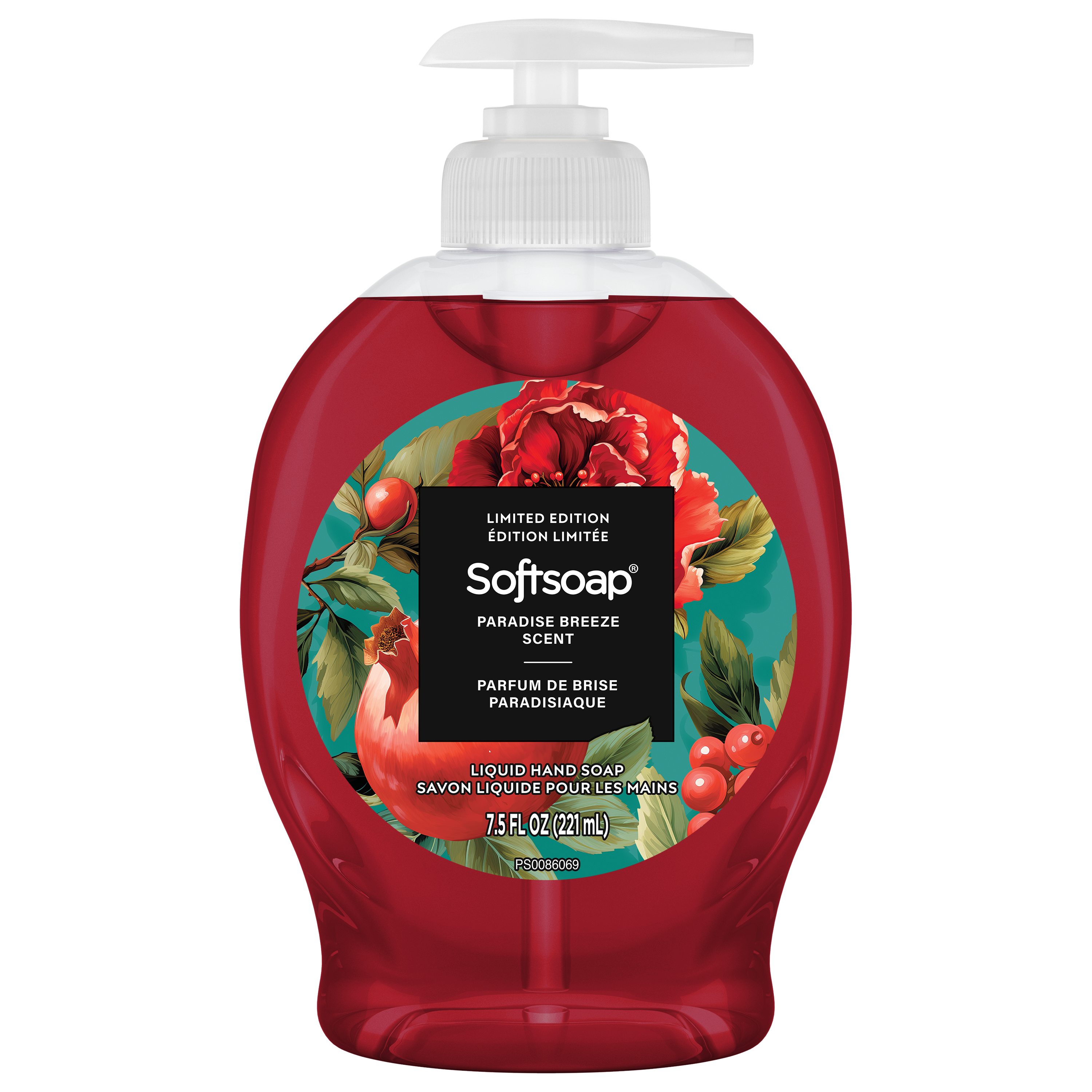 SKU 61047556 Consumer Unit - GTIN 00827854021193 Case - GTIN 10827854021190 Product Category Personal Care Product Sub Category Liquid Hand Wash Product Equity (Brand) Softsoap Product Sub Brand Softsoap LHW Product Title Softsoap Limited Edition Liquid Hand Soap, Kitchen and Bathroom Hand Soap, Paradise Breeze Scent, 7.5 fl oz Pump Bottle Product Description Brighten your daily routine with Softsoap’s Limited Edition Paradise Breeze Scented Liquid Hand Soap. Softsoap is America's #1 liquid hand soap brand (1), trusted to clean your hands since 1975. This red hand soap, with its Paradise Breeze scent, blends bright citrus notes, juicy tropical fruits fragrance, and a soft, fresh finish to brighten your mood. Our scented hand soap helps retain skin’s natural moisture. This seasonal soap is paraben free and formulated without phthalates. Health care agencies recommend washing hands with soap and clean running water for 20 seconds to wash away dirt and bacteria. Versatile for any space, this beautifully packaged kitchen hand soap adds a touch of freshness to your sink this season. Don't miss the chance to make every hand wash a moment of happiness; grab yours while supplies last. (1) Based in part on data reported by Nielsen through its Market Track Service for the Liquid Hand Soap Category for the 52 week period ending 02/15/25, for the All Outlet market. Copyright © 2025 Nielsen Bullet 1 One 7.5 fl oz pump bottle of Softsoap Limited Edition Liquid Hand Soap, Paradise Breeze Scent Bullet 2 Softsoap is America's #1 liquid hand soap brand (1), trusted to clean your hands since 1975 Bullet 3 This red hand soap, with its Paradise Breeze scent, blends bright citrus notes, juicy tropical fruits fragrance, and a soft, fresh finish instantly brightening your mood Bullet 4 Versatile to use as a bathroom hand soap, kitchen hand soap, or in any other space that needs a touch of happiness Bullet 5 Our scented hand soap helps retain skin’s natural moisture Bullet 6 This seasonal soap is paraben free and formulated without phthalates Bullet 7 This beautifully packaged hand soap adds a touch of freshness to your sink this season Target RPC 94671614 Target URL https://www.target.com/p/a/-/A-94671614