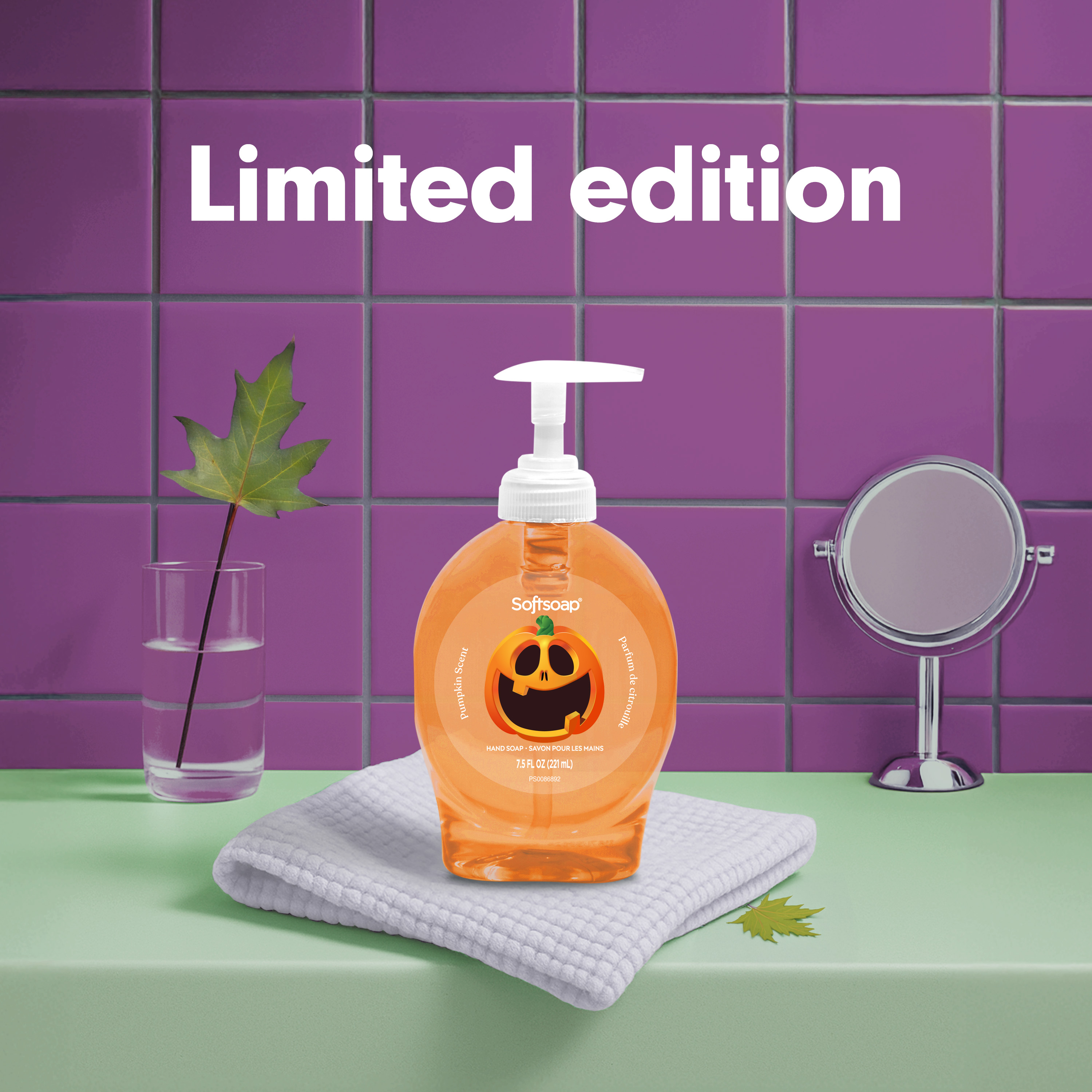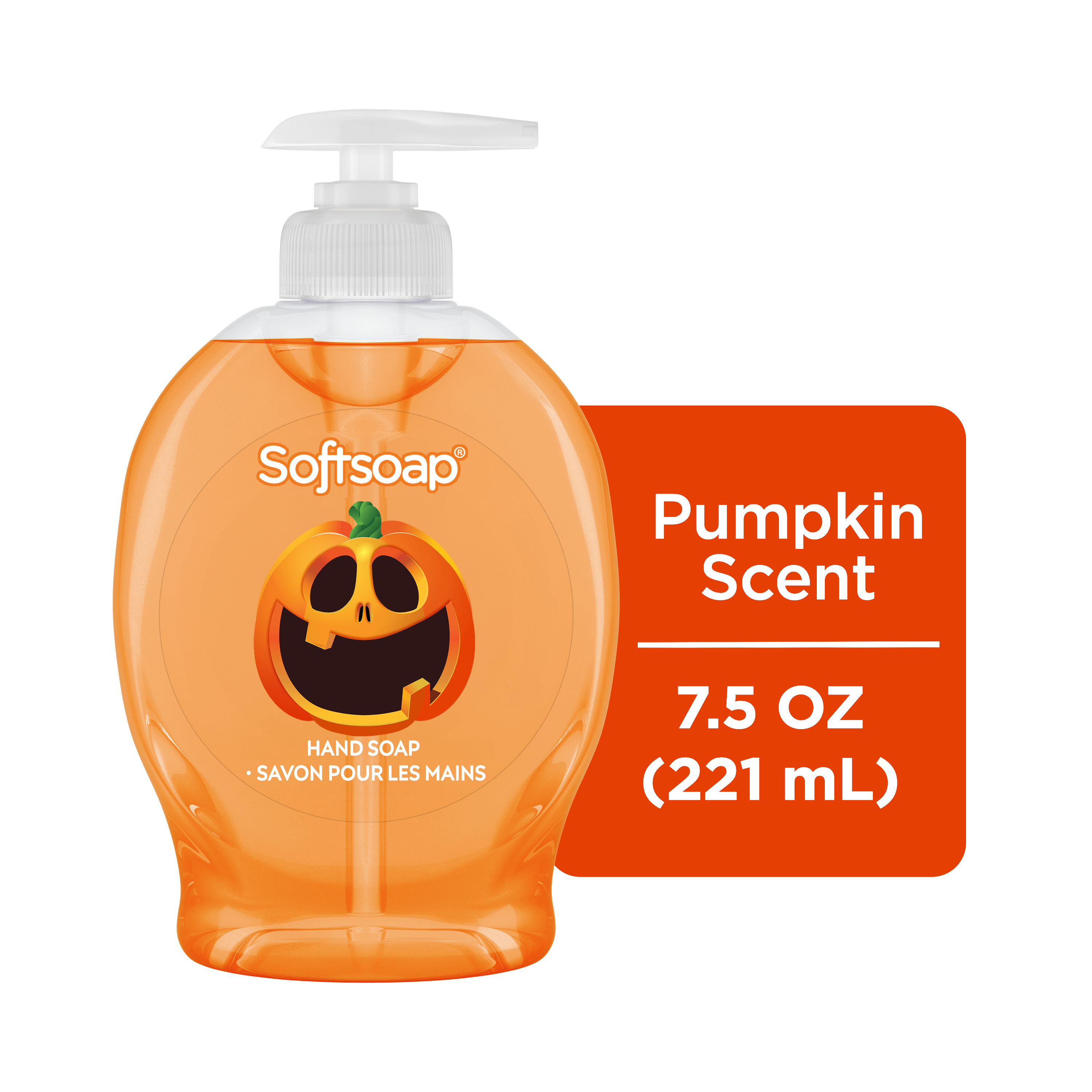 SKU 61047648 Consumer Unit - GTIN 00827854021308 Case - GTIN 10827854021305 Product Category Personal Care Product Sub Category Liquid Hand Wash Product Equity (Brand) Softsoap Product Sub Brand Softsoap LHW Product Title Softsoap Limited Edition Halloween Liquid Hand Soap Pump, Pumpkin Scent, 7.5 fl oz Product Description Celebrate Halloween every time you wash your hands with Softsoap Limited Edition Pumpkin Scented Liquid Hand Soap, featuring a convenient hand soap pump for easy dispensing. The sweet pumpkin spice fragrance captures the playful spirit of the season and adds a festive touch to your sink. The fun seasonal packaging delights both kids and adults, making handwashing a joyful part of your fall routine. This formula is paraben-free, made without phthalates, and helps retain skin’s natural moisture for daily cleansing. Softsoap, the #1 liquid hand soap brand*, is versatile to use in the kitchen, as a bathroom hand soap, or in any other space that needs a touch of warmth. So why not treat yourself to our limited edition fall hand soap and enjoy the season to the fullest? Stock up now while supplies last and bring a little bit of fun into your daily routine! *Based in part on data reported by Nielsen through its Market Track Service for the Liquid Hand Soap Category for the 52 week period ending 07/01/25, for the All Outlet market. Copyright © 2025 Nielsen. Bullet 1 One 7.5 fl oz pump bottle of Softsoap Limited Edition Hand Soap, Pumpkin Scent Bullet 2 Softsoap is the #1 liquid hand soap brand* Bullet 3 Softsoap’s seasonal hand soap sparks joy and brightens up your day Bullet 4 This Halloween hand soap helps to retain skin's natural moisture Bullet 5 This sweet pumpkin spice hand soap is paraben-free and formulated without phthalates Bullet 6 Versatile to use in the bathroom, as a kitchen hand soap, or in any other space that needs a touch of warmth Bullet 7 Health care agencies recommend washing hands with soap and clean running water for 20 seconds to wash away dirt and bacteria Walmart RPC 15712558817 Walmart URL (Computed) https://www.walmart.com/ip/a/15712558817