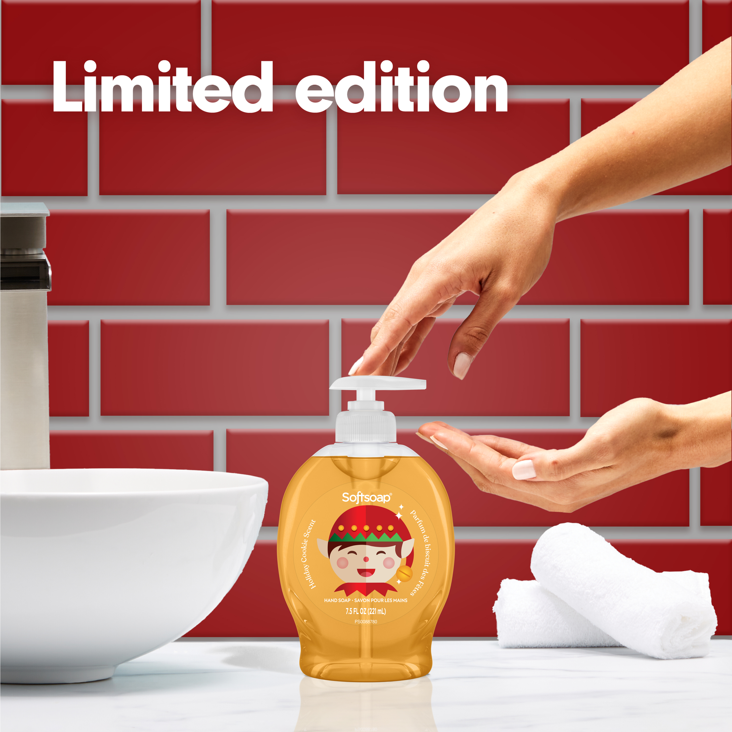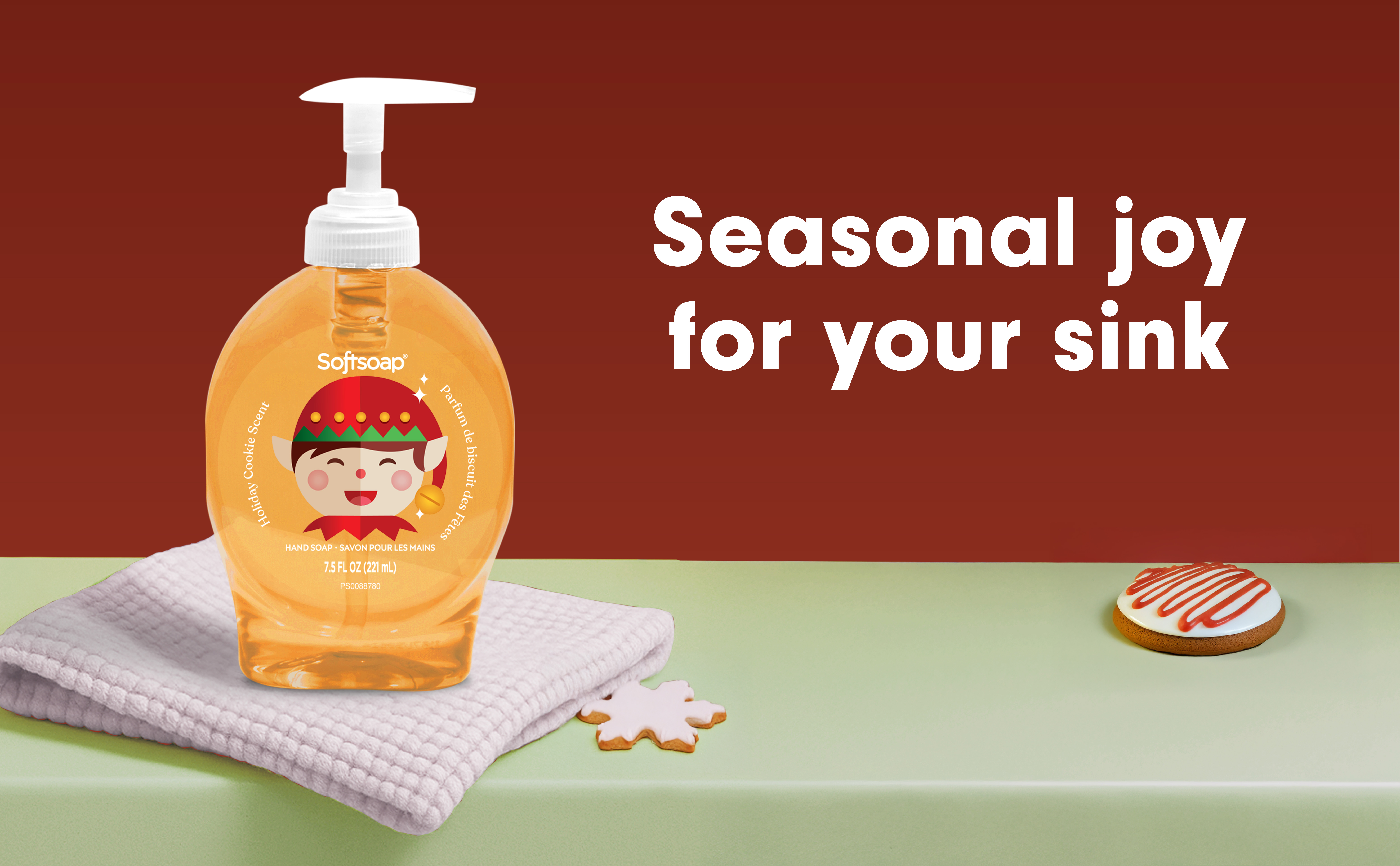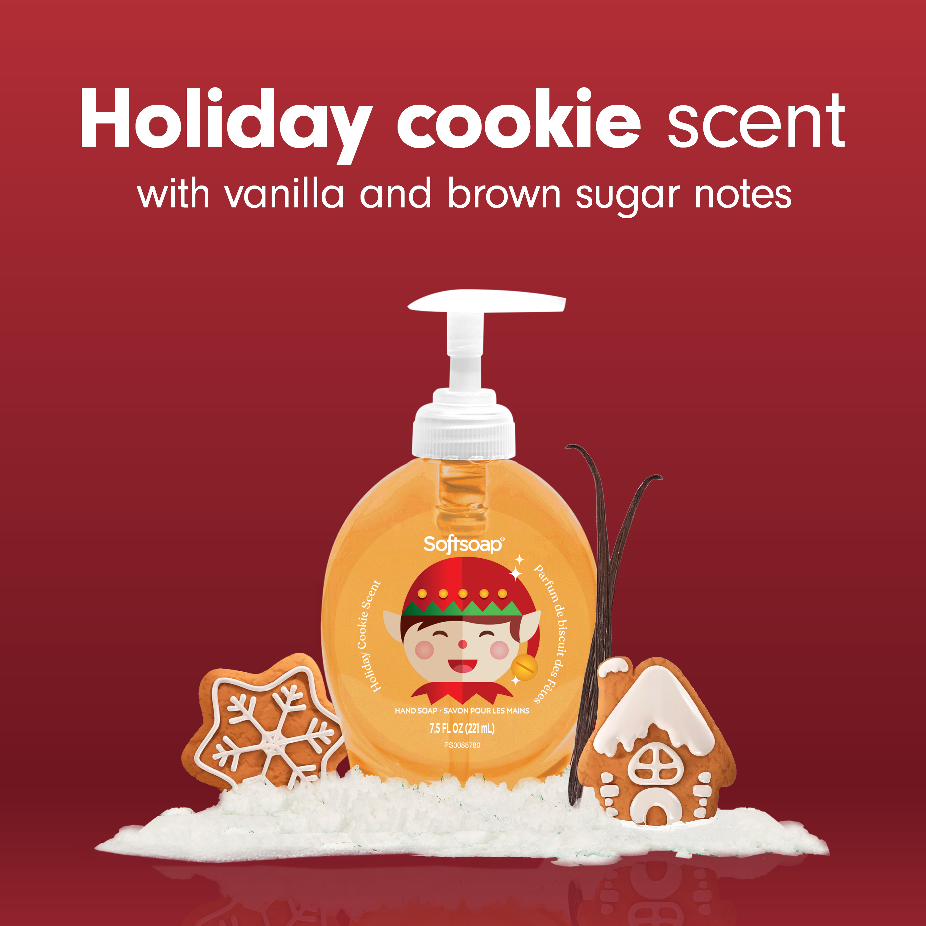 SKU 61047683 Consumer Unit - GTIN 00827854021360 Case - GTIN 10827854021367 Product Category Personal Care Product Sub Category Liquid Hand Wash Product Equity (Brand) Softsoap Product Sub Brand Softsoap LHW Product Title Softsoap Limited Edition Holiday Cookie Liquid Hand Soap, Kitchen or Bathroom Hand Soap, 7.5 fl oz Pump Bottle Product Description Add a touch of seasonal delight to your daily routine with Softsoap Limited Edition Holiday Cookie Liquid Hand Soap. This special edition features a sweet holiday cookie scent that captures the festive spirit of winter, filling your home with a comforting bakery aroma. The cheerful packaging is inspired by holiday treats and warm gatherings, adding a decorative accent to any kitchen or bathroom. Formulated without parabens or phthalates, it cleanses while helping skin retain its natural moisture. This hand soap is pH balanced for your skin. Perfect for elevating your handwashing experience, this limited edition soap is available in a 7.5 fl oz pump bottle and only for a short time. Stock up to bring a hint of seasonal joy for your sink. Enjoy a clean that feels as good as it smells and make every hand wash a reminder of cozy moments and festive celebrations during the colder months. Bullet 1 Includes one 7.5 fl oz pump bottle of Softsoap Limited Edition Holiday Cookie Liquid Hand Soap Bullet 2 Features festive packaging inspired by holiday treats and warm gatherings for a cheerful seasonal accent Bullet 3 Paraben-free and phthalate-free formula helps skin retain its natural moisture with each hand wash Bullet 4 Ideal for use in the bathroom, as a kitchen hand soap, or anywhere that could use a touch of winter warmth Bullet 5 This seasonal hand soap is pH balanced for your skin Walmart RPC 15738014462 Walmart URL (Computed) https://www.walmart.com/ip/a/15738014462