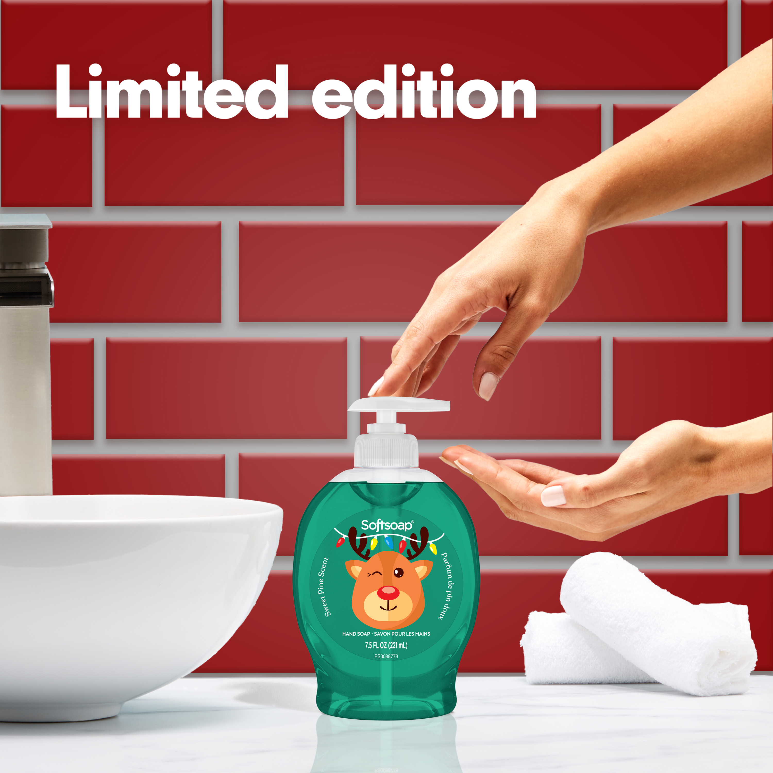 SKU 61047738 Consumer Unit - GTIN 00827854021384 Case - GTIN 10827854021381 Product Category Personal Care Product Sub Category Liquid Hand Wash Product Equity (Brand) Softsoap Product Sub Brand Softsoap LHW Product Title Softsoap Limited Edition Sweet Pine Liquid Hand Soap, Kitchen or Bathroom Hand Soap, 7.5 fl oz Pump Bottle Product Description Add a touch of seasonal delight to your daily routine with Softsoap Limited Edition Sweet Pine Liquid Hand Soap. This special edition features a fresh sweet pine scent that captures the crisp spirit of winter, filling your home with a festive aroma. The cheerful packaging is inspired by pine forests and brisk air, adding a decorative accent to any kitchen or bathroom. Formulated without parabens or phthalates, it cleanses while helping skin retain its natural moisture. This fall hand soap is pH balanced for your skin. Perfect for elevating your handwashing experience, this limited edition soap is available in a 7.5 fl oz pump bottle and only for a short time. Stock up to bring a hint of seasonal joy for your sink. Enjoy a clean that feels as good as it smells and make every hand wash a reminder of cozy moments and festive celebrations during the colder months. Bullet 1 Includes one 7.5 fl oz pump bottle of Softsoap Limited Edition Sweet Pine Liquid Hand Soap Bullet 2 Features festive packaging inspired by pine forests and crisp fall air for a cheerful seasonal accent Bullet 3 Paraben-free and phthalate-free formula helps skin retain its natural moisture with each hand wash Bullet 4 Ideal for use in the bathroom, as a kitchen hand soap, or anywhere that could use a touch of winter warmth Bullet 5 This seasonal hand soap is pH balanced for your skin Walmart RPC 15725662476 Walmart URL (Computed) https://www.walmart.com/ip/a/15725662476