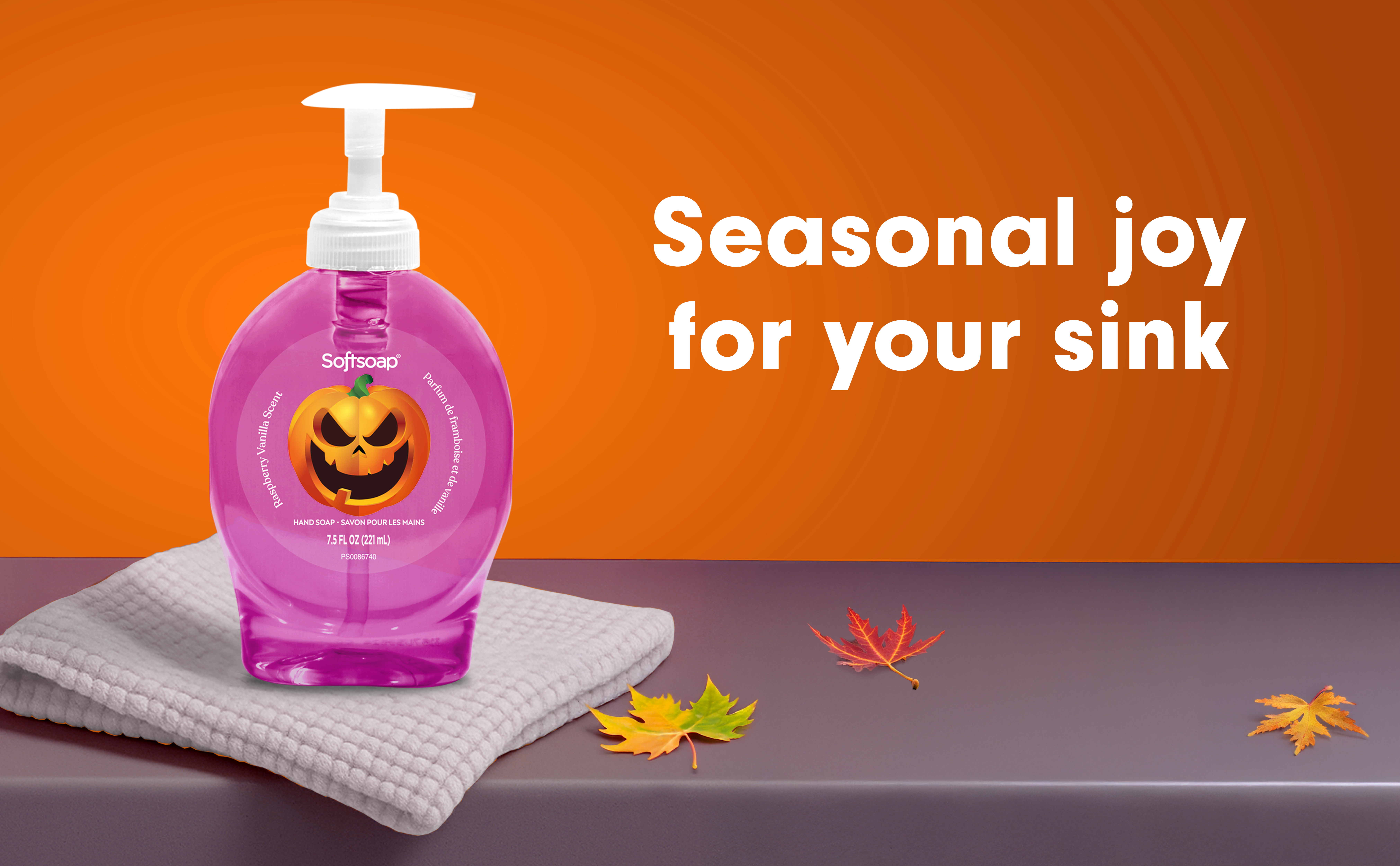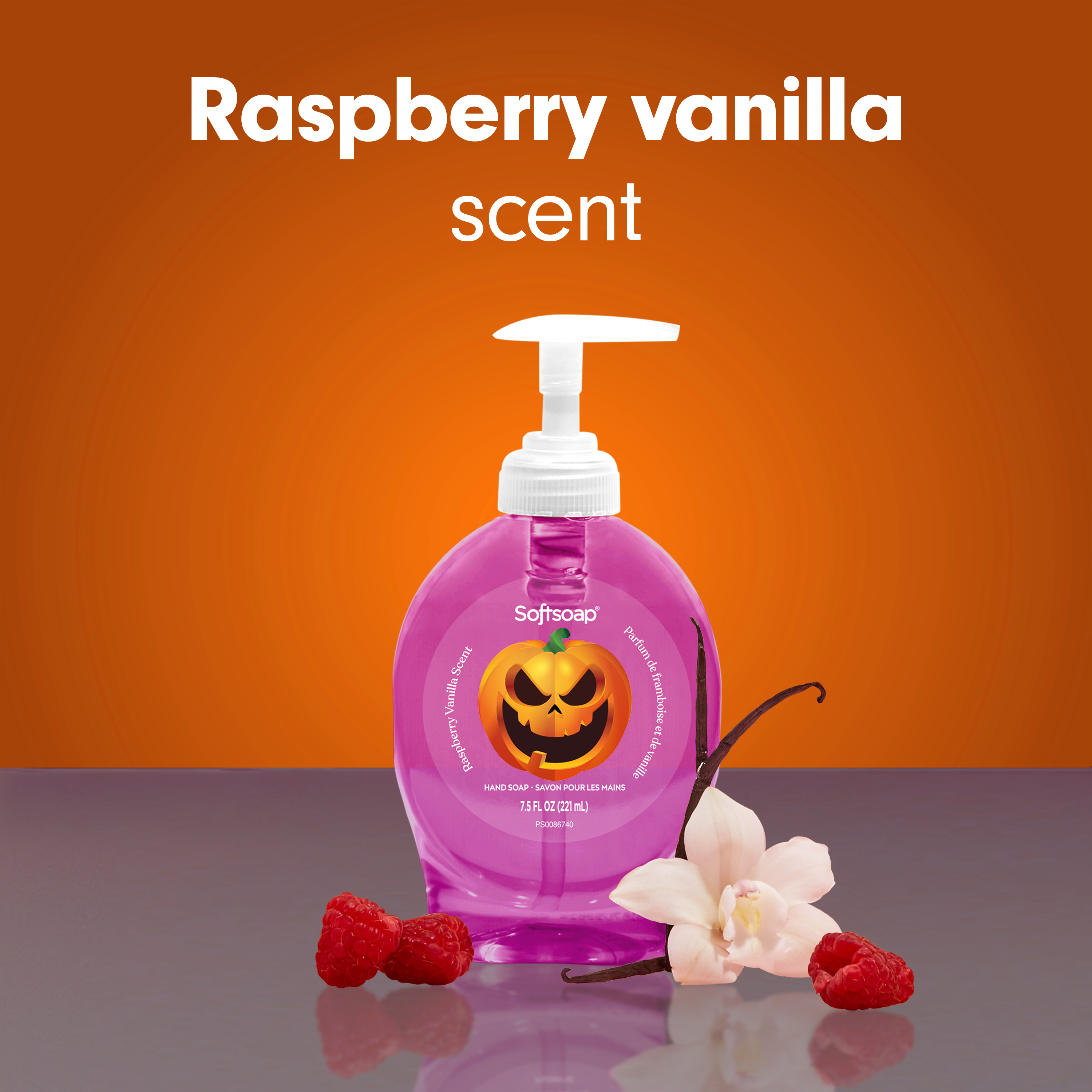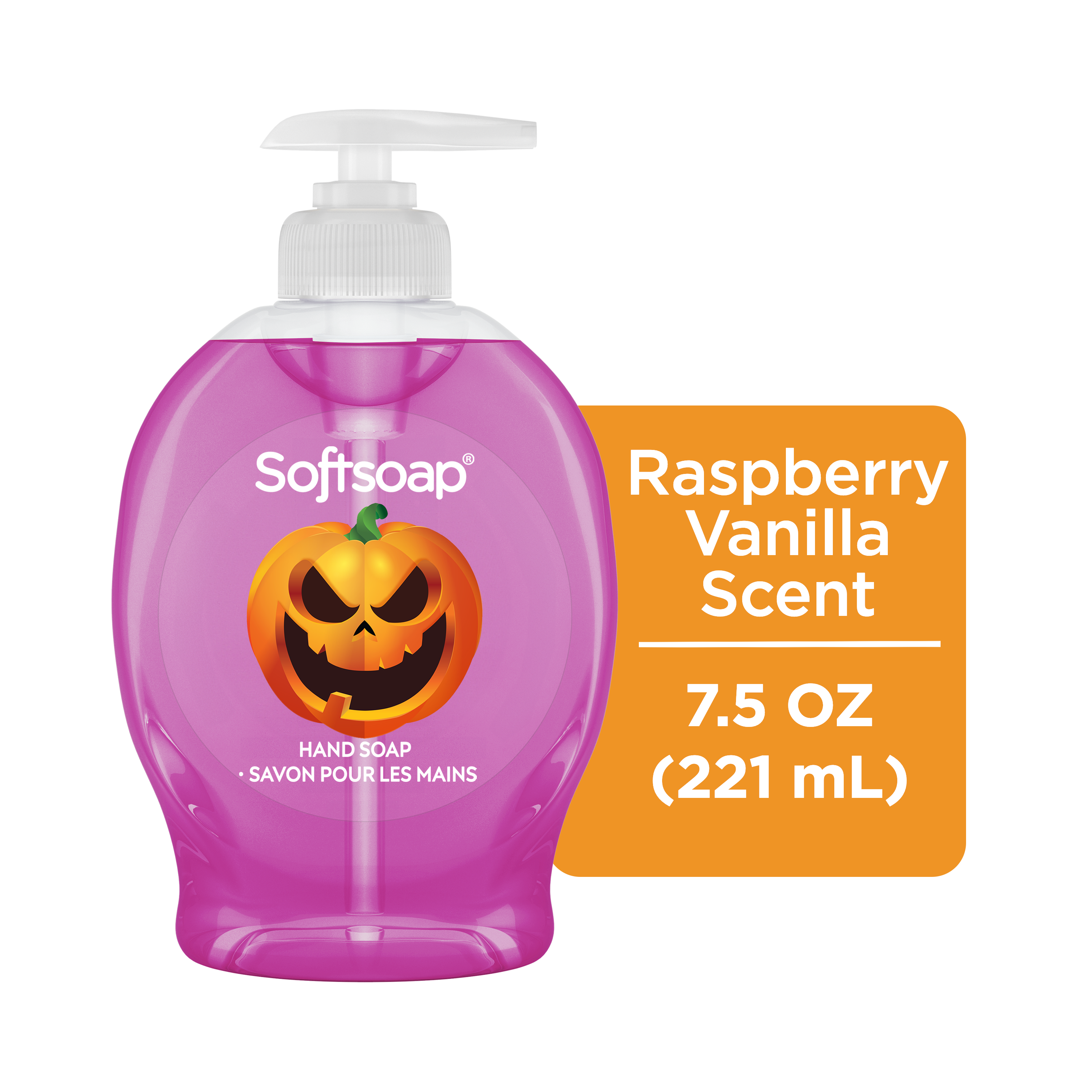 SKU 61047771 Consumer Unit - GTIN 00827854021414 Case - GTIN 10827854021411 Product Category Personal Care Product Sub Category Liquid Hand Wash Product Equity (Brand) Softsoap Product Sub Brand Softsoap LHW Product Title Softsoap Limited Edition Halloween Liquid Hand Soap Pump, Raspberry Vanilla Scent, 7.5 fl oz Product Description Celebrate Halloween every time you wash your hands with Softsoap Limited Edition Raspberry Vanilla Liquid Hand Soap, featuring a convenient hand soap pump for easy dispensing. The sweet raspberry vanilla fragrance captures the playful spirit of the season and adds a festive touch to your sink. The fun seasonal packaging delights both kids and adults, making handwashing a joyful part of your fall routine. This formula is paraben-free, made without phthalates, and helps retain skin’s natural moisture for daily cleansing. Softsoap, the #1 liquid hand soap brand*, is versatile to use in the kitchen, as a bathroom hand soap, or in any other space that needs a touch of warmth. So why not treat yourself to our limited edition fall hand soap and enjoy the season to the fullest? Stock up now while supplies last and bring a little bit of fun into your daily routine! *Based in part on data reported by Nielsen through its Market Track Service for the Liquid Hand Soap Category for the 52 week period ending 07/01/25, for the All Outlet market. Copyright © 2025 Nielsen. Bullet 1 One 7.5 fl oz pump bottle of Softsoap Limited Edition Hand Soap, Raspberry Vanilla Scent Bullet 2 Softsoap is the #1 liquid hand soap brand* Bullet 3 Softsoap’s seasonal hand soap sparks joy and brightens up your day Bullet 4 This Halloween hand soap helps to retain skin's natural moisture Bullet 5 This sweet raspberry vanilla scented hand soap is paraben-free and formulated without phthalates Bullet 6 Versatile to use in the bathroom, as a kitchen hand soap, or in any other space that needs a touch of warmth Bullet 7 Health care agencies recommend washing hands with soap and clean running water for 20 seconds to wash away dirt and bacteria Walmart RPC 15712067398 Walmart URL (Computed) https://www.walmart.com/ip/a/15712067398