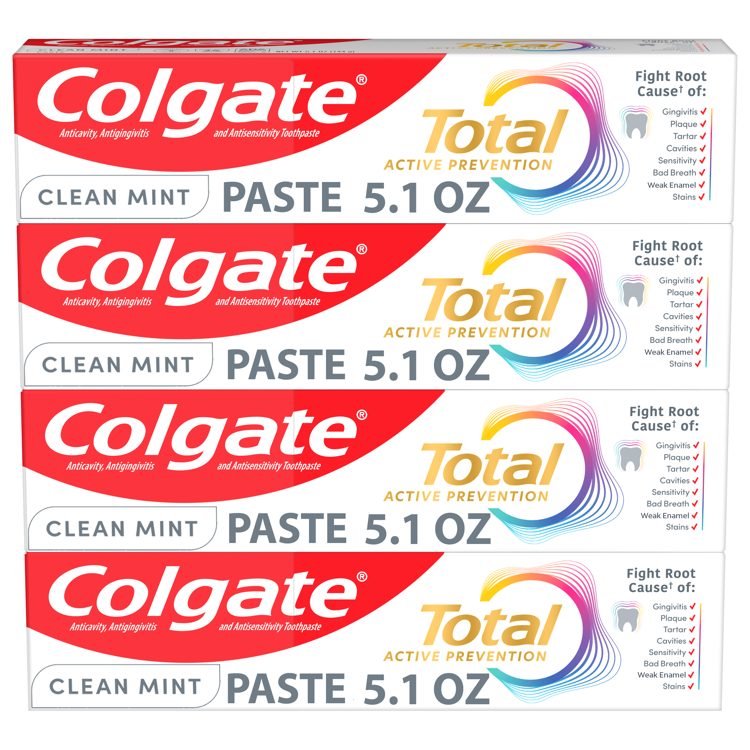 Colgate Total Active Prevention Clean Mint Toothpaste, 4 Pack, 5.1 oz