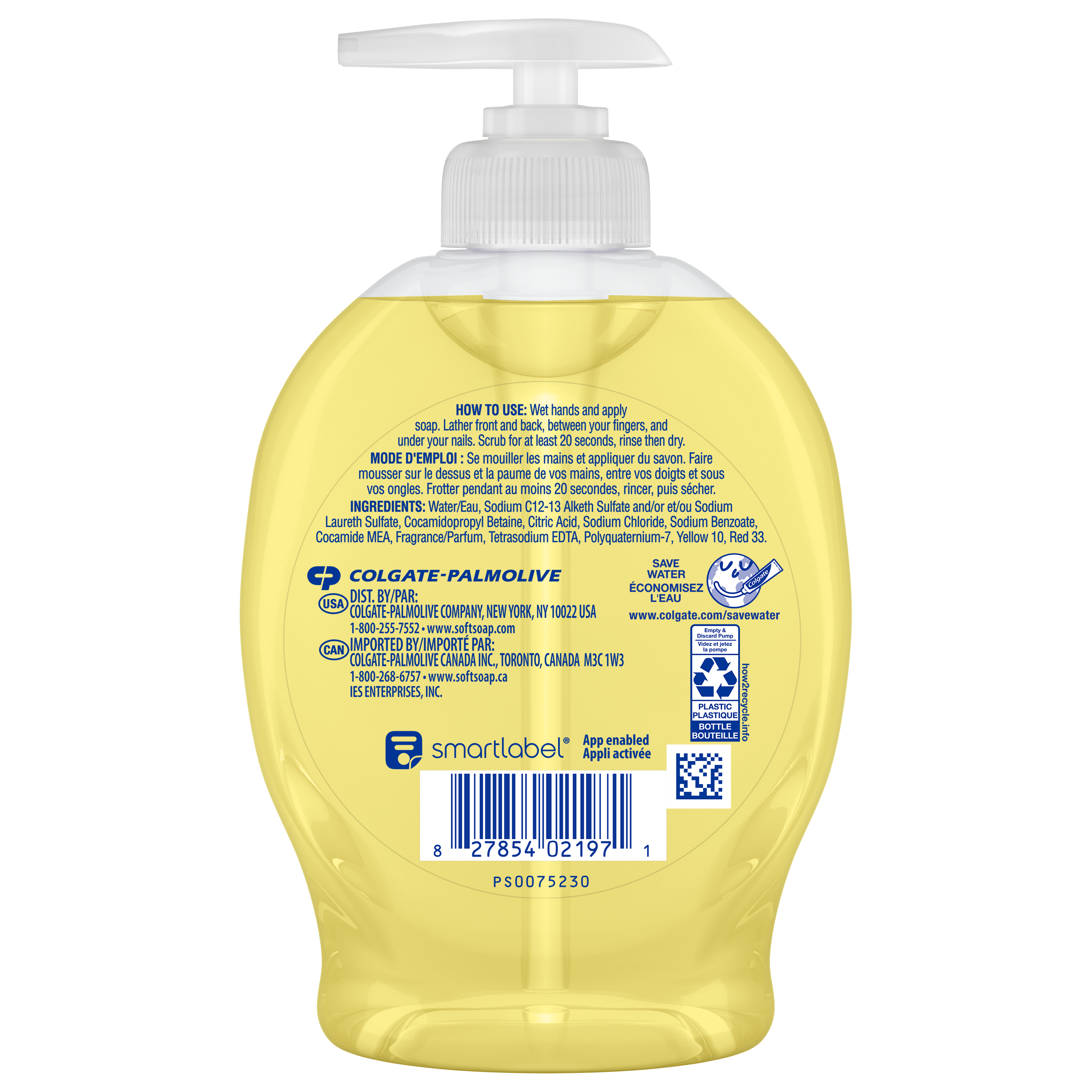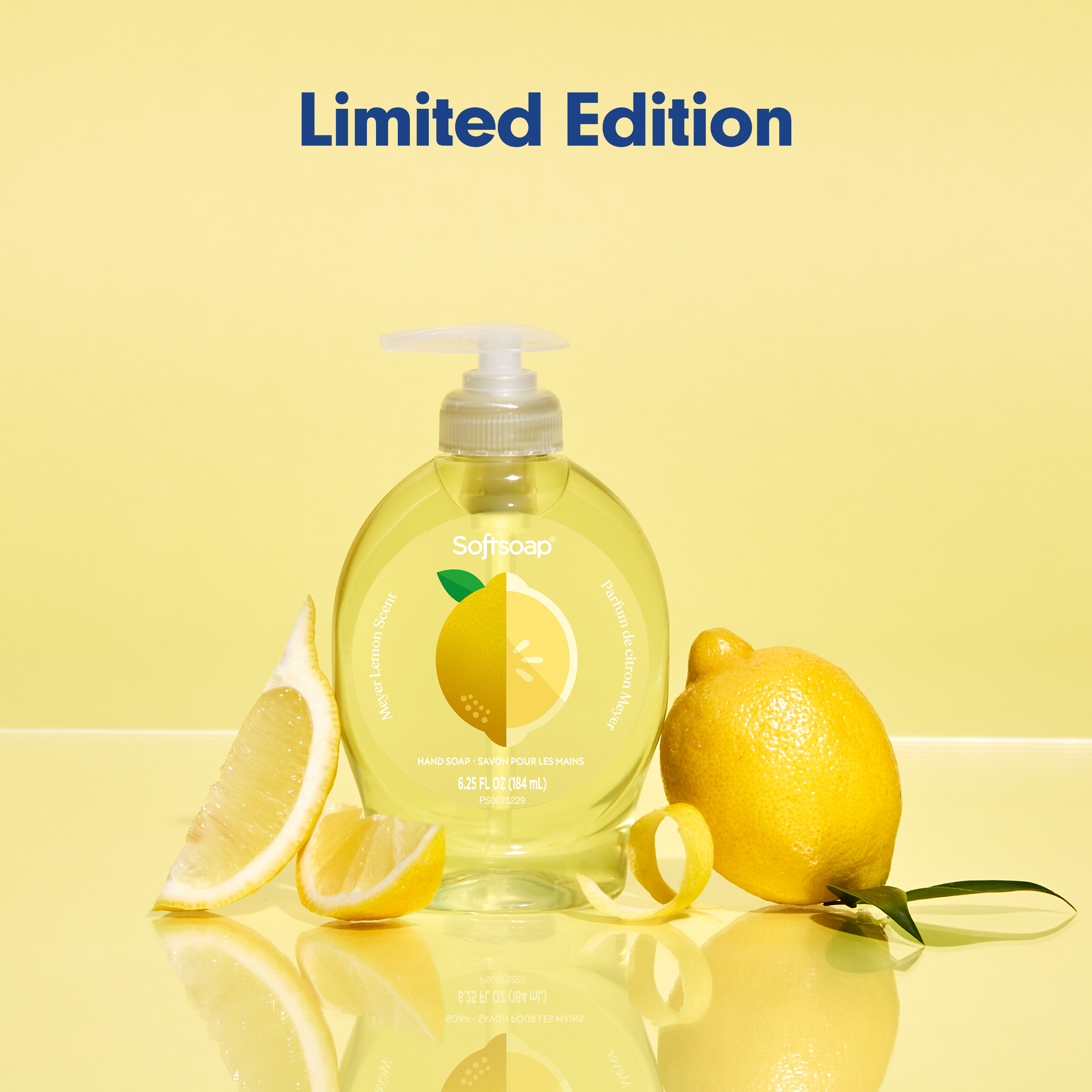 SKU 61048366 Consumer Unit - GTIN 00827854021971 Case - GTIN 10827854021978 Product Category Personal Care Product Sub Category Liquid Hand Wash Product Equity (Brand) Softsoap Product Sub Brand Softsoap LHW Product Title Softsoap Limited Edition Liquid Hand Soap, Seasonal Hand Soap, Paraben Free, pH Balanced, Meyer Lemon Scent, 6.25 fl oz Pump Bottle Product Description Infuse your daily routine with Softsoap’s Limited Edition Meyer Lemon Scented Liquid Hand Soap. Add a touch of fun with this delightful hand soap that sparks joy with every pump, turning a simple task into a cheerful moment. Softsoap is America's #1 Liquid Hand Soap brand (1), trusted to clean your hands since 1975. Enjoy the zesty, invigorating scent of lemons with our seasonal hand soap, bringing a burst of citrus freshness to brighten your day. Our formula is pH balanced, is paraben free, and formulated without phthalates. This hand soap helps retain your skin's natural moisture after every wash. Health care agencies recommend washing hands with soap and clean running water for 20 seconds to wash away dirt and bacteria. Don't miss the chance to make every hand wash a moment of happiness, grab yours while supplies last. (1) Based in part on data reported by Nielsen through its Market Track Service for the Liquid Hand Soap Category for the 52 week period ending 9/28/24, for the All Outlet market. Copyright © 2024 Nielsen. eCommerce Copy- Long Description Infuse your daily routine with Softsoap’s Limited Edition Meyer Lemon Scented Liquid Hand Soap. Add a touch of fun with this delightful hand soap that sparks joy with every pump, turning a simple task into a cheerful moment. Softsoap is America's #1 Liquid Hand Soap brand (1), trusted to clean your hands since 1975. Enjoy the zesty, invigorating scent of lemons with our seasonal hand soap, bringing a burst of citrus freshness to brighten your day. Our formula is pH balanced, is paraben free, and formulated without phthalates. This hand soap helps retain your skin's natural moisture after every wash. Health care agencies recommend washing hands with soap and clean running water for 20 seconds to wash away dirt and bacteria. Don't miss the chance to make every hand wash a moment of happiness, grab yours while supplies last. (1) Based in part on data reported by Nielsen through its Market Track Service for the Liquid Hand Soap Category for the 52 week period ending 9/28/24, for the All Outlet market. Copyright © 2024 Nielsen. Bullet 1 One 6.25 fl oz pump bottle of Softsoap Limited Edition Liquid Hand Soap, Meyer Lemon Scent Bullet 2 Softsoap is America's #1 Liquid Hand Soap brand (1), trusted to clean your hands since 1975 Bullet 3 Enjoy the zesty, invigorating scent of lemons with our seasonal hand soap, bringing a burst of citrus freshness to brighten your day Bullet 4 Versatile to use as a bathroom hand soap, kitchen hand soap, or in any other space that needs a touch of fun Bullet 5 Our formula is pH balanced, is paraben free, and formulated without phthalates Bullet 6 This seasonal hand soap helps retain your skin's natural moisture after every wash Bullet 7 Health care agencies recommend washing hands with soap and clean running water for 20 seconds to wash away dirt and bacteria Walmart RPC 9174866750 Walmart URL (Computed) https://www.walmart.com/ip/a/9174866750
