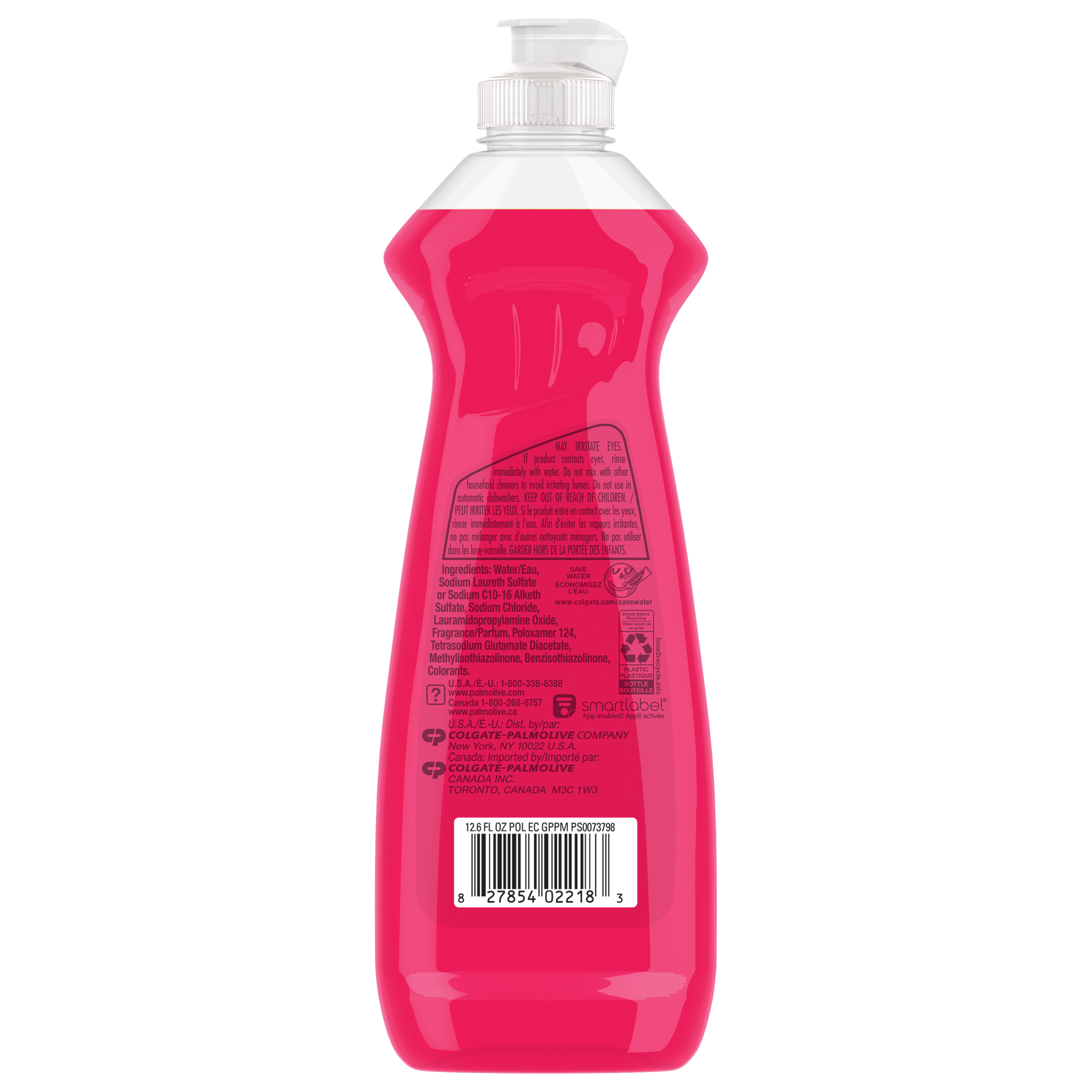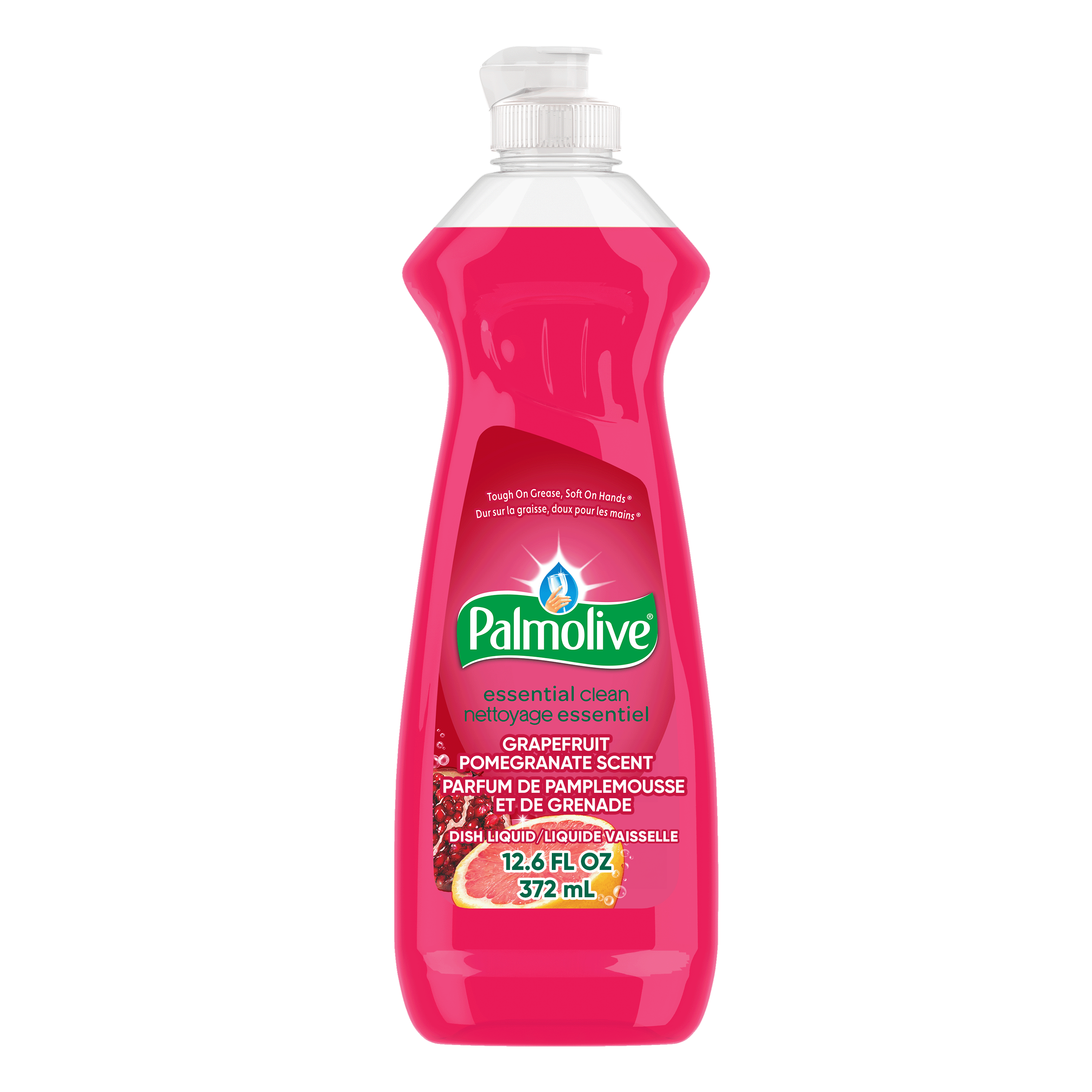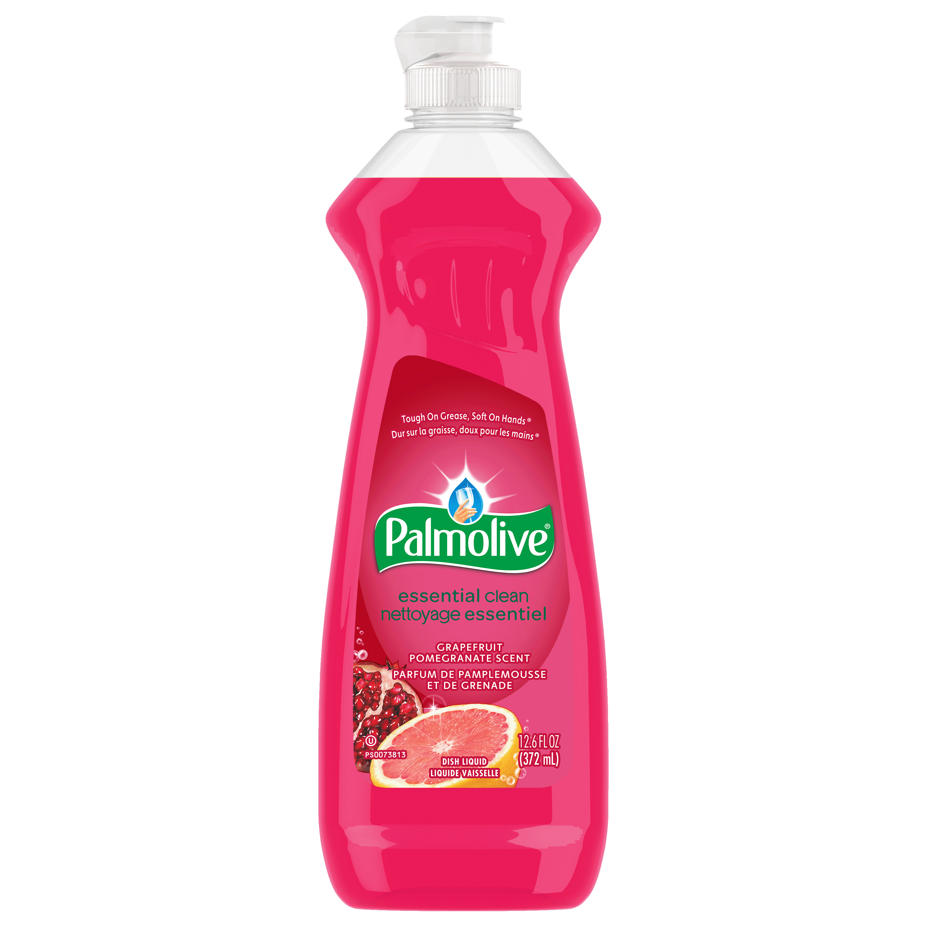 SKU 61048634 Consumer Unit - GTIN 00827854022183 Case - GTIN 10827854022180 Product Category Home Care Product Sub Category Dish Hand Product Equity (Brand) Palmolive Product Sub Brand Palmolive HD Product Title Palmolive Essential Clean Liquid Dish Soap, Grapefruit Pomegranate Scented Dish Detergent, 372 mL Bottle Product Description Palmolive Essential Clean Liquid Dish Soap is great for everyday dishwashing and leaves dishes sparkling clean. Enjoy a delightful Grapefruit Pomegranate Scent that adds a bit of joy to your cleaning routine. Our pink dish soap is tough on grease but soft on hands. It helps remove stuck-on food particles and grime from dishes. It can tackle the toughest messes in your home, from pots and pans and BBQ grills to tires and laundry. Our dishwashing liquid is gentle on the planet, made with 100% biodegradable active ingredients (1), 0% parabens and phosphates. Experience the difference Palmolive dish soap can make: today, tomorrow, and for the next 50 years. (1) OECD 301 B,C,D / OCDE 301 B,C,D Bullet 1 One 372 mL bottle of Palmolive Essential Clean Liquid Dish Soap, Grapefruit Pomegranate Scent Bullet 2 This pink dish soap is great for everyday dishwashing and leaves dishes sparkling clean Bullet 3 Enjoy a delightful Grapefruit Pomegranate Scent that adds a bit of joy to your cleaning routine Bullet 4 Designed to be tough on grease but soft on hands Bullet 5 Removes stuck-on food particles and grime from dishes Bullet 6 Our dishwashing liquid is gentle on the planet, made with 100% biodegradable active ingredients (1), 0% parabens and phosphates Bullet 7 From pots and pans to BBQ grills, tires, and laundry, Palmolive can tackle the toughest messes in your home