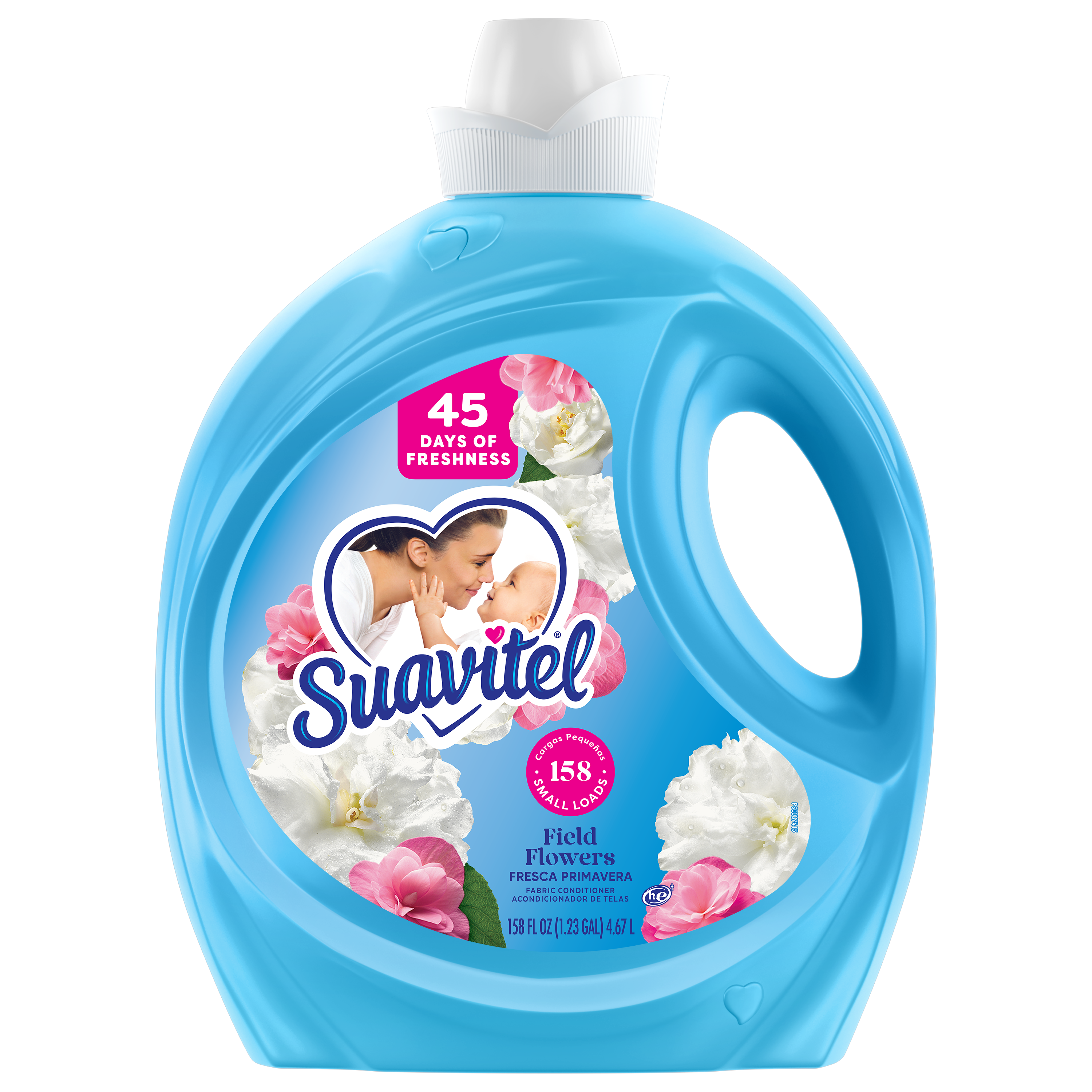 SKU 61048664 Consumer Unit - GTIN 00827854022268 Case - GTIN 10827854022265 Product Category Home Care Product Sub Category FC Liquids Product Equity (Brand) Suavitel Product Sub Brand Suavitel Liq FC Product Title Suavitel Fabric Conditioner, Liquid Fabric Softener, 45 Days of Freshness, HE Compatible, 158 Small Loads, Field Flowers Scent, 158 fl oz Bottle Product Description Suavitel Fabric Conditioner in Field Flowers scent is designed for busy households, with enough for 158 small loads to make frequent washing simple and convenient. Experience the crisp, clean scent of a blossoming garden with every wash, providing a special fresh scent of the outdoors. Enjoy up to 45 days of freshness so your clothes, towels, and linens always smell clean and inviting between washes. Each load is wrapped in irresistible fragrance and incredible softness, leaving fabrics feeling luxuriously smooth. Our fabric softener is compatible with all washing machines, including HE models*. Suavitel cares gently for your family’s laundry and appliances. For best results, use 1 capful for small loads and more for larger loads or extra softness. Always add to the final rinse cycle, not directly on fabrics. If spotting occurs, treat with a mild bar soap and rinse. Shake well before use. Enjoy the comforting softness of a mother’s love with every wash. *Follow the washer manufacturer's use and care guide for proper dispensing of the fabric conditioner eCommerce Copy- Long Description Suavitel Fabric Conditioner in Field Flowers scent is designed for busy households, with enough for 158 small loads to make frequent washing simple and convenient. Experience the crisp, clean scent of a blossoming garden with every wash, providing a special fresh scent of the outdoors. Enjoy up to 45 days of freshness so your clothes, towels, and linens always smell clean and inviting between washes. Each load is wrapped in irresistible fragrance and incredible softness, leaving fabrics feeling luxuriously smooth. Our fabric softener is compatible with all washing machines, including HE models*. Suavitel cares gently for your family’s laundry and appliances. For best results, use 1 capful for small loads and more for larger loads or extra softness. Always add to the final rinse cycle, not directly on fabrics. If spotting occurs, treat with a mild bar soap and rinse. Shake well before use. Enjoy the comforting softness of a mother’s love with every wash. *Follow the washer manufacturer's use and care guide for proper dispensing of the fabric conditioner Bullet 1 One 158 fl oz bottle of Suavitel Fabric Conditioner, Field Flowers Scent Bullet 2 Provides enough for 158 small loads making it ideal for regular household laundry needs and convenient for frequent washing Bullet 3 Enjoy 45 days of freshness so your clothes, towels, and linens smell clean and inviting between washes providing comfort in every wear Bullet 4 Experience the crisp, clean scent of a blossoming garden with every wash, providing a special fresh scent of the outdoors Bullet 5 Compatible with all types of washing machines including HE models* for easy integration into your existing laundry routine Bullet 6 Safe for your family’s laundry and appliances Bullet 7 Provides the comforting softness of a mother’s love so every load receives gentle care and reliable fabric protection