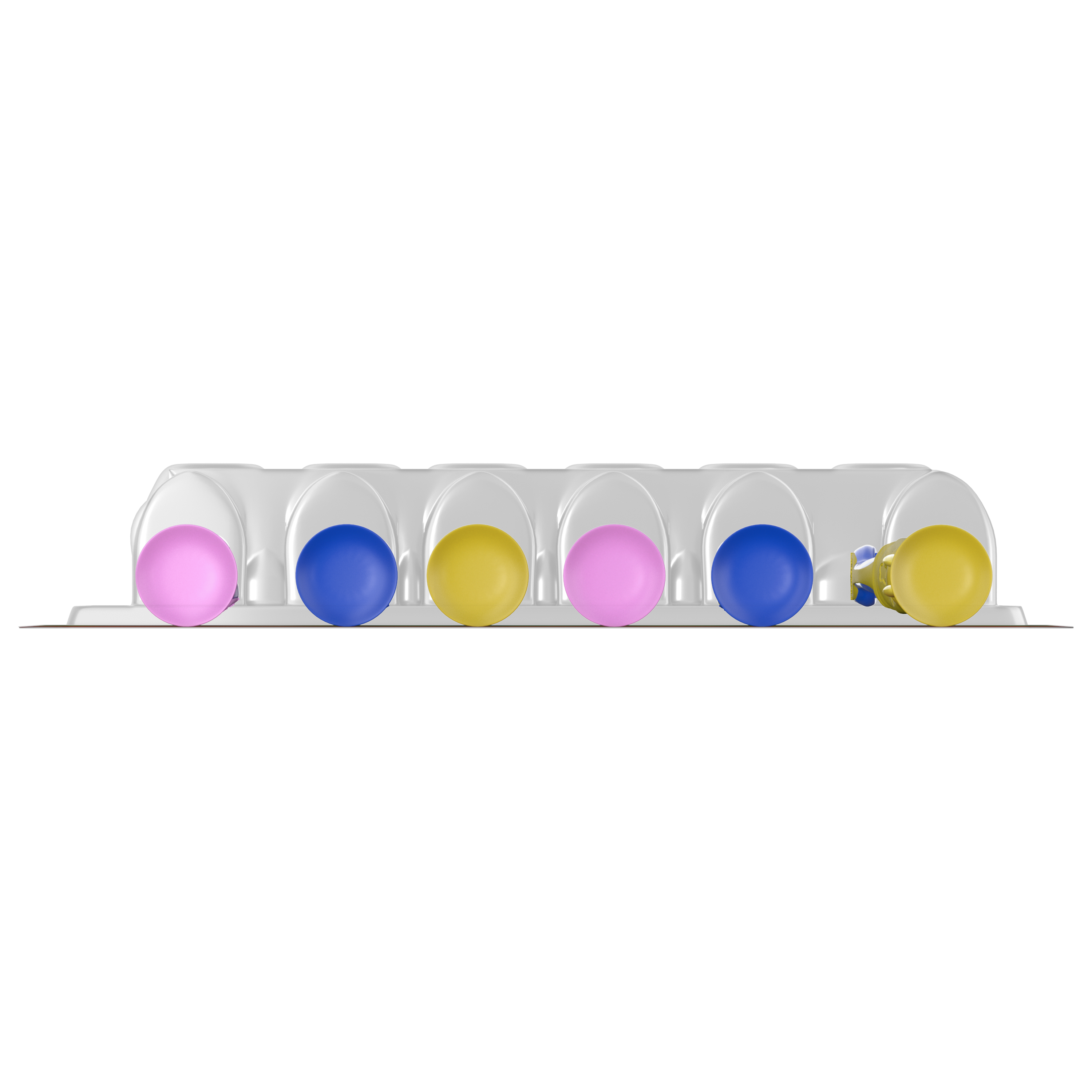| Bullet 2 | Features two purple, two yellow, and two blue kids toothbrushes |