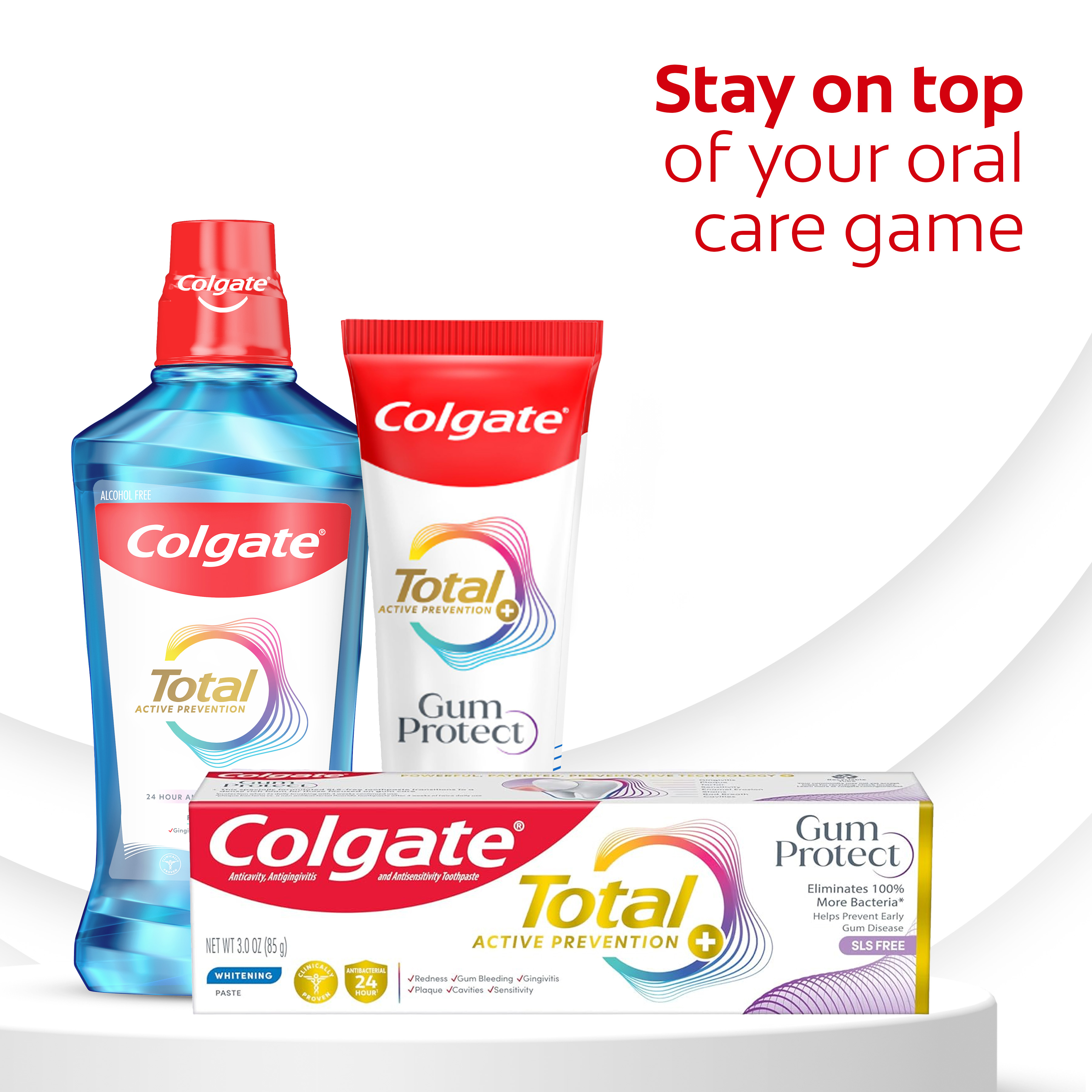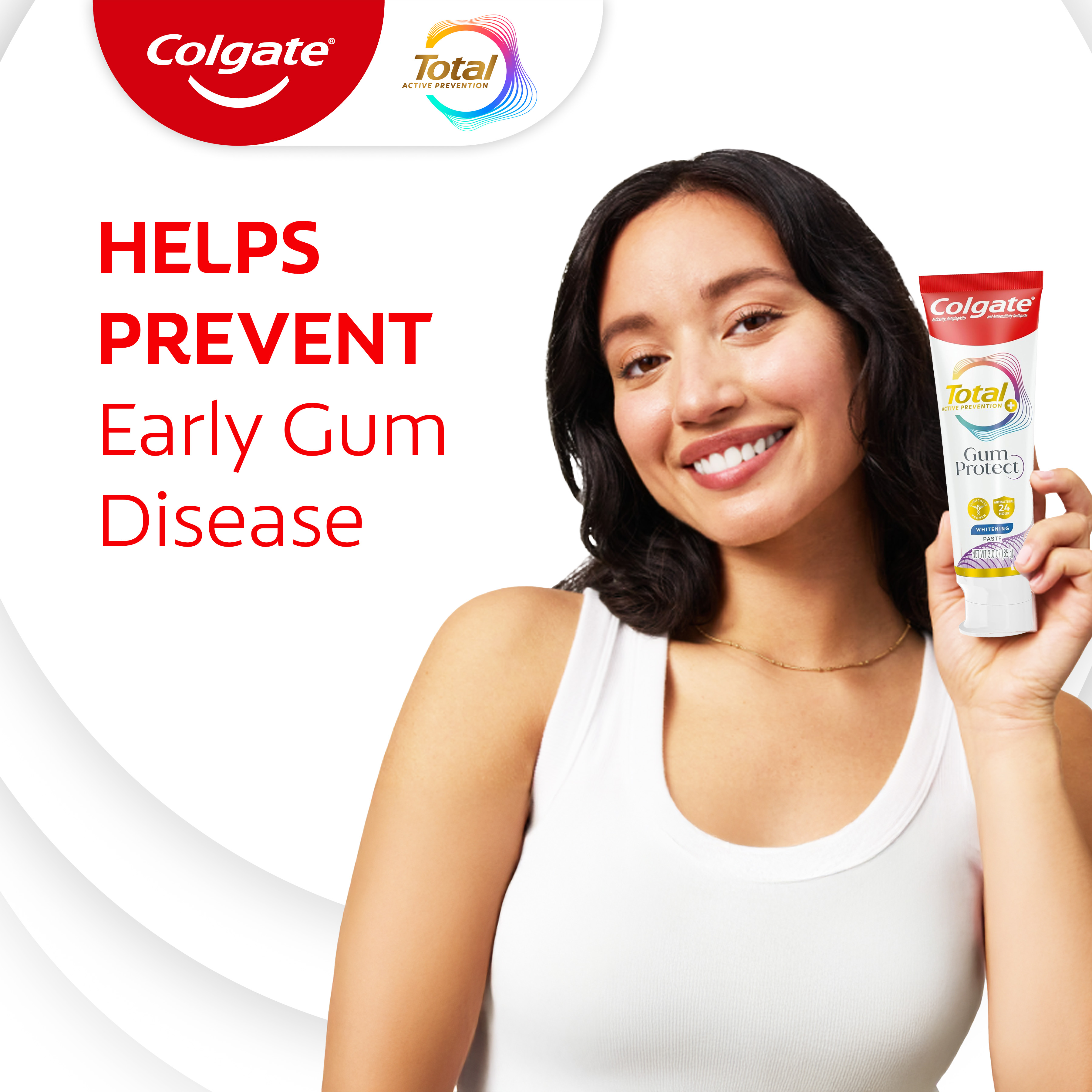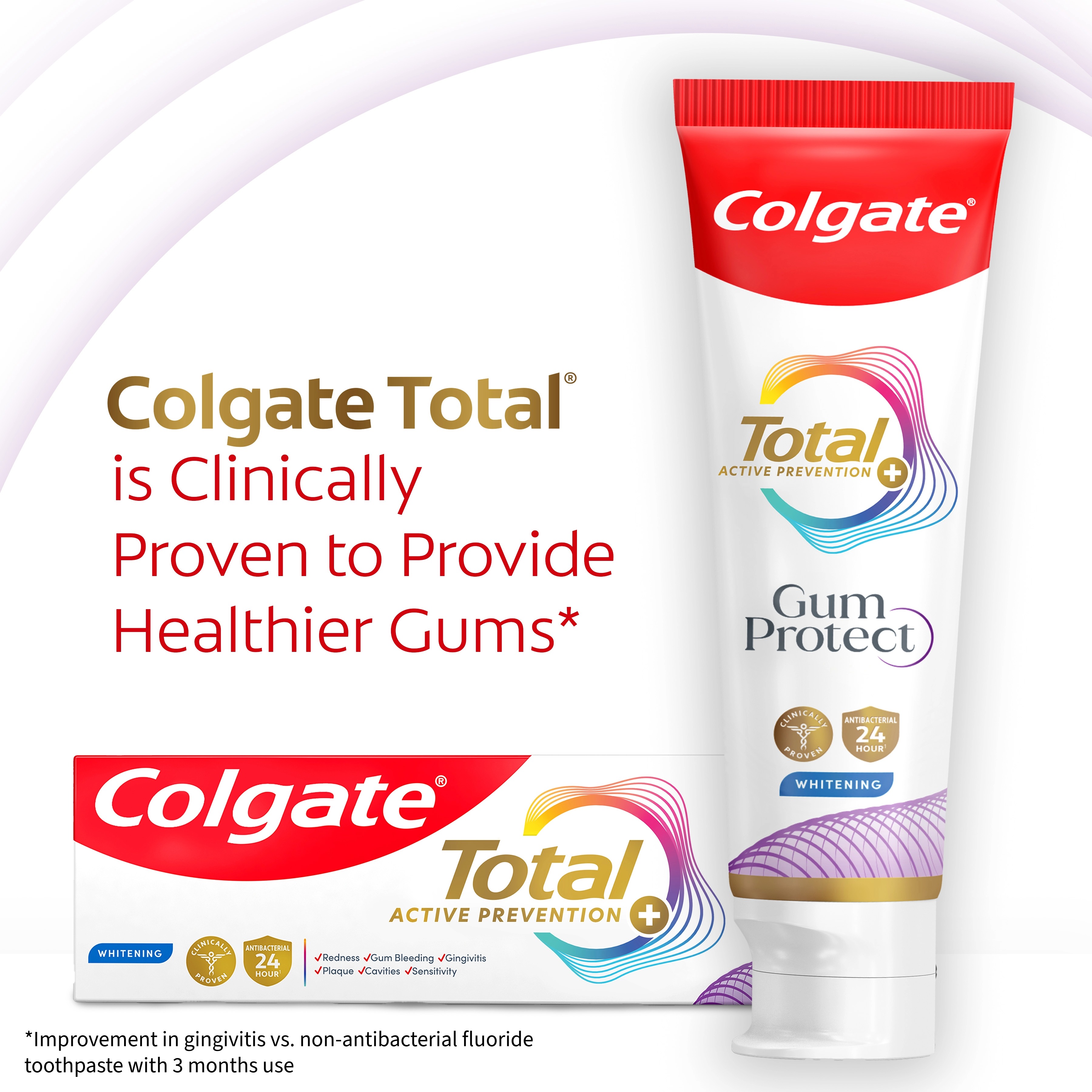 | Bullet 7 | Help protect your gum health with the Colgate Total Active Prevention Gum Protect Whitening Toothpaste Pack |