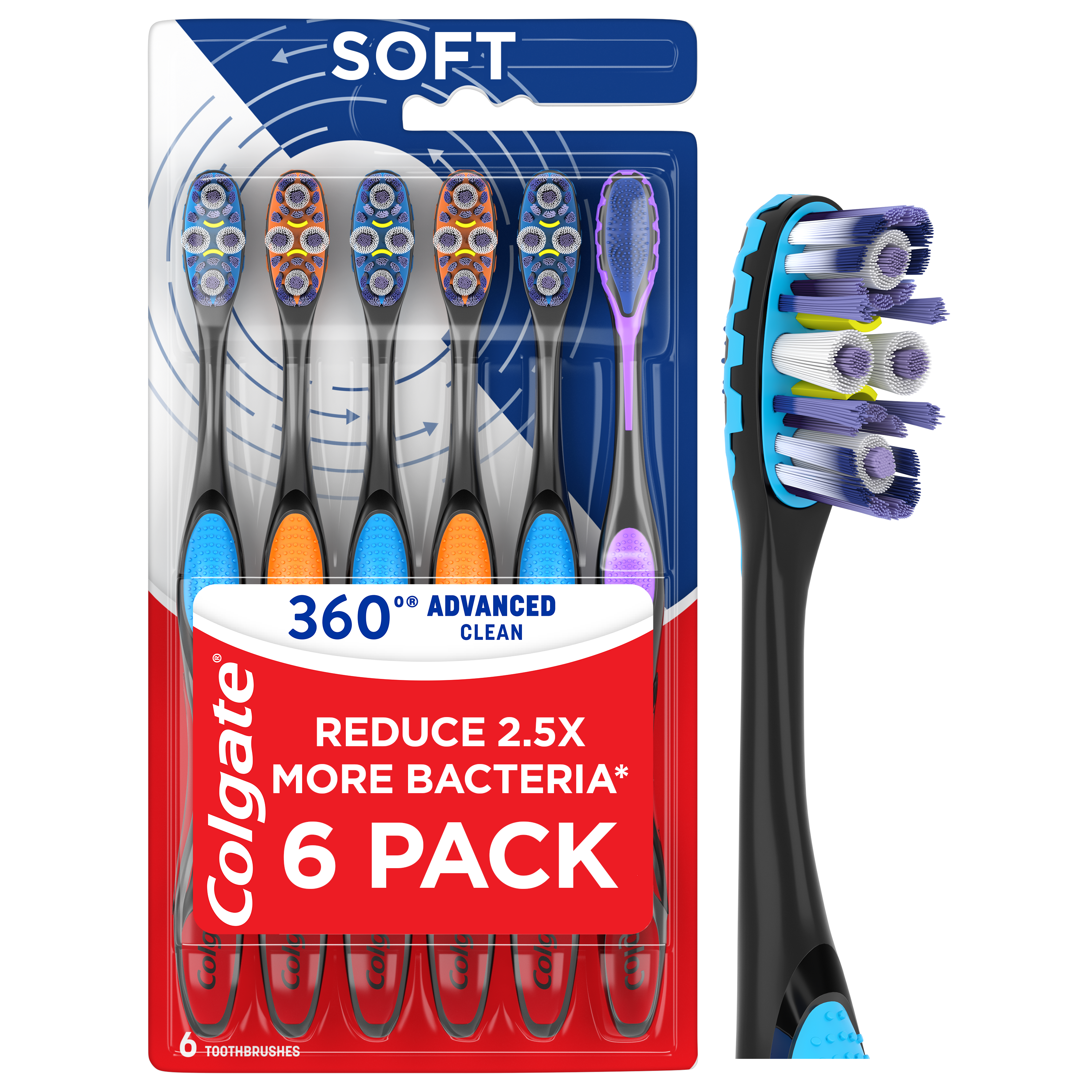Colgate 360 Advanced Clean Adult Soft Toothbrush, 6 Pack