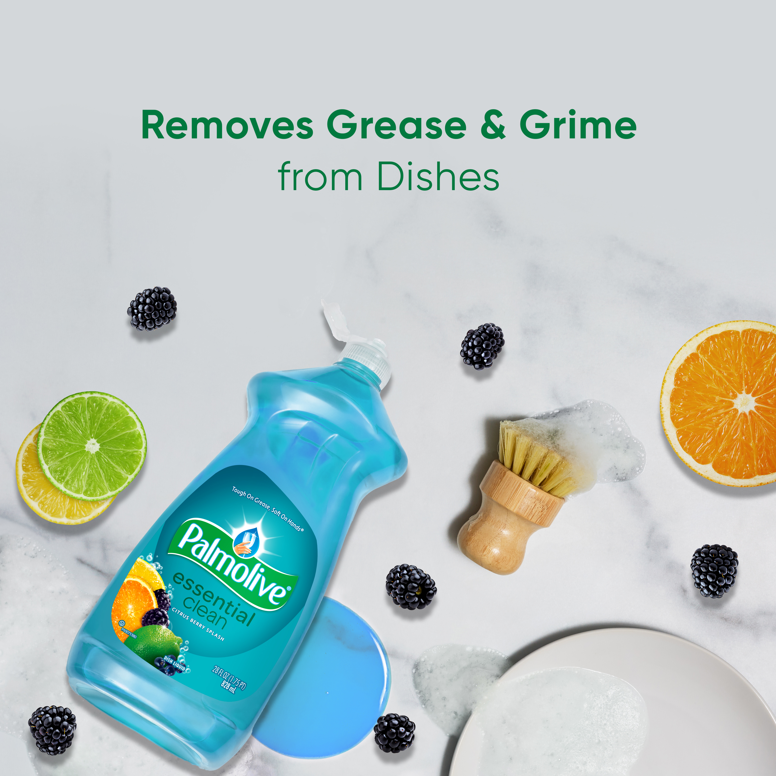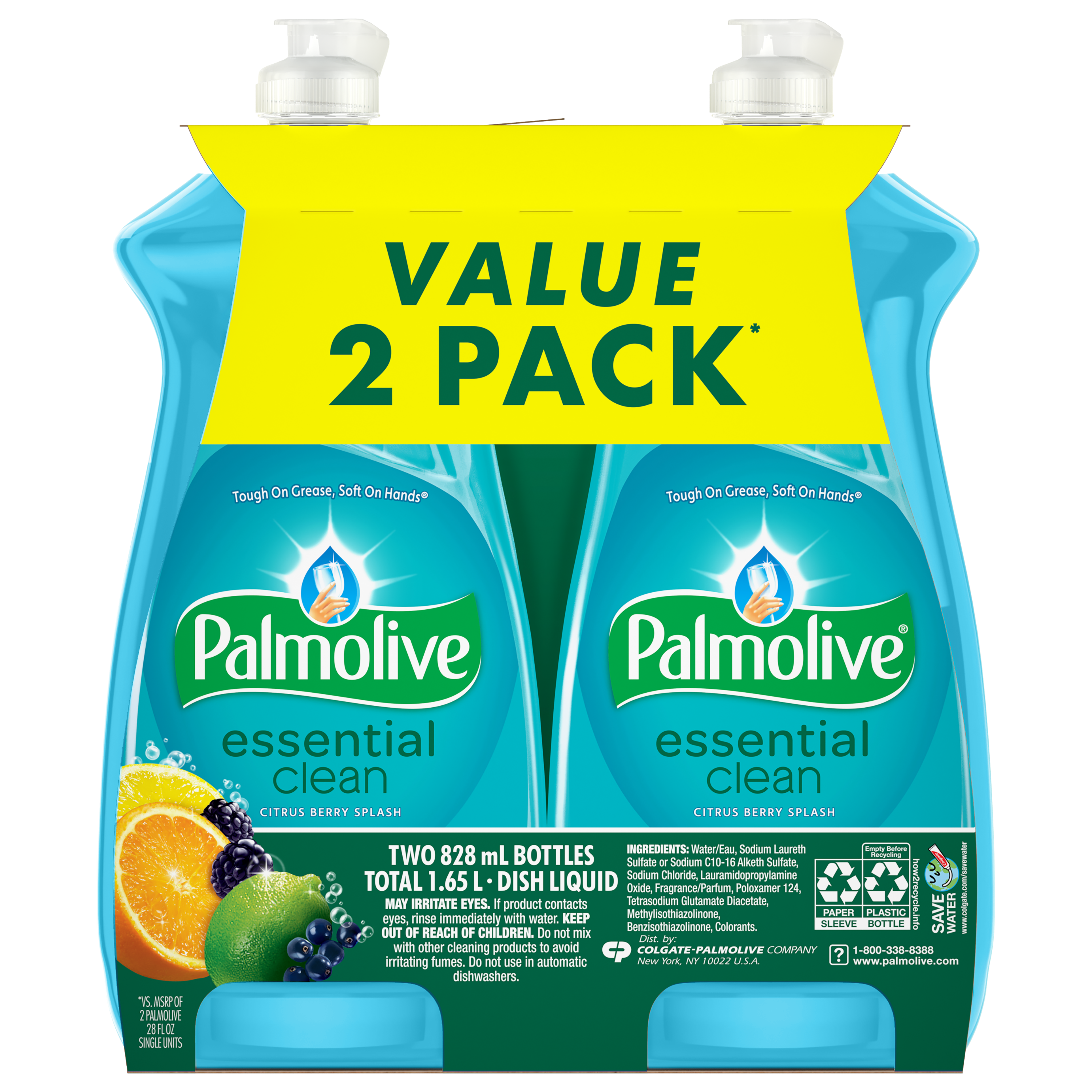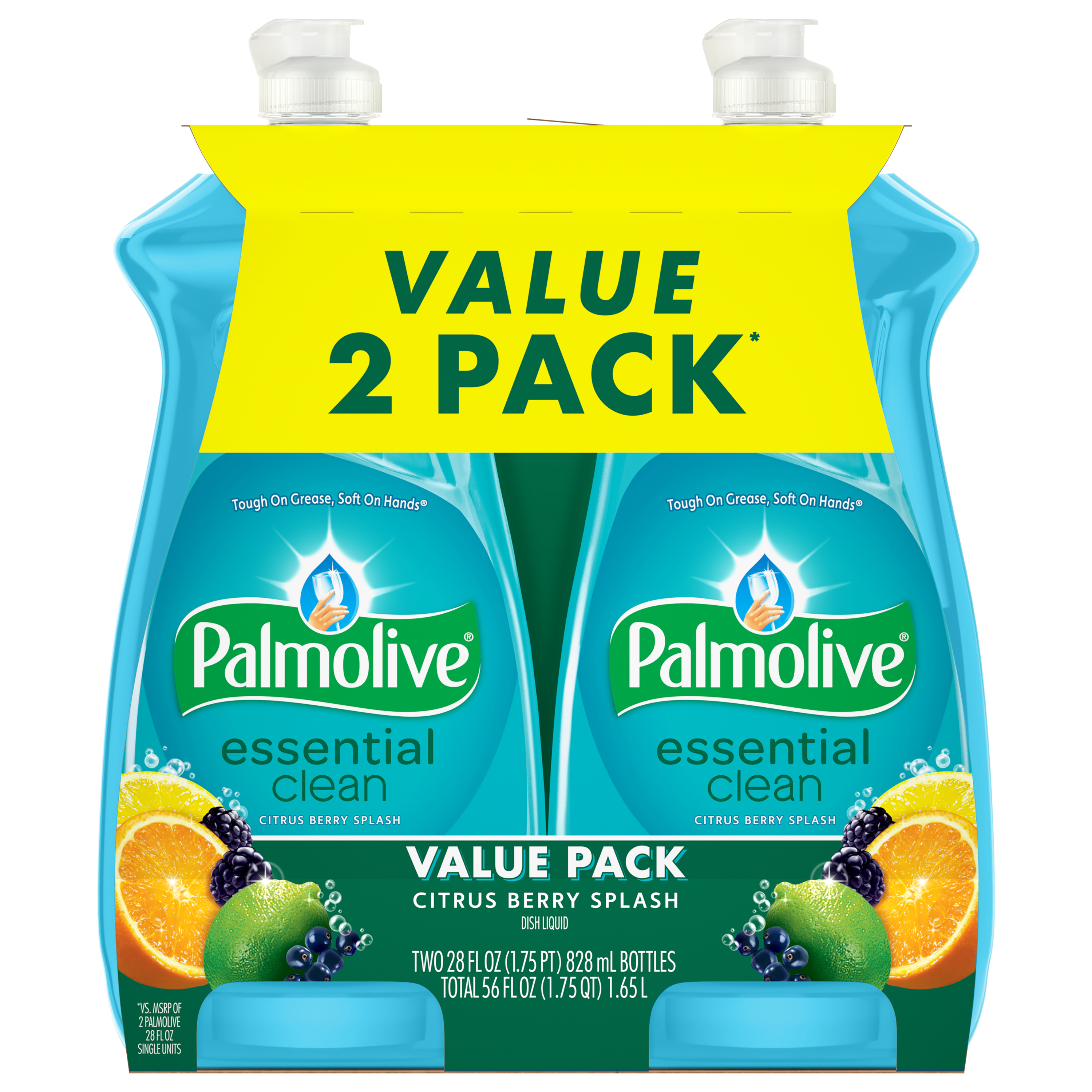 | Bullet 1 | Two 28 fl oz bottles of Palmolive Essential Clean Dish Soap, Citrus Berry Splash Scent |