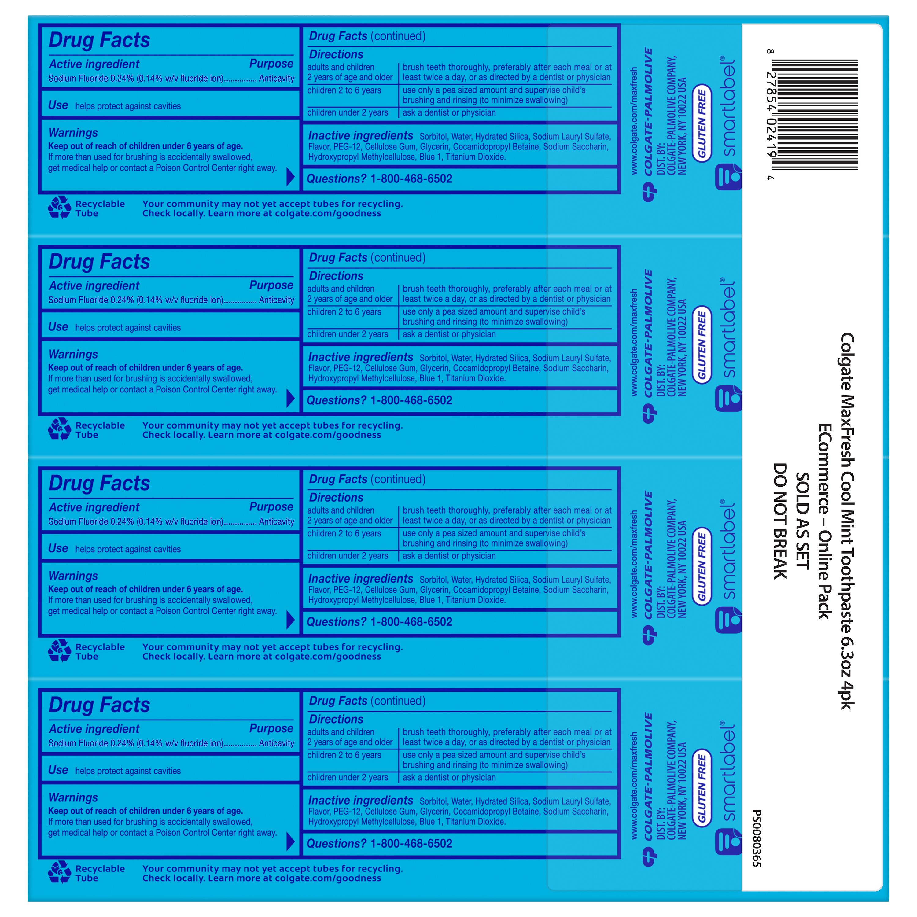 | Bullet 1 | Includes four (4) 6.3 oz tubes of Colgate MaxFresh Cool Mint Toothpaste |