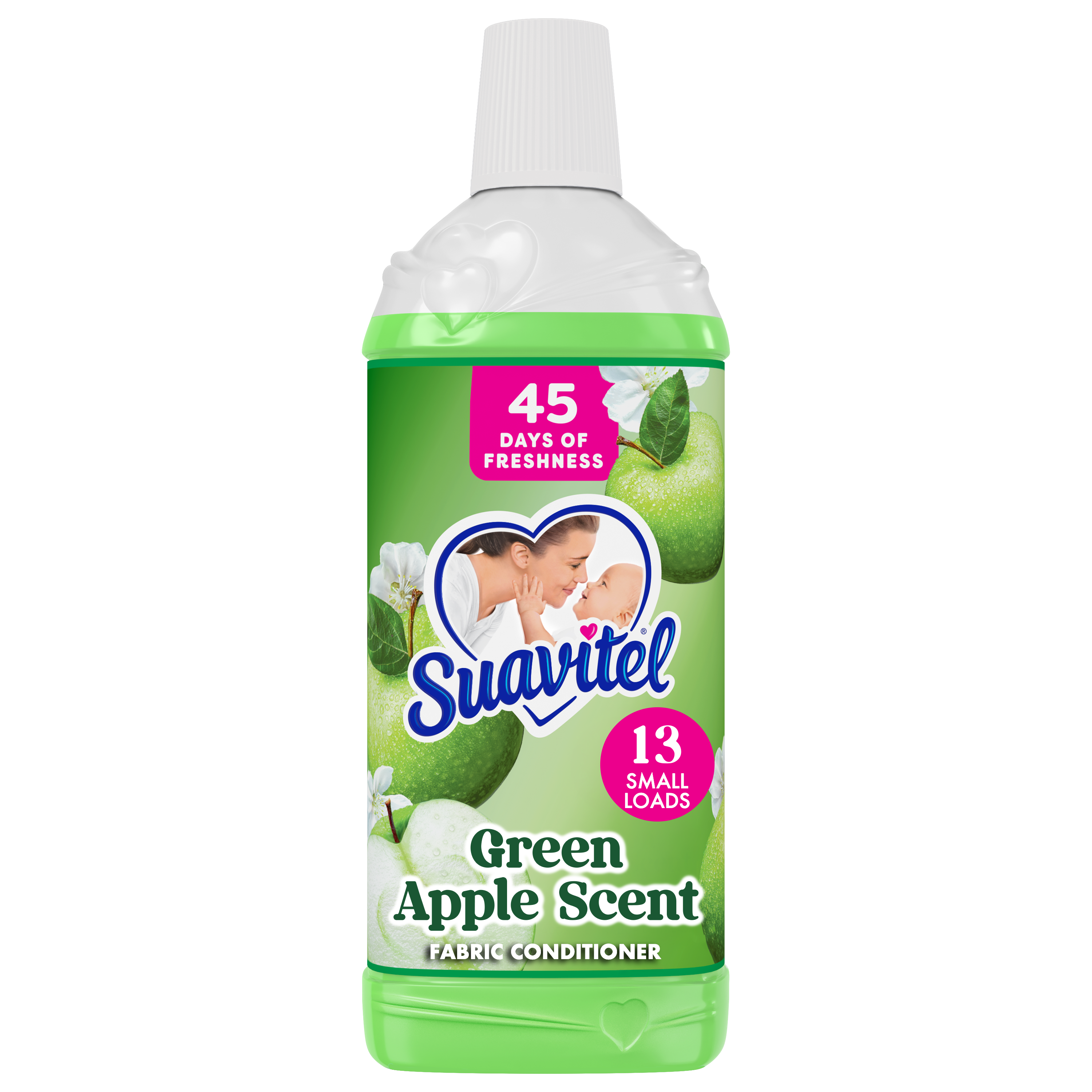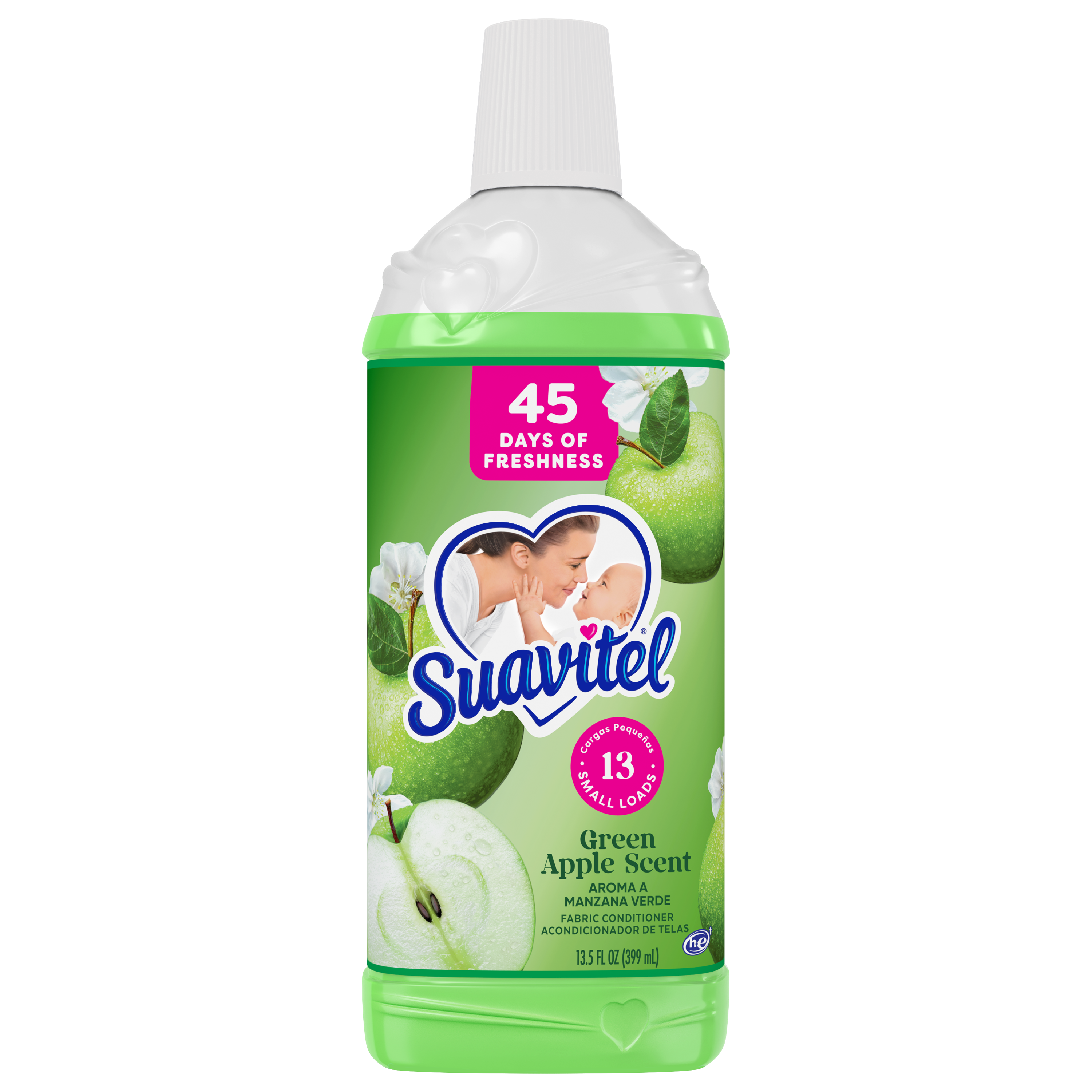 Suavitel Fabric Conditioner, Liquid Fabric Softener, 45 Days of Freshness, HE Compatible, 13 Small Loads, Green Apple Scent, 13.5 fl oz Bottle