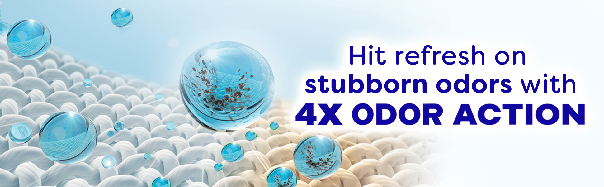 | Bullet 2 | The 4X odor action helps to remove tough odors, leaves fabrics smelling fresh, helps rinse stubborn residue, and has a fragrance with odor-fighting technology |