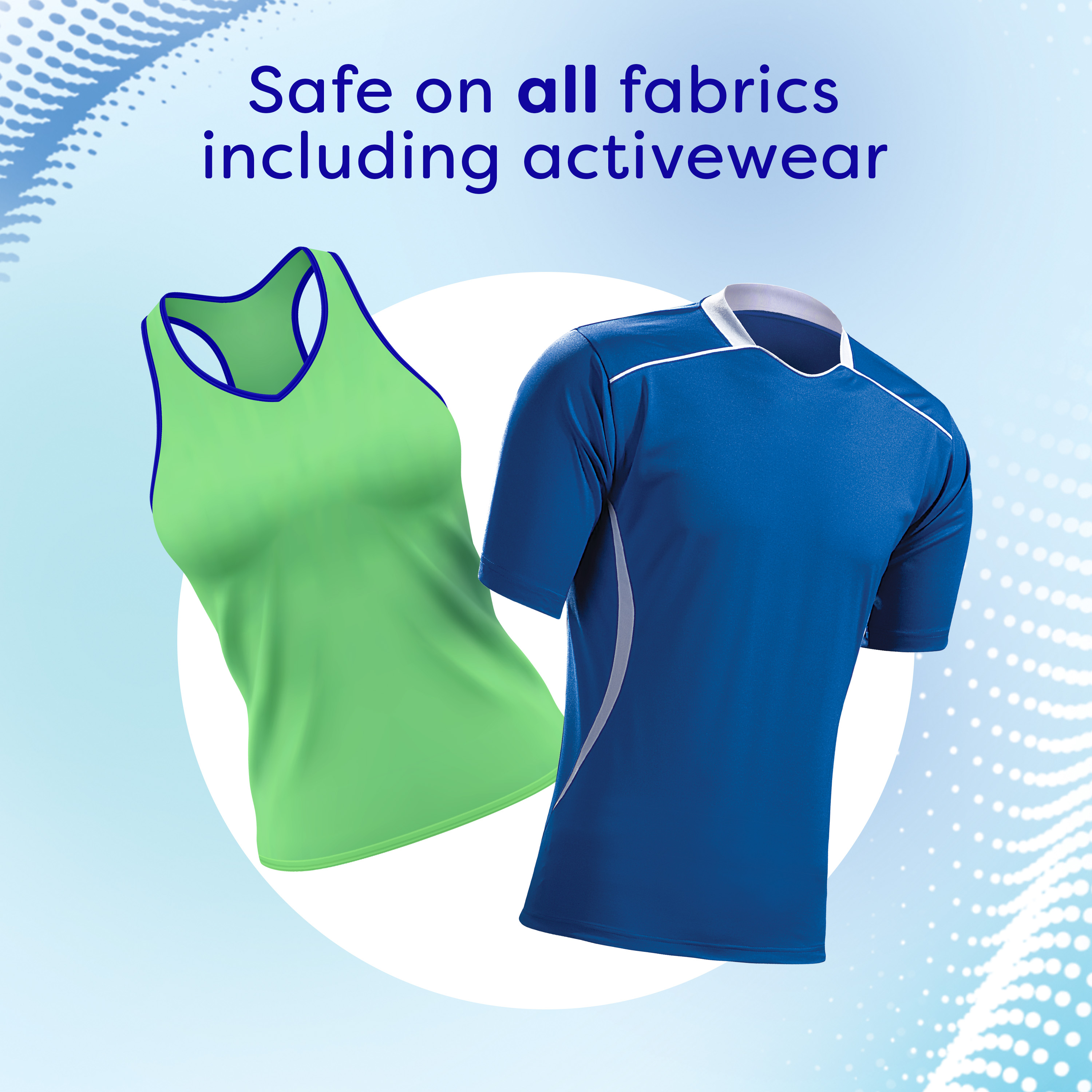 | Bullet 3 | Safe on all fabrics (to keep absorption, tested on cotton, synthetic and cotton-polyester fabrics) with a low pH formula |