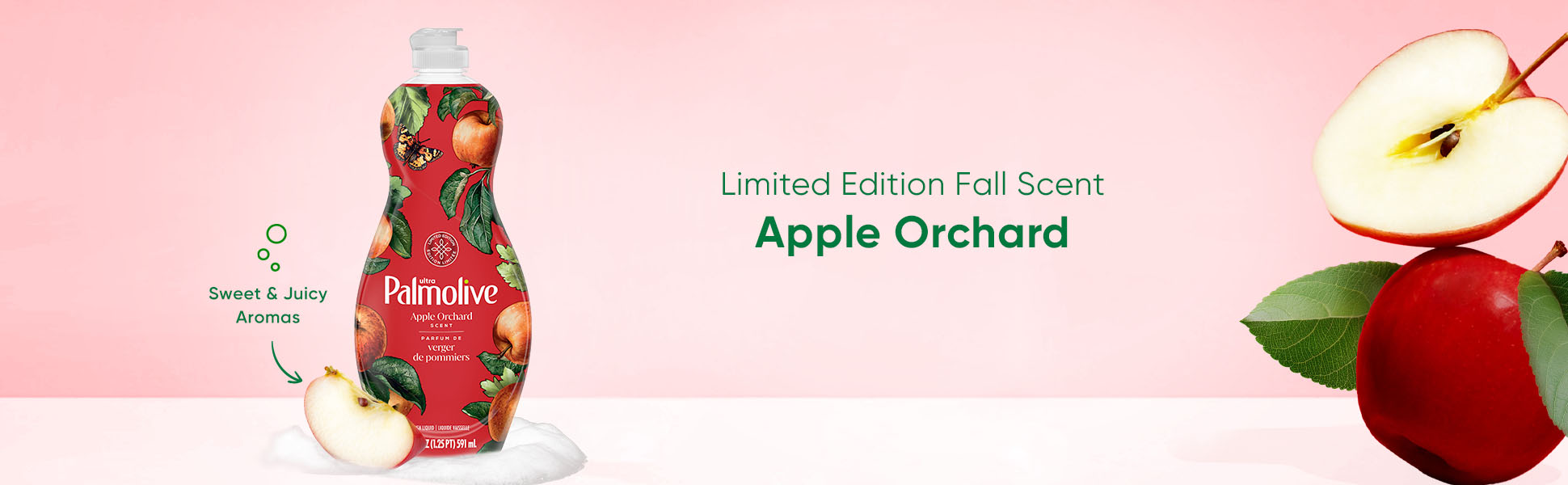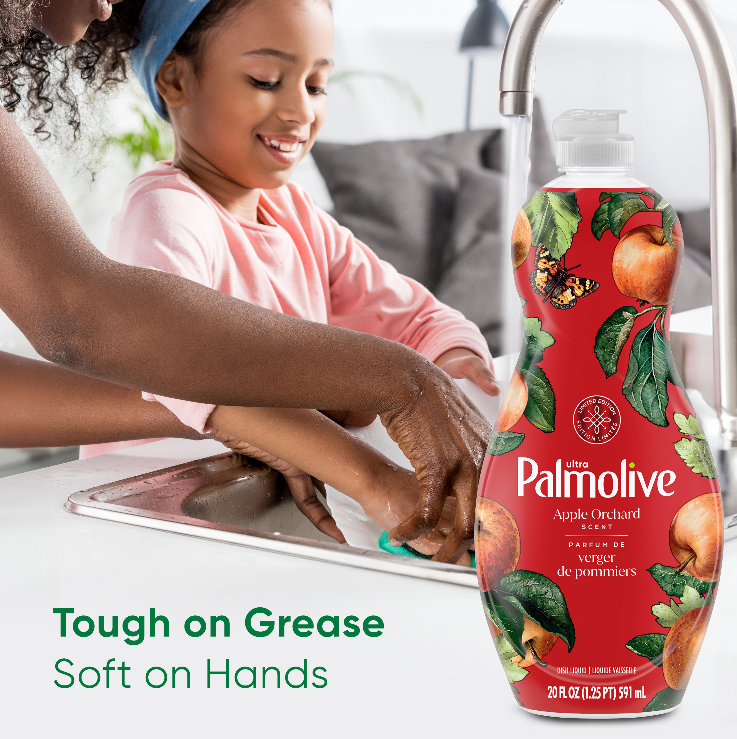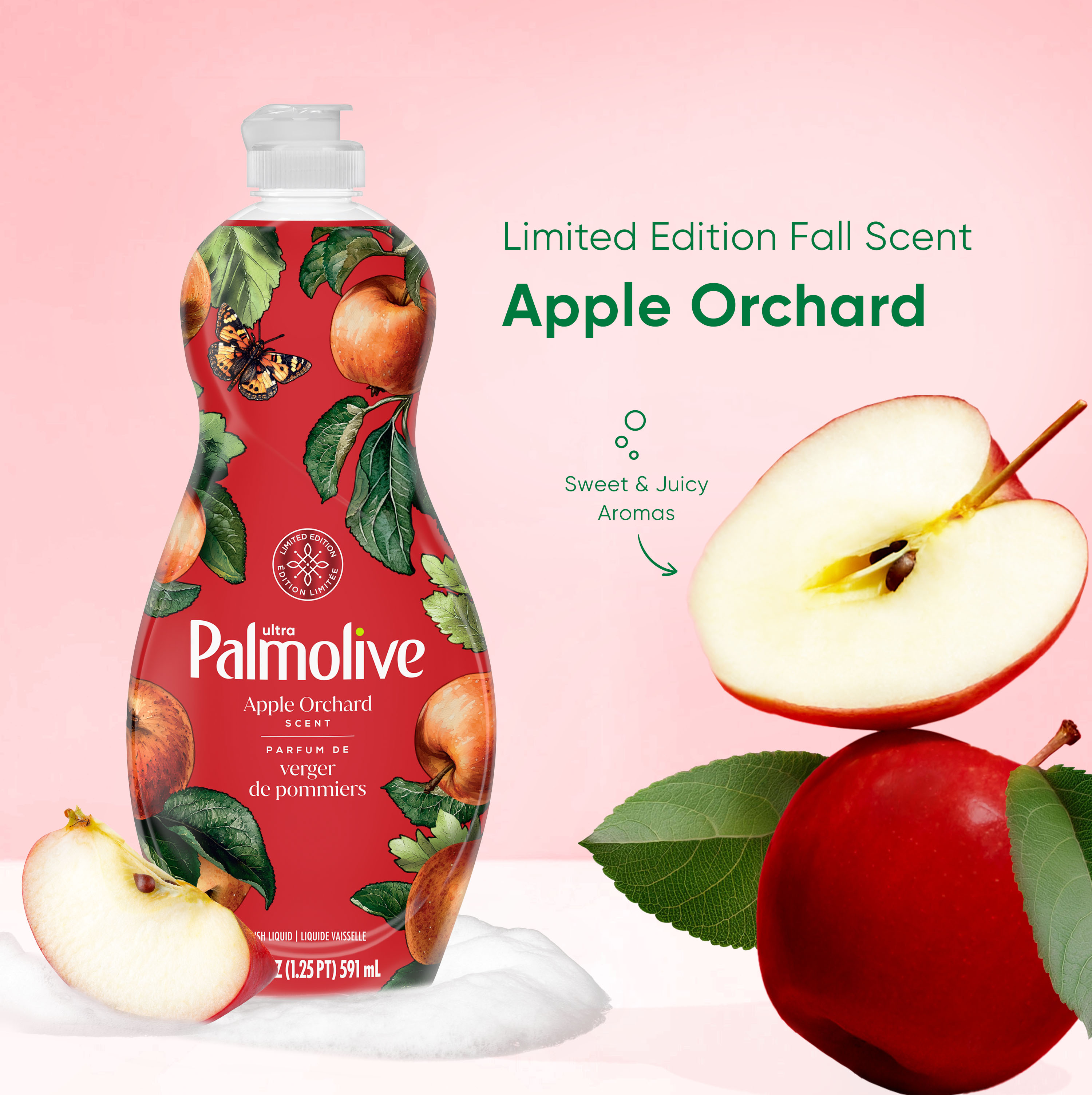 SKU 61052124 Consumer Unit - GTIN 00827854013877 Case - GTIN 10827854013874 Product Category Home Care Product Sub Category Dish Hand Product Equity (Brand) Palmolive Product Sub Brand Palmolive Sensorial Ultra HD Product Title Palmolive Ultra Strength Liquid Dish Soap, Limited Edition, Apple Orchard Scent, 20 fl oz Bottle Product Description Experience Palmolive Ultra Strength Liquid Dish Soap that instantly cuts grease and leaves dishes sparkling clean. Delight in the seasonal, limited edition Apple Orchard scent, with sweet, juicy aromas wrapped in sheer musk undertones to evoke the feeling of a lush orchard filled with ripe fruits. It leaves dishes sparkling clean with every wash, with its grease-cutting capabilities. Not only is this dishwashing liquid tough on grease, but it is also soft on hands. Enhance your dishwashing experience with Palmolive; the dish soap that combines effective cleaning with care. Bullet 1 One 20 fl oz bottle of Palmolive Ultra Strength Liquid Dish Soap, Limited Edition, Apple Orchard Scent Bullet 2 It leaves dishes sparkling clean with every wash, thanks to its grease-cutting capabilities Bullet 3 This kitchen dish soap is tough on grease, but it is also soft on hands Bullet 4 Sweet, juicy aromas wrapped by sheer musk undertones evoke the feeling of a lush orchard filled with ripe fruits and a warm Apple Orchard scent Bullet 5 Limited edition seasonal dish soap scent adds a touch of freshness and nature to your kitchen routine Bullet 6 Palmolive Ultra Strength combines cleaning with care for an effective dishwashing formula