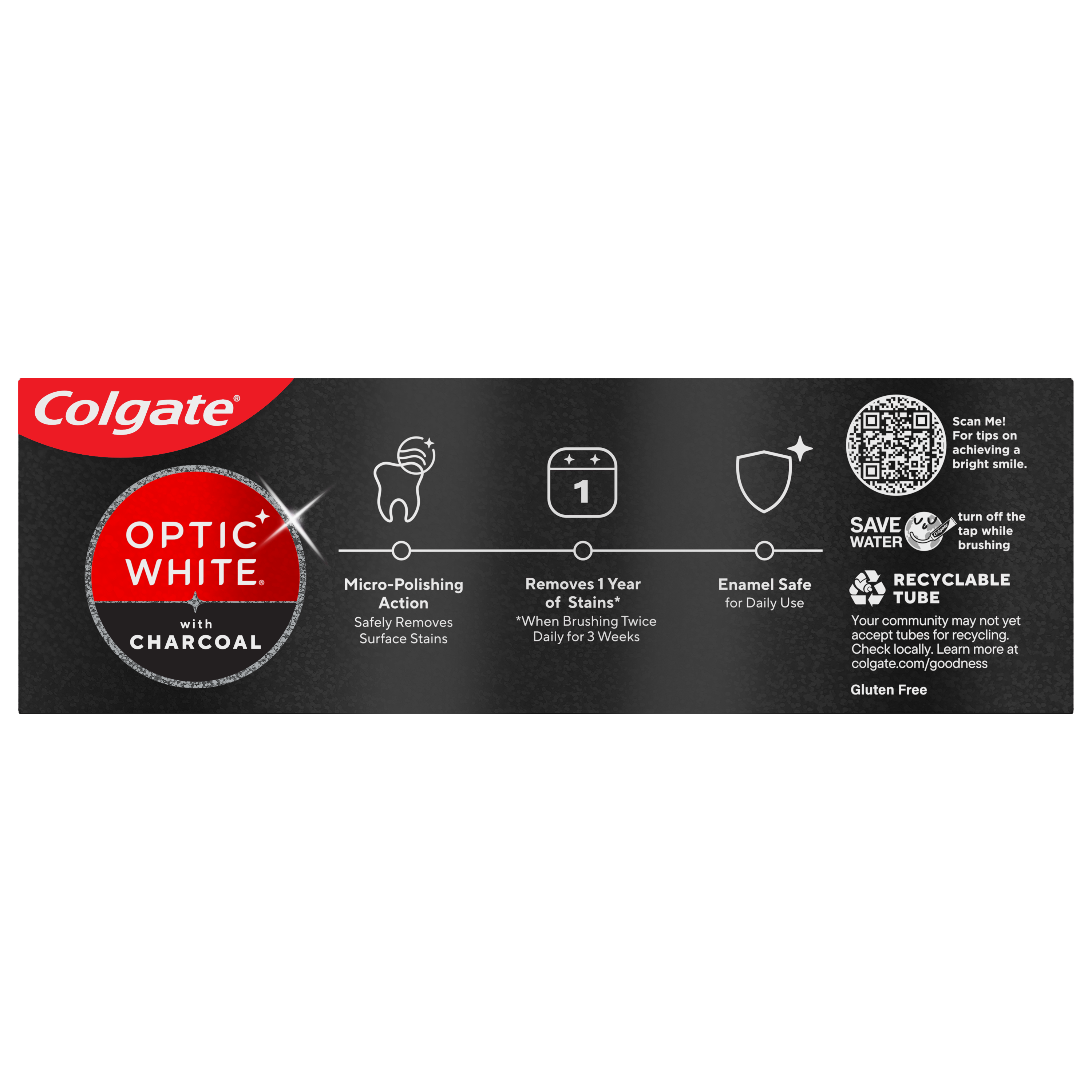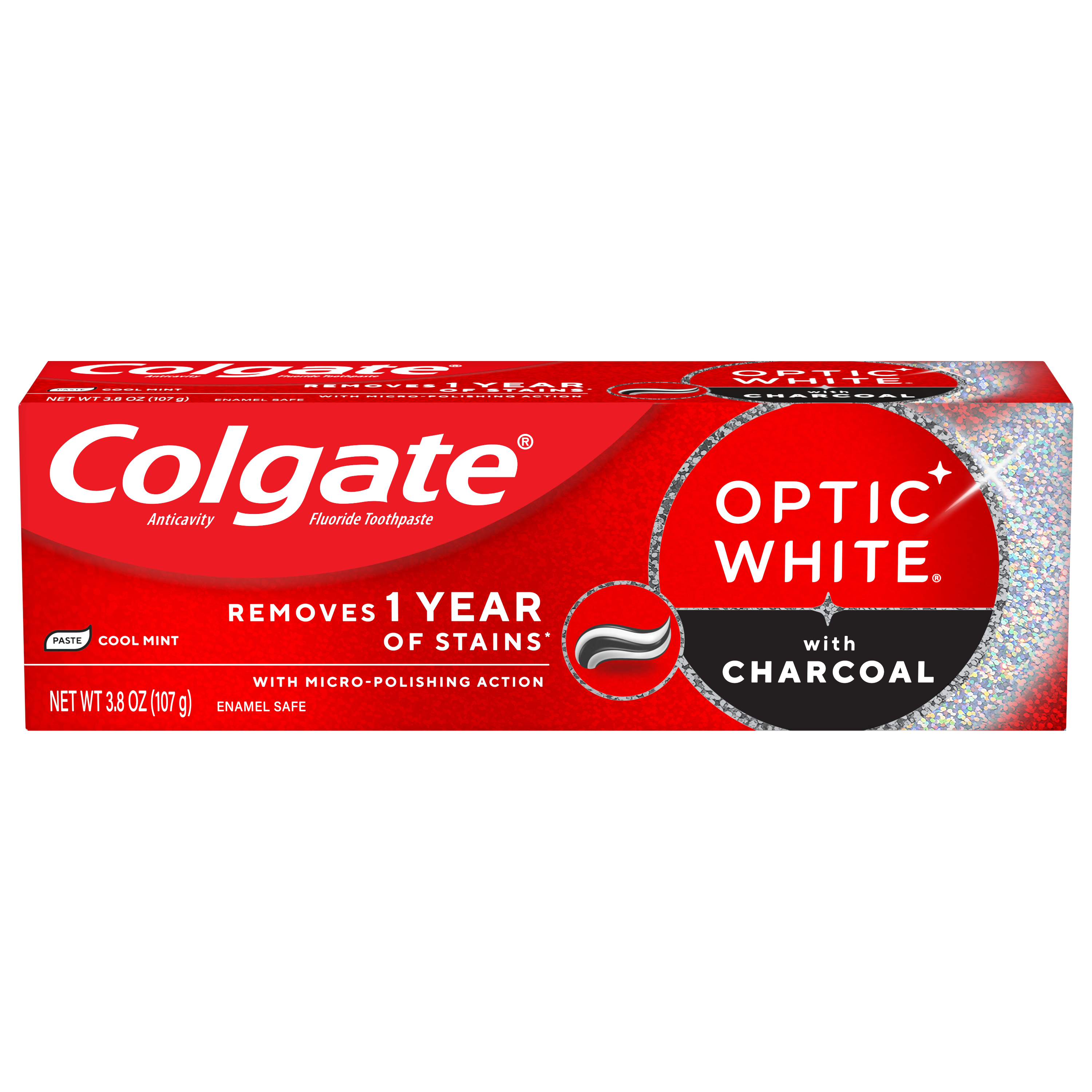 Colgate Optic White with Charcoal Teeth Whitening Toothpaste, Anticavity Toothpaste with Fluoride, Cool Mint Flavor, 3.8 OZ