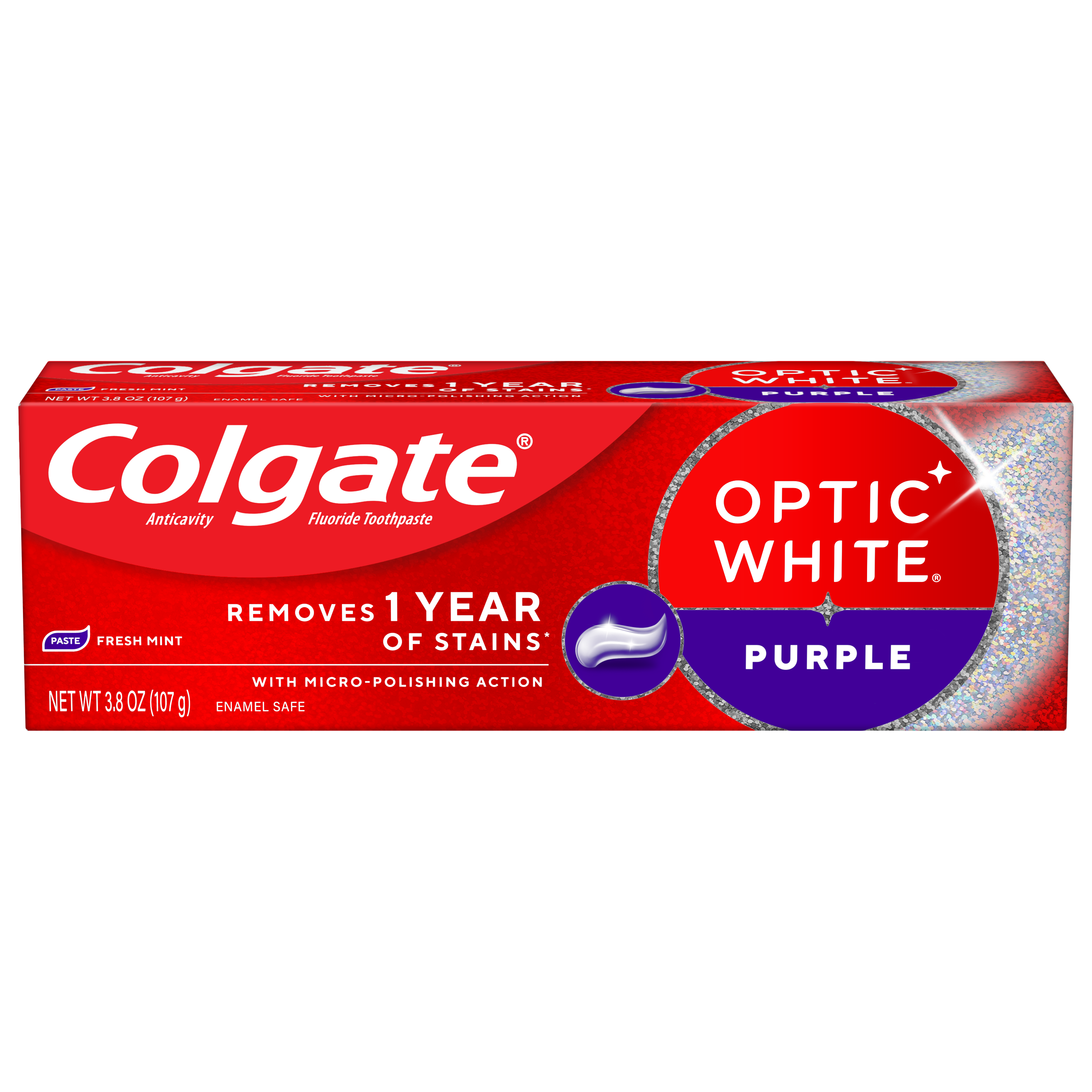 Colgate Optic White Purple Teeth Whitening Toothpaste, Anticavity Toothpaste with Fluoride, Fresh Mint Flavor, 3.8 OZ