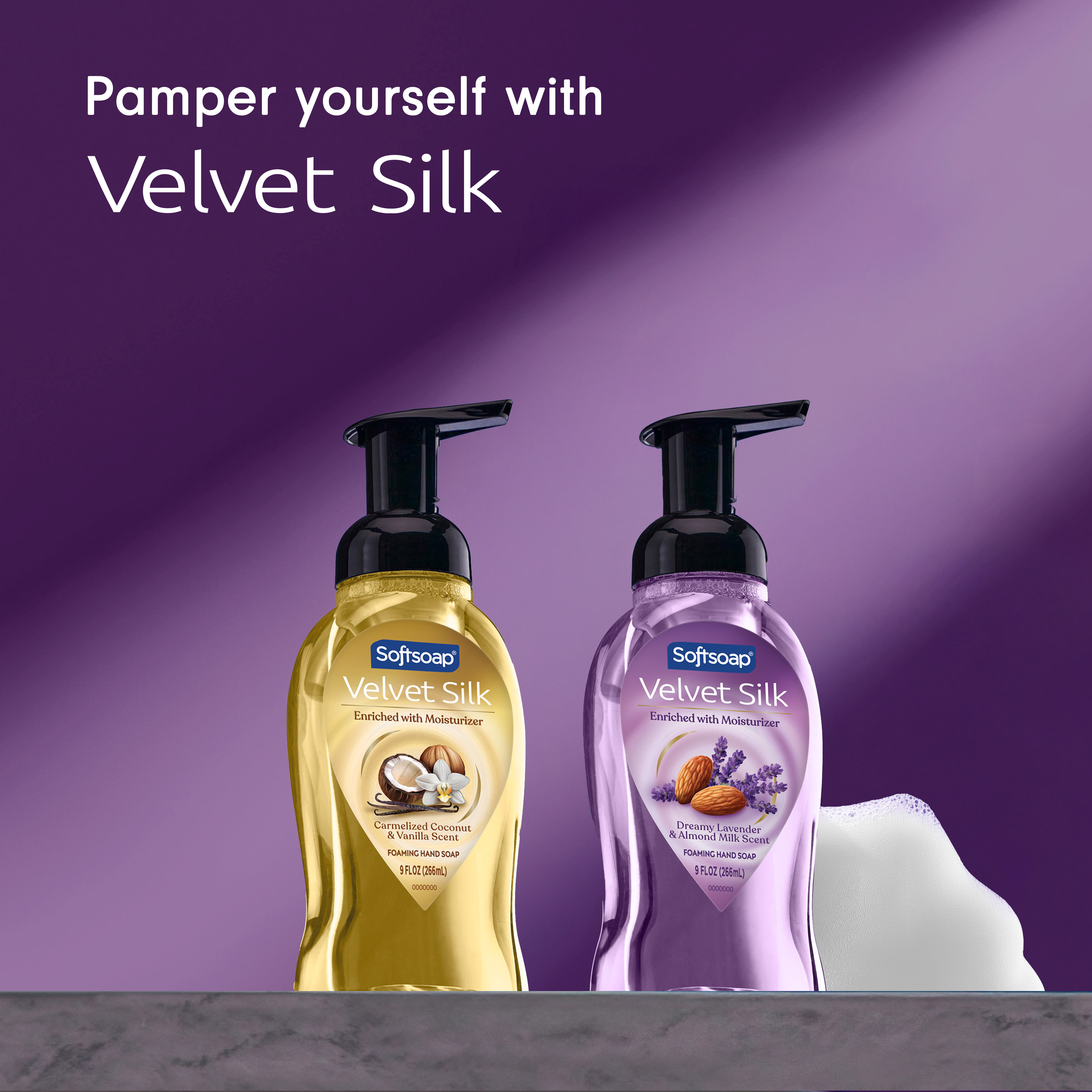 SKU 61052503 Consumer Unit - GTIN 00827854025474 Case - GTIN 10827854025471 Product Category Personal Care Product Sub Category Liquid Hand Wash Product Equity (Brand) Softsoap Product Sub Brand SS Velvet Silk LHW Product Title Softsoap Velvet Silk Foaming Liquid Hand Soap, Bathroom and Kitchen Hand Soap, Paraben-Free, Washes Away Bacteria, #1 Liquid Hand Soap Brand, Dreamy Lavender & Almond Milk Scent, 9 fl oz Product Description Indulge in a pampering clean with Softsoap Velvet Silk Foaming Liquid Hand Soap, Dreamy Lavender & Almond Milk Scent; a luxury hand soap that brings a touch of elegance to every sink. As the #1 liquid hand soap brand* Softsoap presents a luxurious, moisturizing hand soap that blends calming lavender with almond milk for a soothing, comforting scent. Specially formulated to wash away bacteria while helping to retain your skin’s natural moisture, this hand soap is paraben-free and phthalate-free; perfect for families and ideal for daily use. The rich, silky lather transforms every hand wash into a spa-like experience. Our advanced formula creates a foaming hand soap experience that feels gentle and indulgent on your skin. Plus, it’s enriched with moisturizer to ensure your hands stay soft, smooth, and hydrated after every wash. This bathroom and kitchen hand soap comes in a convenient hand soap pump for easy, mess-free dispensing. It elevates every moment, infusing your routine with a touch of self-care and sophistication. *Based in part on data reported by Nielsen through its Market Track Service for the Liquid Hand Soap Category for the 52 week period ending 09/13/25, for the All Outlet market. Copyright © 2025 Nielsen. Bullet 1 Includes one 9 fl oz pump bottle of Softsoap Velvet Silk Foaming Liquid Hand Soap, Dreamy Lavender & Almond Milk Scent, #1 liquid hand soap brand* Bullet 2 This calming lavender fragrance is blended with almond milk for a spa-like experience Bullet 3 Velvet Silk’s advanced formula provides the delight of a foaming soap while gently cleansing and moisturizing your skin Bullet 4 Formulated to care for your hands, this fancy hand soap is enriched with moisturizer to help keep skin feeling soft, smooth, and hydrated after every wash Bullet 5 Ideal as a kitchen hand soap, bathroom hand soap, or kids hand soap, elevating each handwashing moment with its silky lather Bullet 6 This scented hand soap is crafted without parabens or phthalates for ingredient transparency and peace of mind Target RPC 94846796 Target URL https://www.target.com/p/a/-/A-94846796