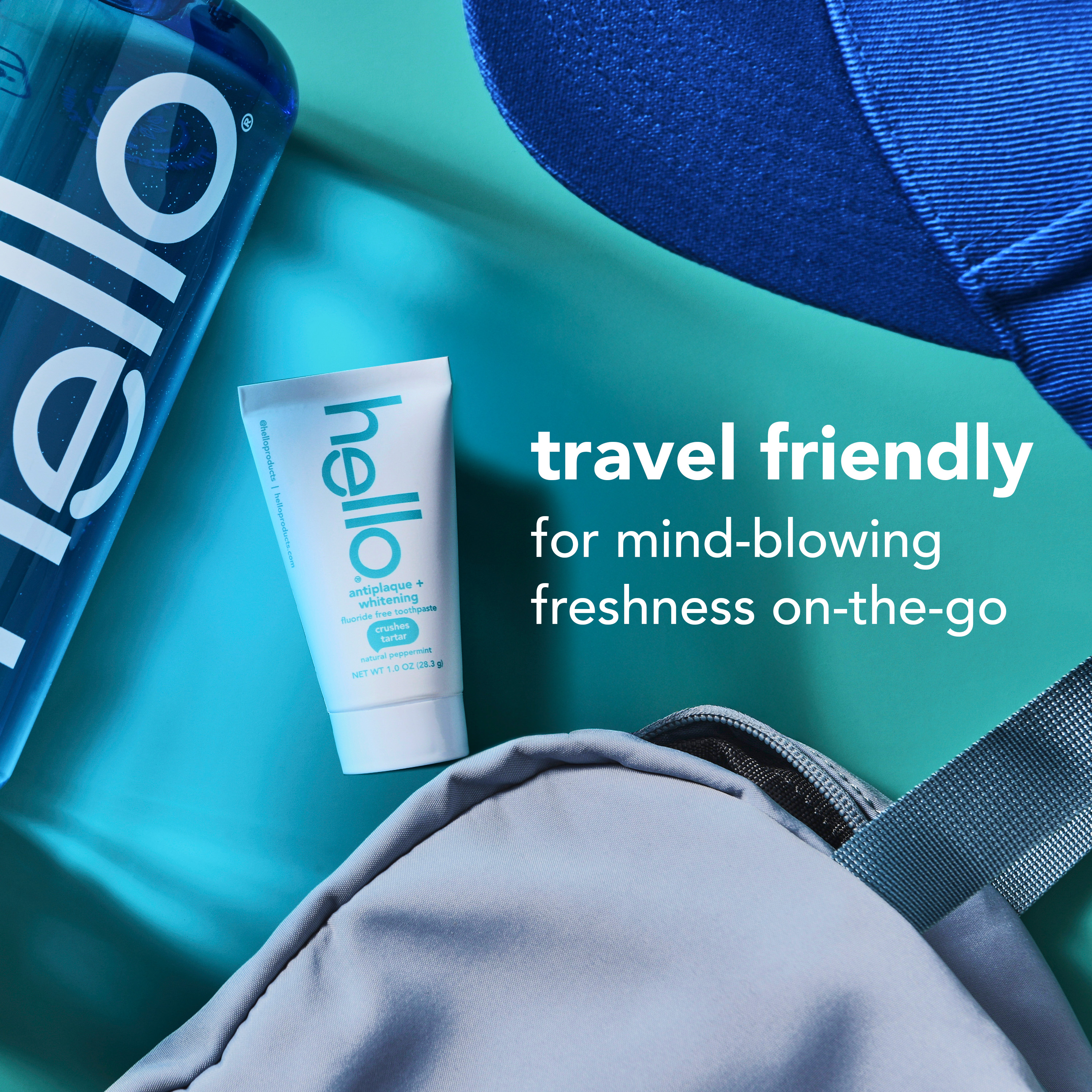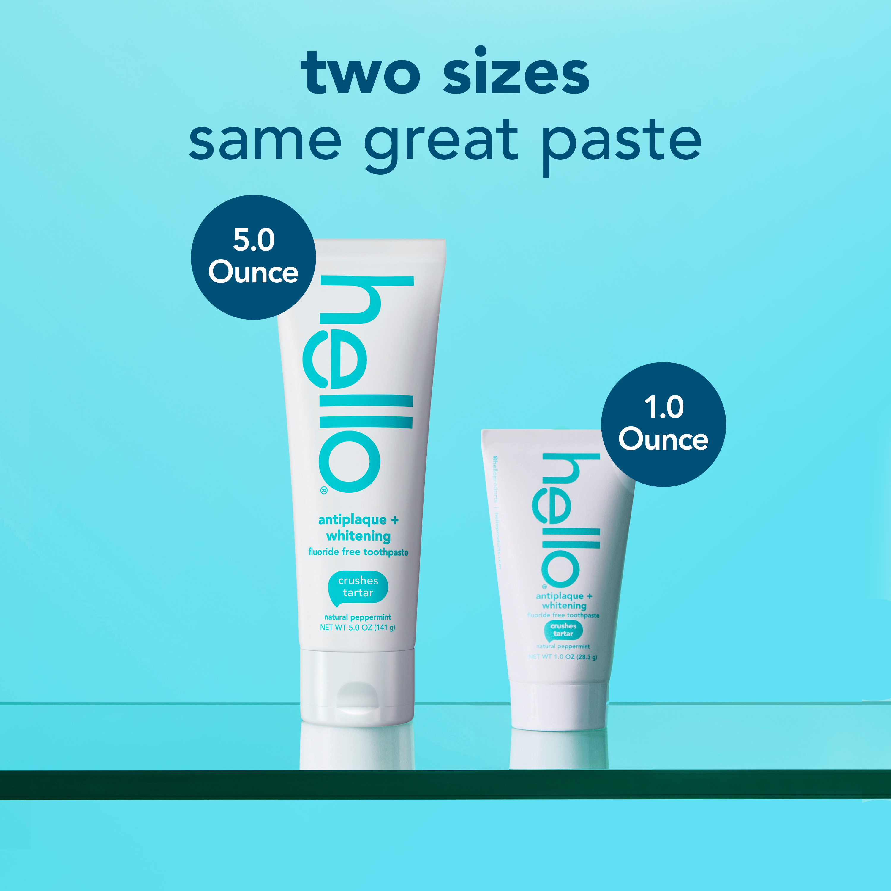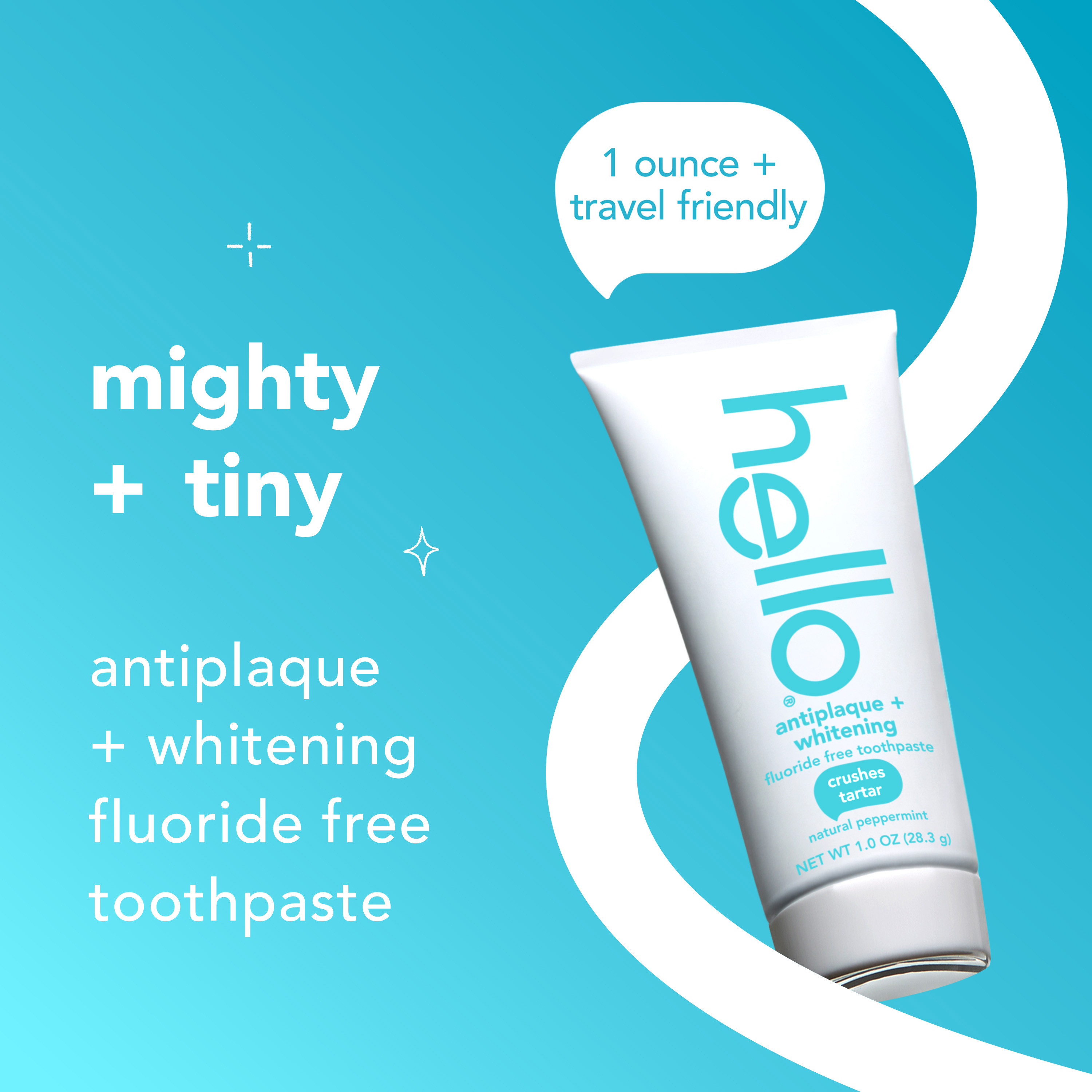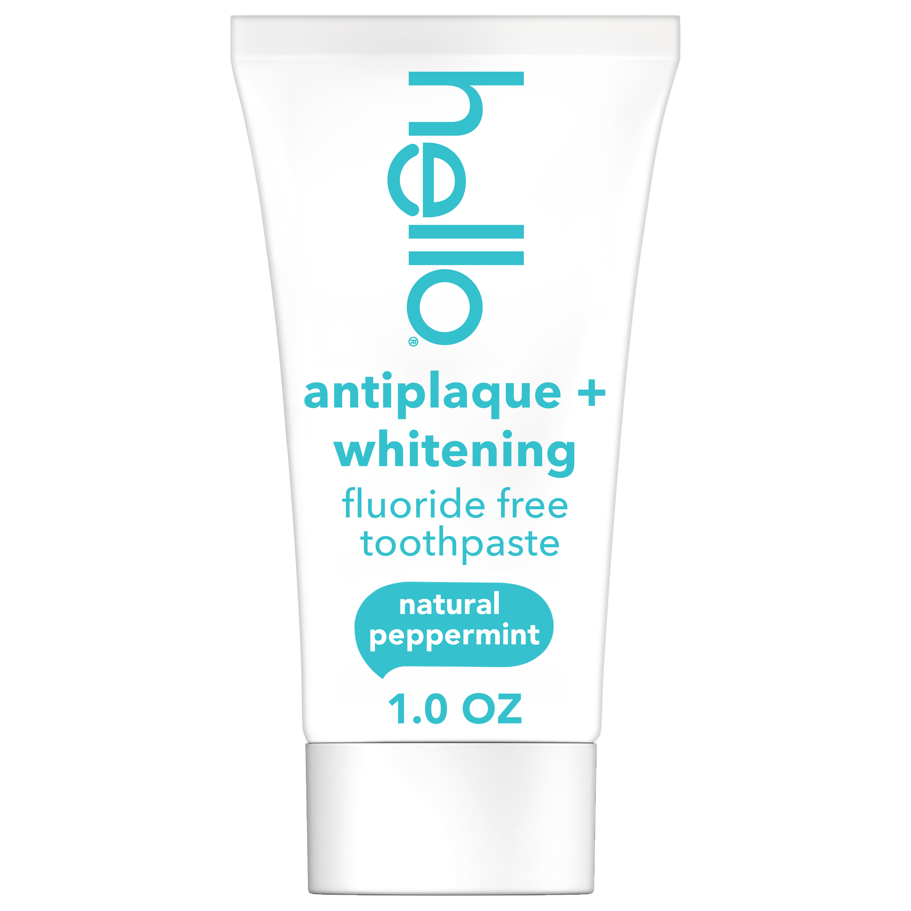 hello Antiplaque and Whitening Fluoride Free Travel Toothpaste, Natural Peppermint, 1 Oz
