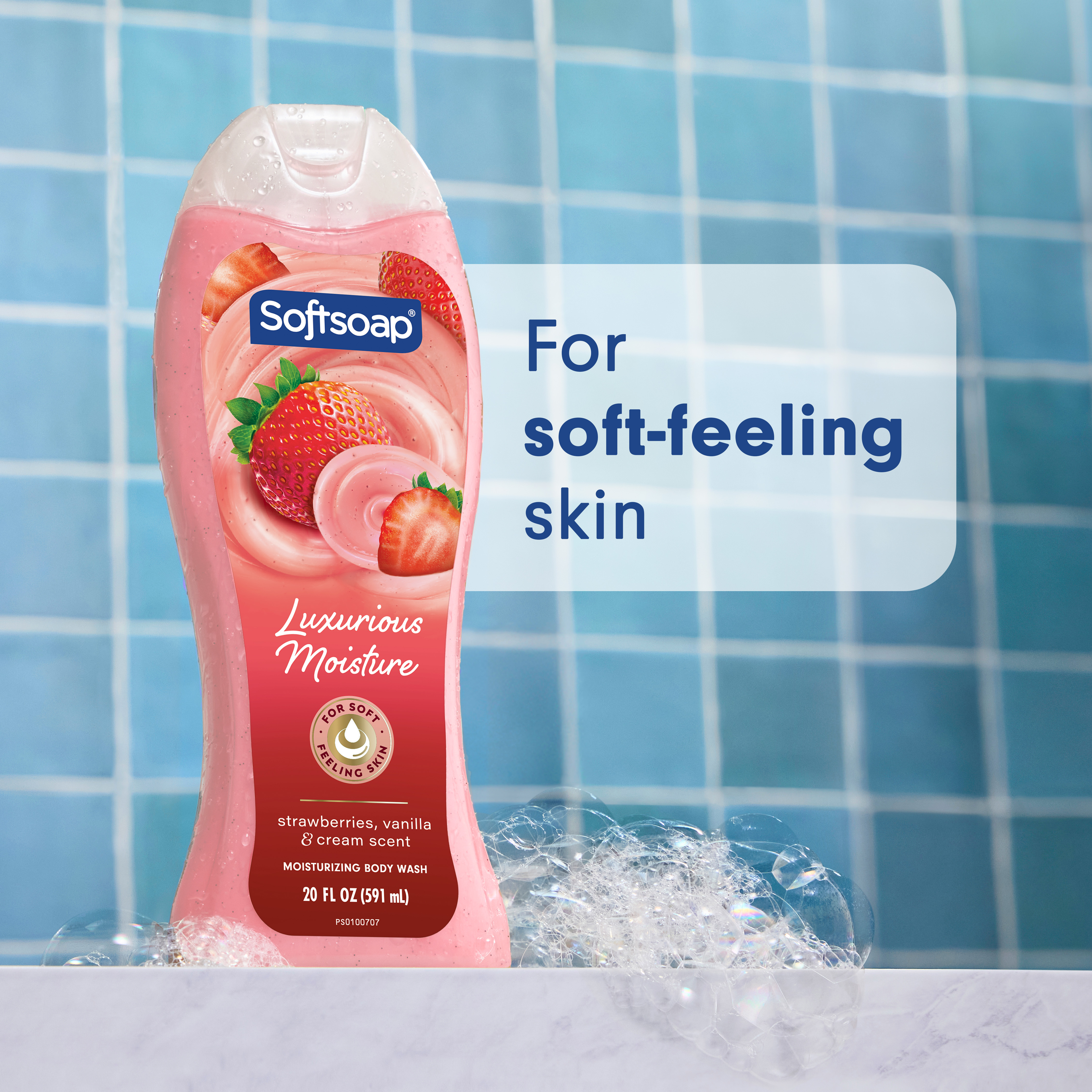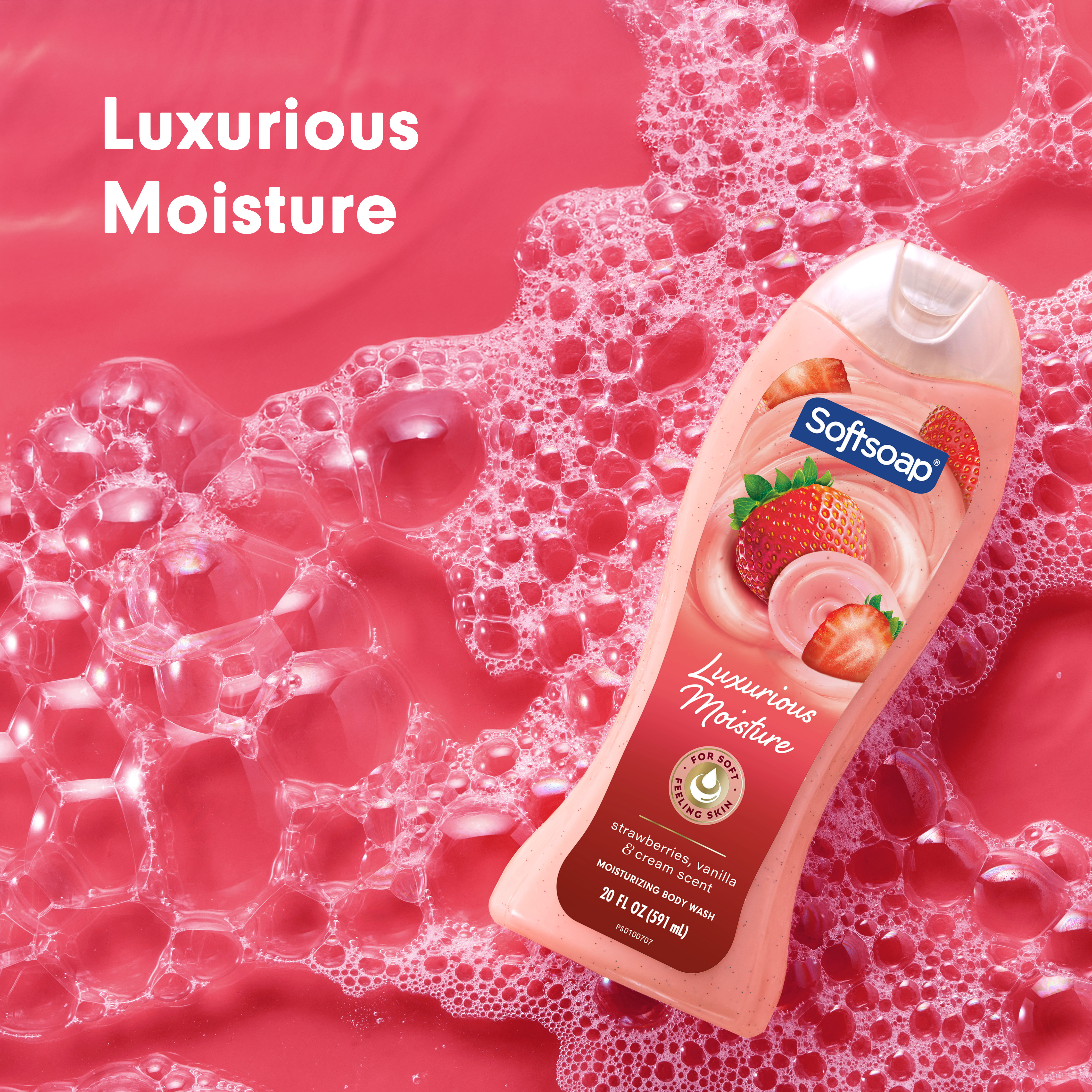 | Product Title | Softsoap Luxurious Moisture Body Wash, pH Balanced Moisturizing Body Wash, Pampering Shower Gel, Strawberries, Vanilla & Cream Scent, 20 fl oz Bottle |