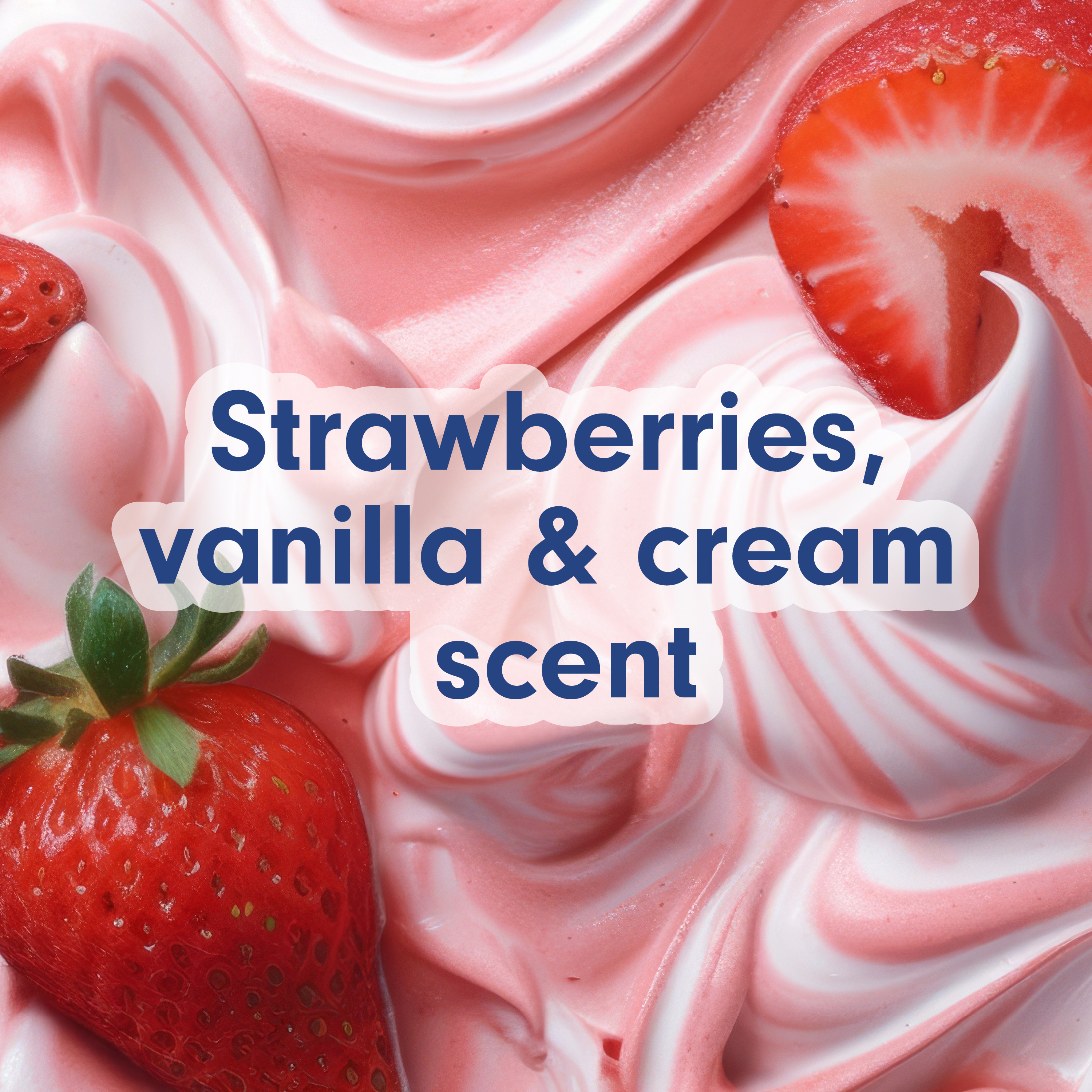 | Bullet 4 | Enjoy a joyful, spa-like shower with the sweet scent strawberries, vanilla, and rich cream that will transform your bathroom into a personal oasis |