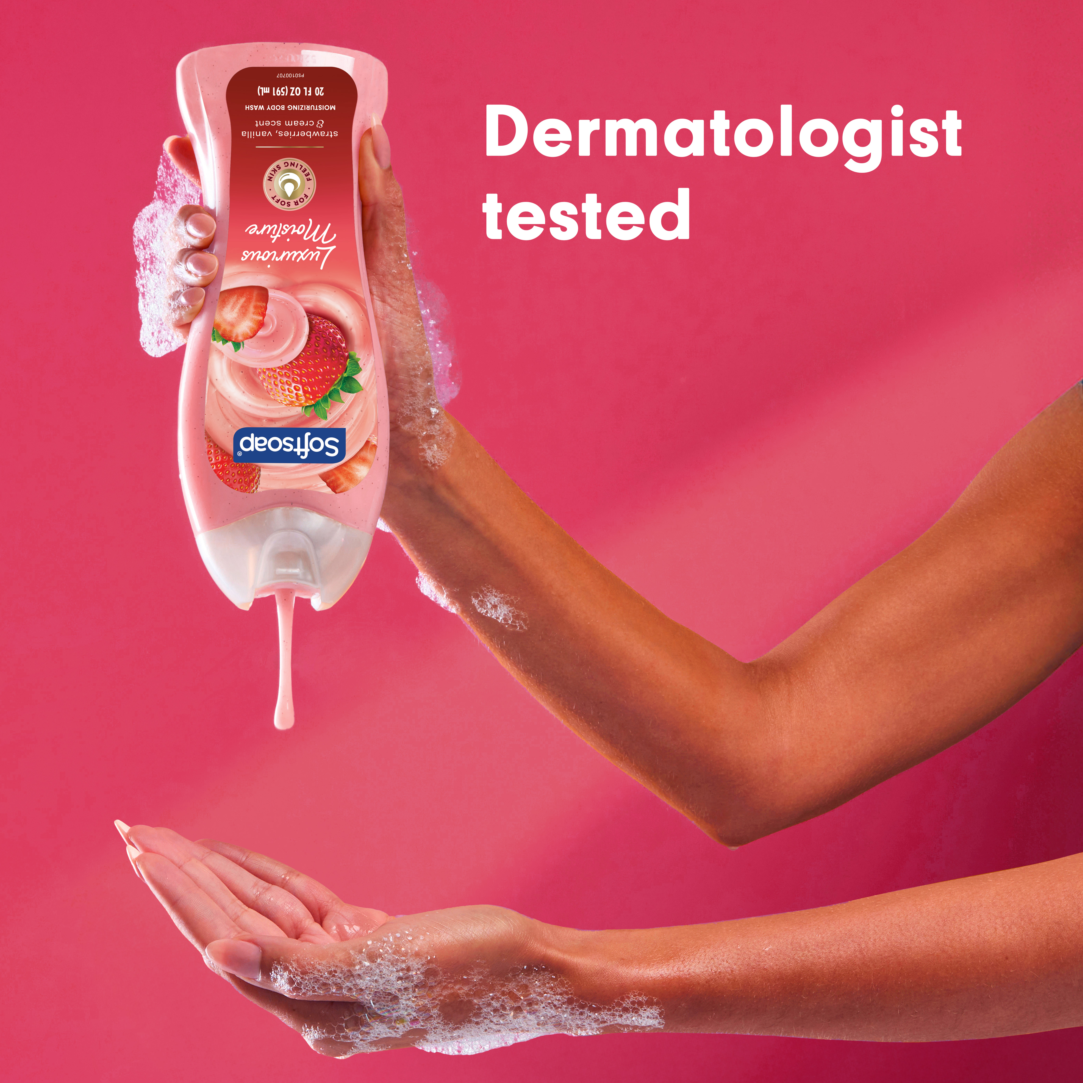 | Product Description | Elevate your daily shower routine with Softsoap Luxurious Moisture Body Wash in our delightful Strawberries, Vanilla & Cream scent. This dermatologist tested, pH balanced moisturizing body wash is crafted to deliver soft-feeling skin and premium skin benefits. Infused with a luxurious fragrance blend of sweet strawberries, vanilla, and cream, this moisturizing body wash creates a delightful, spa-like experience right at home. The nourishing lather helps retain skin’s natural moisture, leaving your skin feeling refreshed after every use. Our body wash for women is paraben free making it perfect for those seeking a body wash that revitalizes. Whether you want a spa-like body wash for a relaxing moment, a burst of fragrant indulgence, or a body wash that pampers, Softsoap Body Wash is your go-to for soft, clean, and cared-for feeling skin. Discover the perfect balance of luxury and everyday care with our premium body wash formula. |