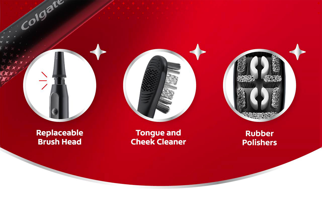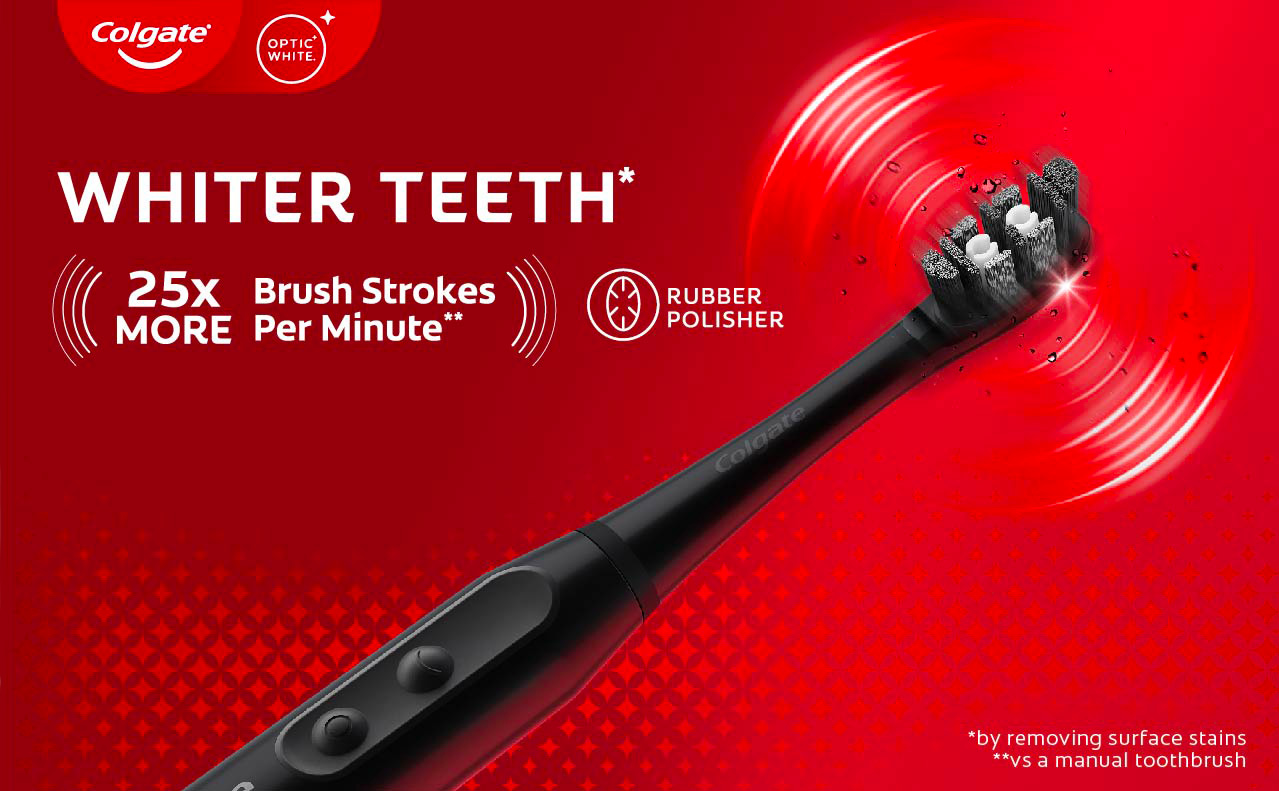 | Bullet 5 | Unleash the cleaning power of 30,000 brush strokes per minute with the Colgate Optic White Battery Powered Toothbrush |