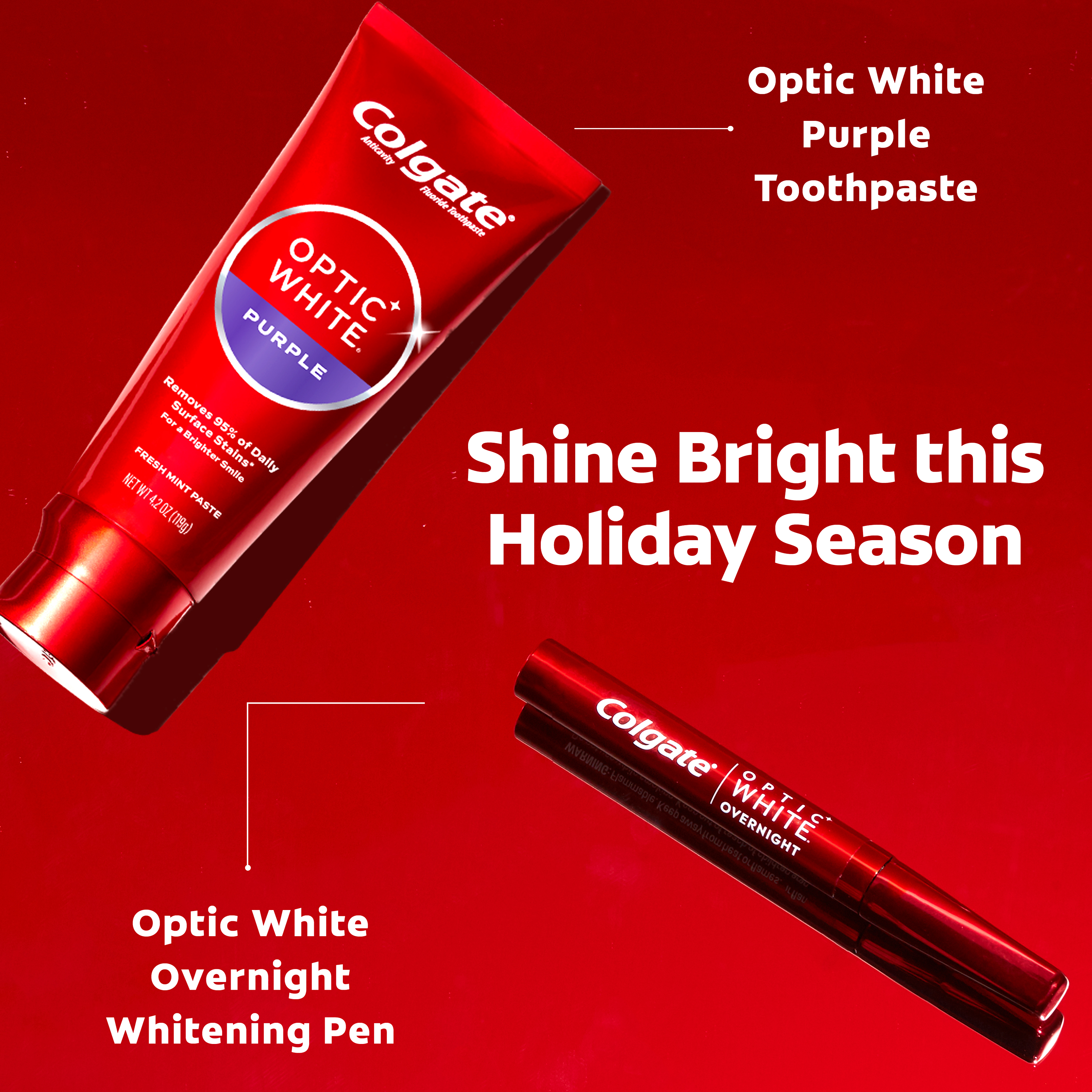 Colgate Optic White Overnight Teeth Whitening Pen and Purple Toothpaste Holiday Gift Set