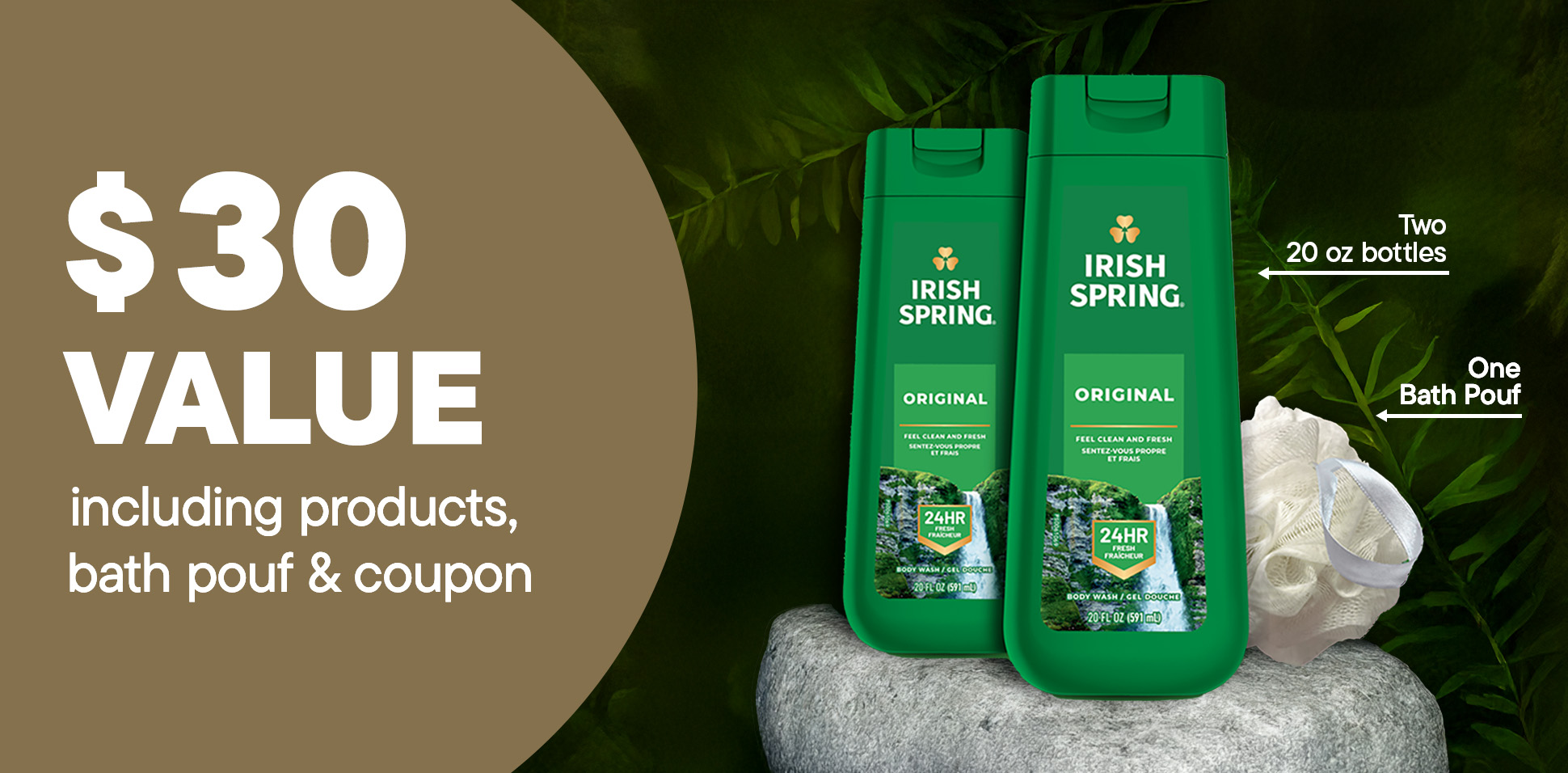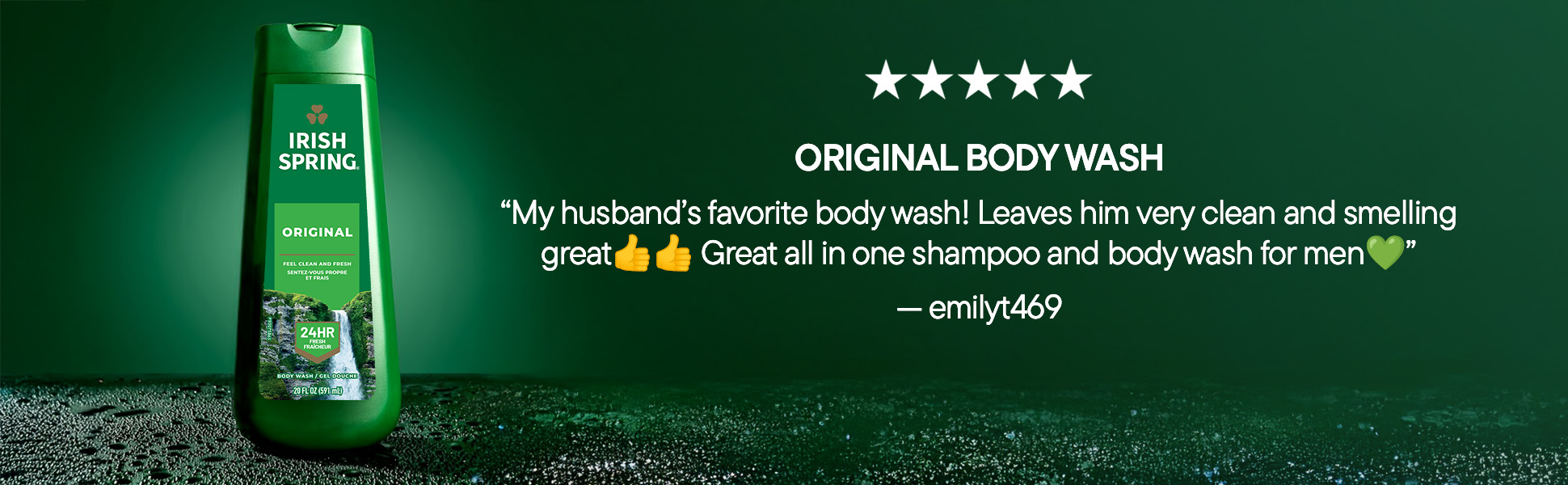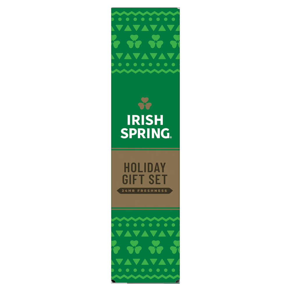 SKU 61053312 Consumer Unit - GTIN 00827854026419 Case - GTIN 10827854026416 Product Category Personal Care Product Sub Category Body Wash Product Equity (Brand) Irish Spring Product Sub Brand Irish Spring BW Product Title Irish Spring Original Body Wash Gift Set, Paraben Free, 2 x 20 fl oz Bottles Plus Bath Pouf Product Description Elevate your daily routine or holiday gifting with the Irish Spring Original Gift Set, designed to deliver fresh, clean confidence all day long. This men’s holiday set includes two 20 fl oz bottles of Irish Spring Original Body Wash and a durable bath pouf to gently exfoliate. Each bottle is infused with a crisp fragrance blend of bergamot, green notes, and a hint of mint for a revitalizing shower experience. The formula helps retain your skin’s natural moisture. Irish Spring body wash is paraben free and suitable for use on both face and body, simplifying your shower routine. The gift set is valued at $30, including products and coupons, making it an excellent choice for gifting to friends, family, or yourself. Give the gift of invigorating scent and refreshed skin this holiday season with this Irish Spring men’s body wash gift set. Bullet 1 Gift set includes two 20 fl oz bottles of Irish Spring Original Body Wash plus a bath pouf for a complete shower routine Bullet 2 Our men’s body wash features a crisp, clean scent with refreshing bergamot, green notes, and a hint of mint for daily freshness Bullet 3 The perfect gift for anyone on your list, this holiday gift set delivers 24-hour freshness and helps retain your skin’s natural moisture Bullet 4 Great holiday or winter gift set for men or anyone who loves 24-hour freshness and classic scents Bullet 5 This men’s bath set is paraben free and formulated without phthalates Walmart RPC 16360905918 Walmart URL (Computed) https://www.walmart.com/ip/a/16360905918