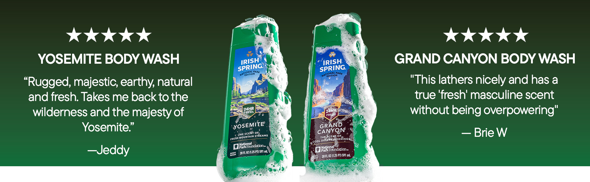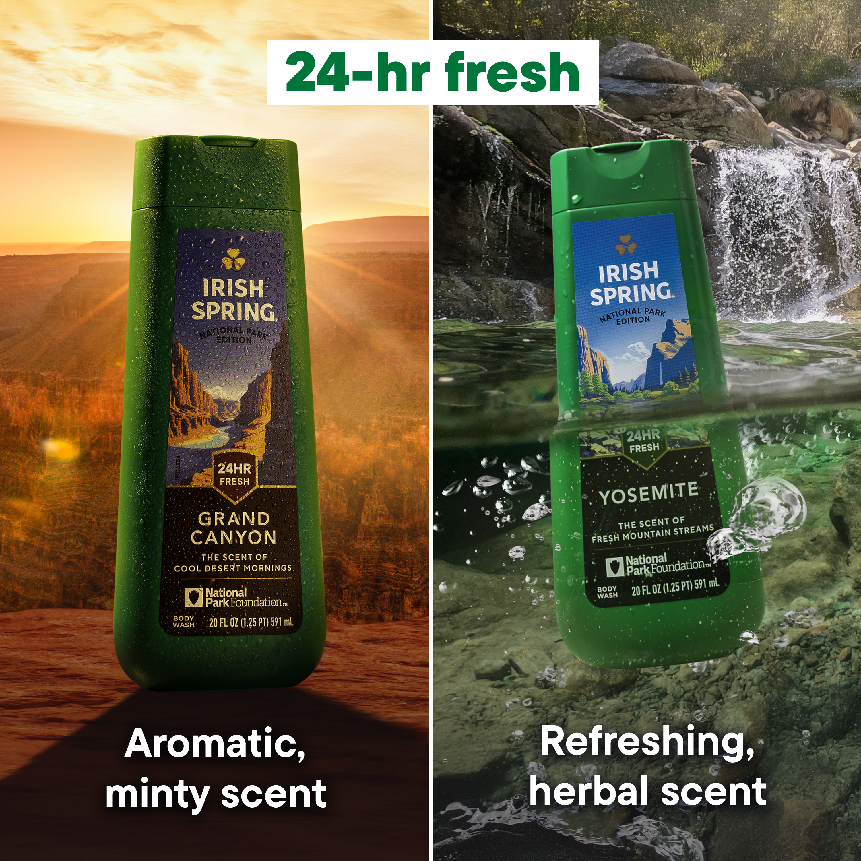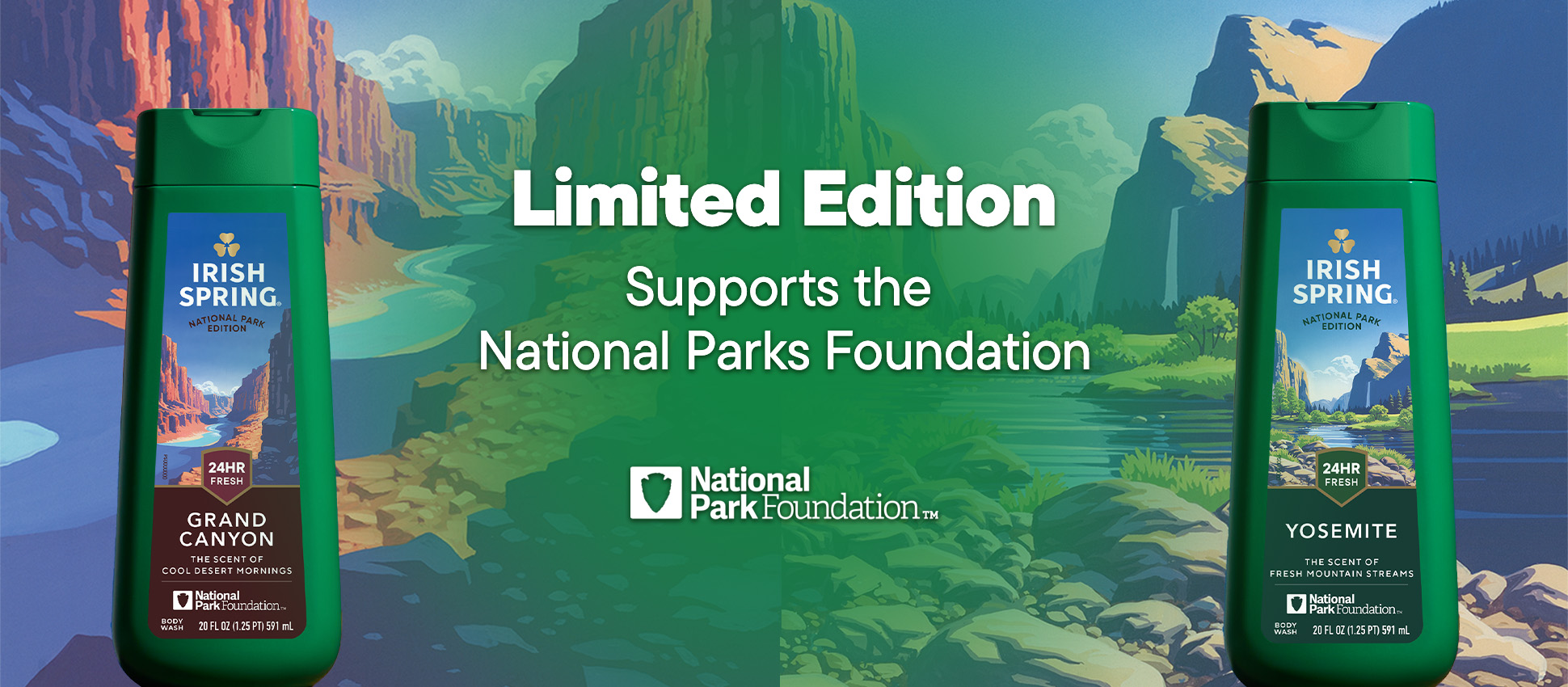 SKU 61053327 Consumer Unit - GTIN 00827854026389 Case - GTIN 10827854026386 Product Category Personal Care Product Sub Category Body Wash Product Equity (Brand) Irish Spring Product Sub Brand Irish Spring BW Product Title Irish Spring National Parks Limited Edition Gift Set, Yosemite & Grand Canyon Body Wash, 2 x 20 fl oz Bottles Plus Bath Pouf Product Description Experience the great outdoors every time you shower with the Irish Spring National Parks Limited Edition Gift Set, featuring exclusive scents inspired by Yosemite and the Grand Canyon. This men’s holiday set includes two 20 fl oz bottles of Irish Spring Body Wash and a durable bath pouf to gently exfoliate. Our Yosemite Body Wash has a cool, minty scent like fresh mountain air, and our Grand Canyon Body Wash offers a crisp, herbal scent reminiscent of a desert morning. The formula helps retain your skin’s natural moisture. Irish Spring body wash is paraben free and suitable for use on both face and body, simplifying your shower routine. This limited-edition set is valued at $30 with included products and coupons, making it a unique gift for friends, family, or yourself. Plus, we've partnered with the National Park Foundation to help preserve nature's wonders. Celebrate America’s natural beauty with Irish Spring National Parks Edition—freshness inspired by the wild. Bullet 1 Irish Spring Limited Edition National Parks Gift Set includes two 20 fl oz body washes inspired by Yosemite and the Grand Canyon plus a bath pouf for a complete shower routine Bullet 2 Yosemite Body Wash delivers a cool, minty scent reminiscent of fresh mountain air while Grand Canyon Body Wash provides a crisp, herbal scent like a desert morning Bullet 3 The perfect gift for anyone on your list, this holiday gift set delivers 24-hour freshness and helps retain your skin’s natural moisture Bullet 4 Great holiday or winter gift set for men or anyone who loves feeling clean and fresh and limited edition scents Bullet 5 The men’s bath set is paraben free and formulated without phthalates Walmart RPC 16336111553 Walmart URL (Computed) https://www.walmart.com/ip/a/16336111553