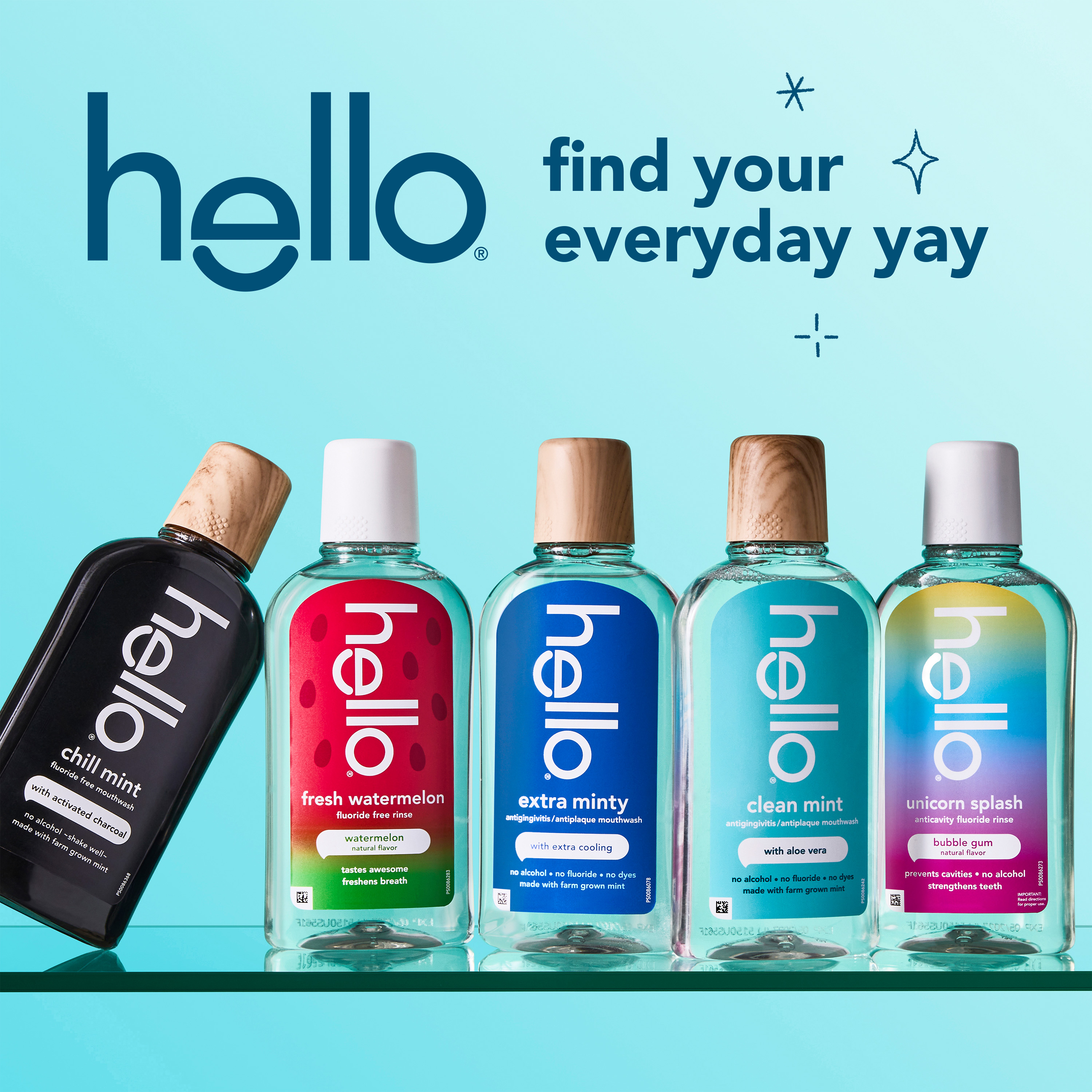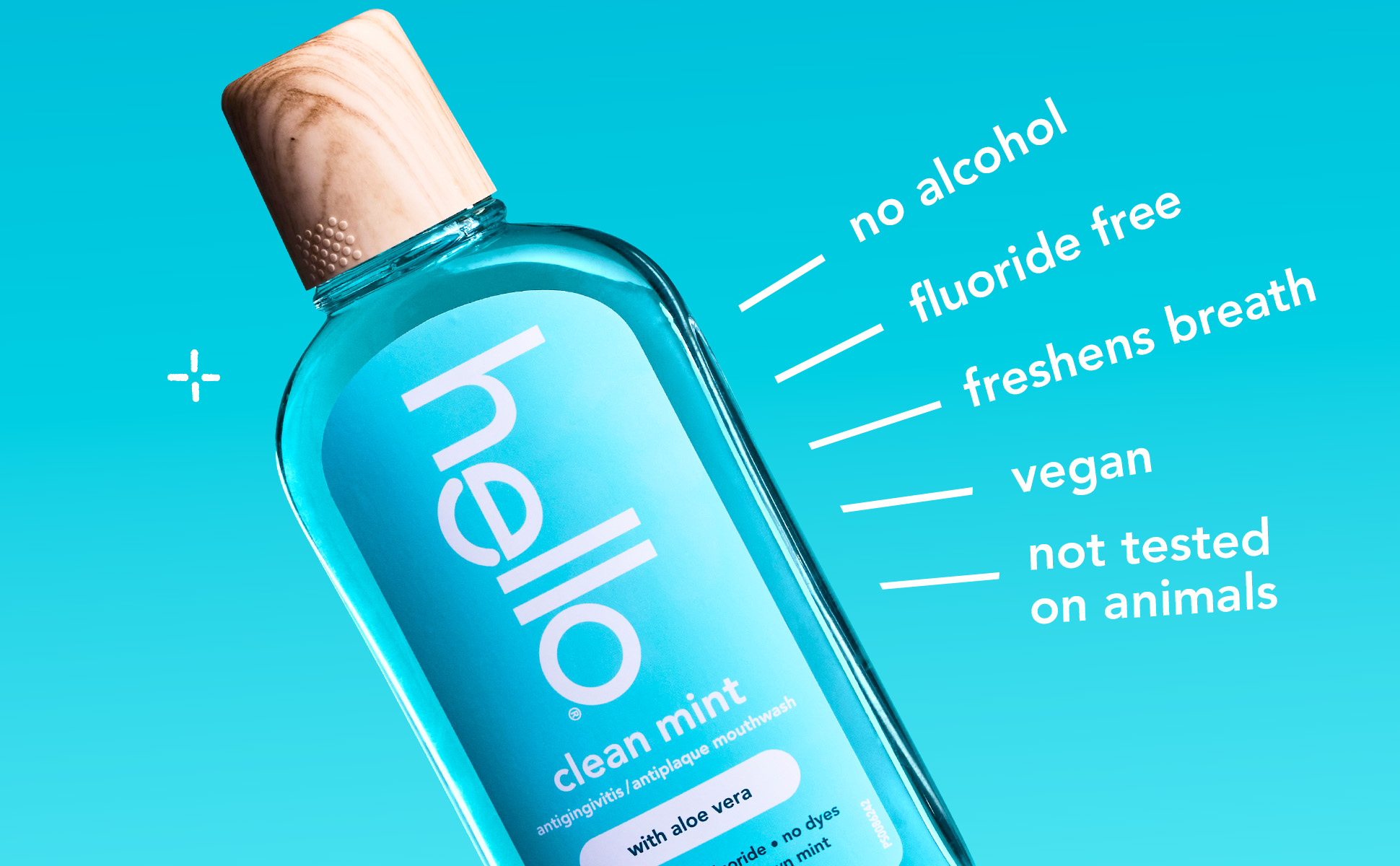 | Bullet 5 | With a reimagined crystal-clear bottle design and an upscale wood grain cap, elevate your bathroom counter space with hello fluoride free mouthwash |