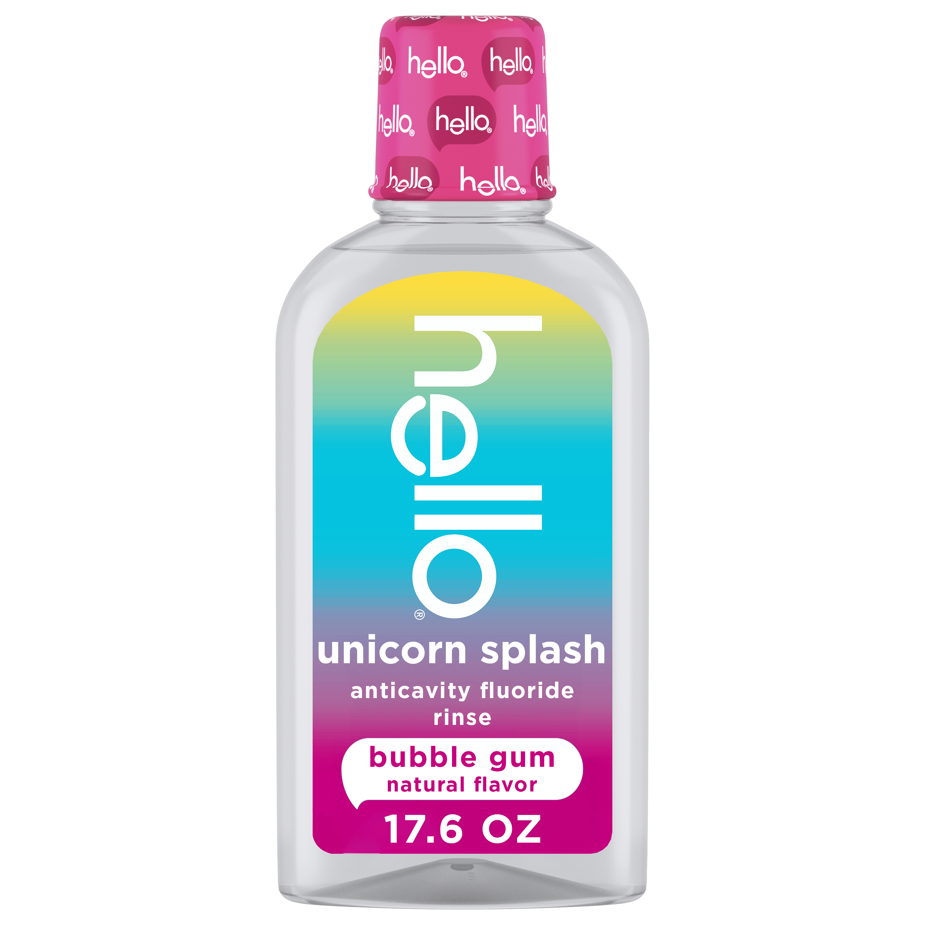 hello Unicorn Splash Kids Mouthwash with Fluoride, 17.6 Fl Oz, Bubblegum Mouthwash for Kids, No Alcohol Formula, Strengthens Teeth, No Spicy Mint, SLS Free, Great for Daily Oral Care Routines