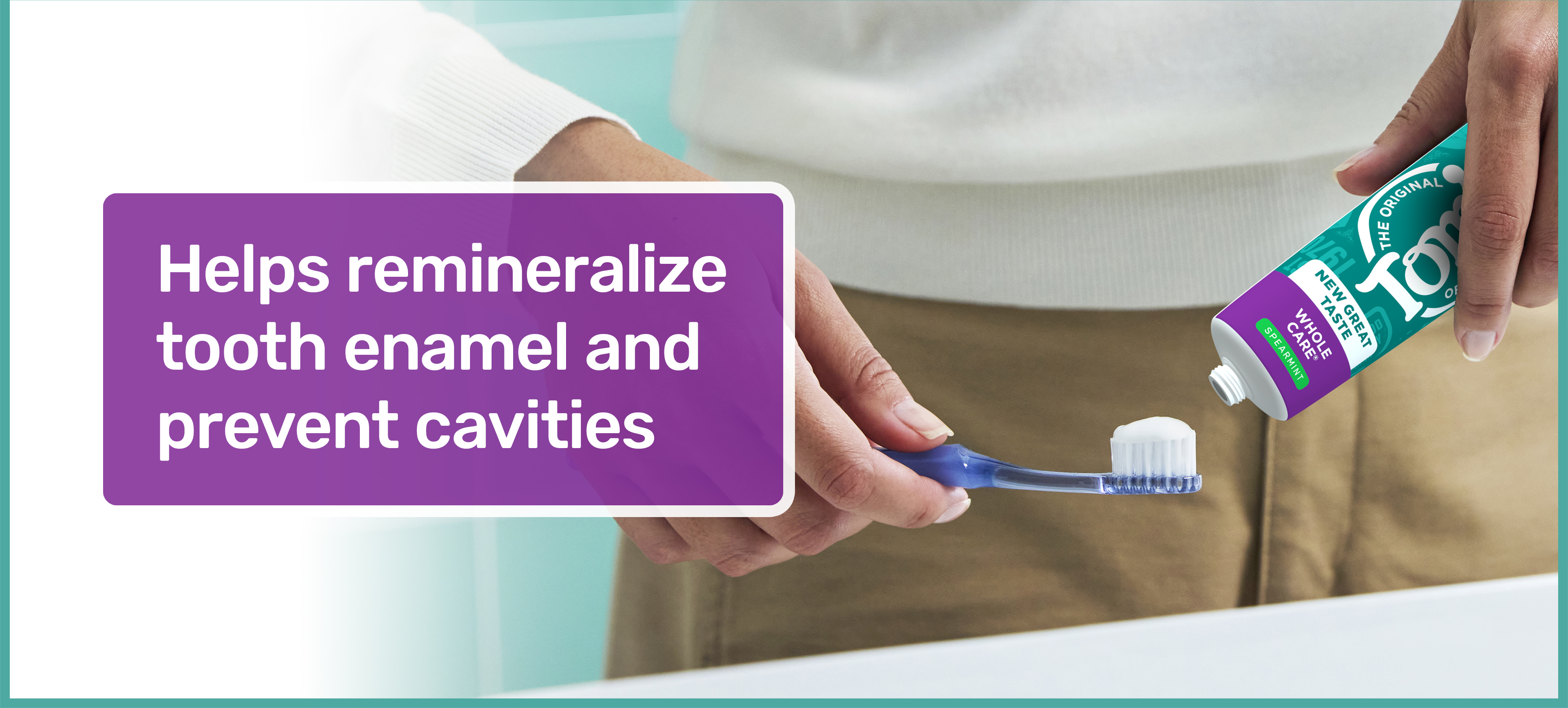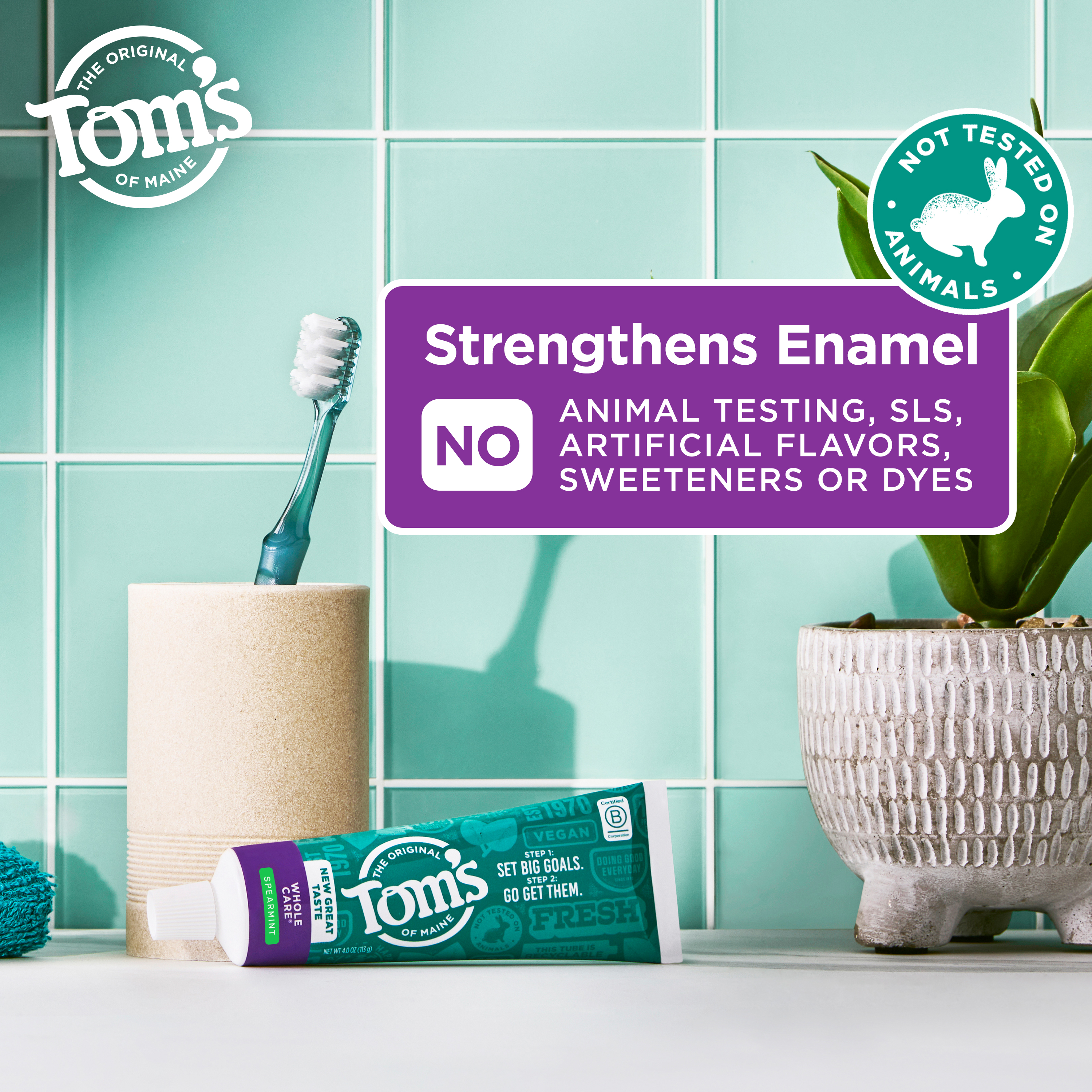 SKU 61053536 Consumer Unit - GTIN 00077326470183 Case - GTIN 10077326470180 Product Category Oral Care Product Sub Category Toothpaste Product Equity (Brand) Tom's Product Sub Brand Tom's Whole Care TP Product Title Tom's of Maine Whole Care Natural Toothpaste with Fluoride, Spearmint, 4.0 oz Product Description Promote a clean, bright, healthy smile with Tom’s of Maine Whole Care Natural Toothpaste with Fluoride. This spearmint flavored fluoride toothpaste helps prevent cavities, strengthens tooth enamel, and whitens teeth by removing surface stains. Plus, the mint toothpaste features an updated formula that tastes great and leaves your mouth clean and fresh with its spearmint flavor. Tom’s of Maine Whole Care Anticavity Toothpaste doubles as a whitening toothpaste by helping remove surface stains when you brush. This cavity protection toothpaste also contains fluoride which helps prevent cavities and strengthens your teeth enamel. Tom's of Maine uses naturally sourced and derived ingredients to create oral care products that work. This spearmint toothpaste with fluoride is a vegan toothpaste with no SLS, no titanium dioxide, no artificial flavors or sweeteners, and has not been tested on animals. Now that’s something you can feel good about. Get ready to help prevent cavities, strengthen enamel, and whiten teeth with Tom’s of Maine Whole Care Natural Toothpaste. eCommerce Copy- Long Description Promote a clean, bright, healthy smile with the Tom’s of Maine Whole Care Natural Toothpaste with Fluoride. The fluoride toothpaste prevents cavities, strengthens enamel, and whitens teeth by removing surface stains. Plus, this mint toothpaste leaves your mouth feeling clean and fresh with its Spearmint flavor. Tom’s of Maine Whole Care Anticavity Toothpaste doubles as a whitening toothpaste by helping to remove surface stains. This cavity protection toothpaste also contains naturally derived fluoride which helps prevent cavities and strengthen teeth enamel. Tom's of Maine uses naturally sourced and derived ingredients to create oral care products that work. This spearmint toothpaste contains naturally derived fluoride and is a vegan toothpaste with no artificial flavors or sweeteners and has not been tested on animals. Now that’s something you can feel good about. Get ready to prevent cavities, strengthen enamel, and whiten teeth with Tom’s of Maine Whole Care Enamel Strengthening Toothpaste. Bullet 1 Includes one (1) 4.0 oz tube of Tom's of Maine Whole Care Natural Toothpaste with Fluoride, Spearmint Flavored Anticavity Toothpaste Bullet 2 This cavity protection toothpaste is formulated with fluoride which helps strengthen tooth enamel and prevents cavities Bullet 3 Tom’s of Maine Whole Natural Toothpaste helps whiten teeth by removing surface stains Bullet 4 This spearmint toothpaste features an updated formula that tastes great and leaves your mouth clean and fresh Bullet 5 Tom’s of Maine Whole Care Toothpaste is vegan, SLS free, contains no titanium dioxide, artificial flavors or sweeteners, and is not tested on animals Bullet 6 This SLS free toothpaste is made with fluoride to help fight cavities and promote a healthy smile Bullet 7 Choose a natural toothpaste that’s right for your oral care needs with this anticavity toothpaste from Tom’s of Maine Active Ingredients Sodium Monofluorophosphate 0.76% (0.13% w/v fluoride ion)