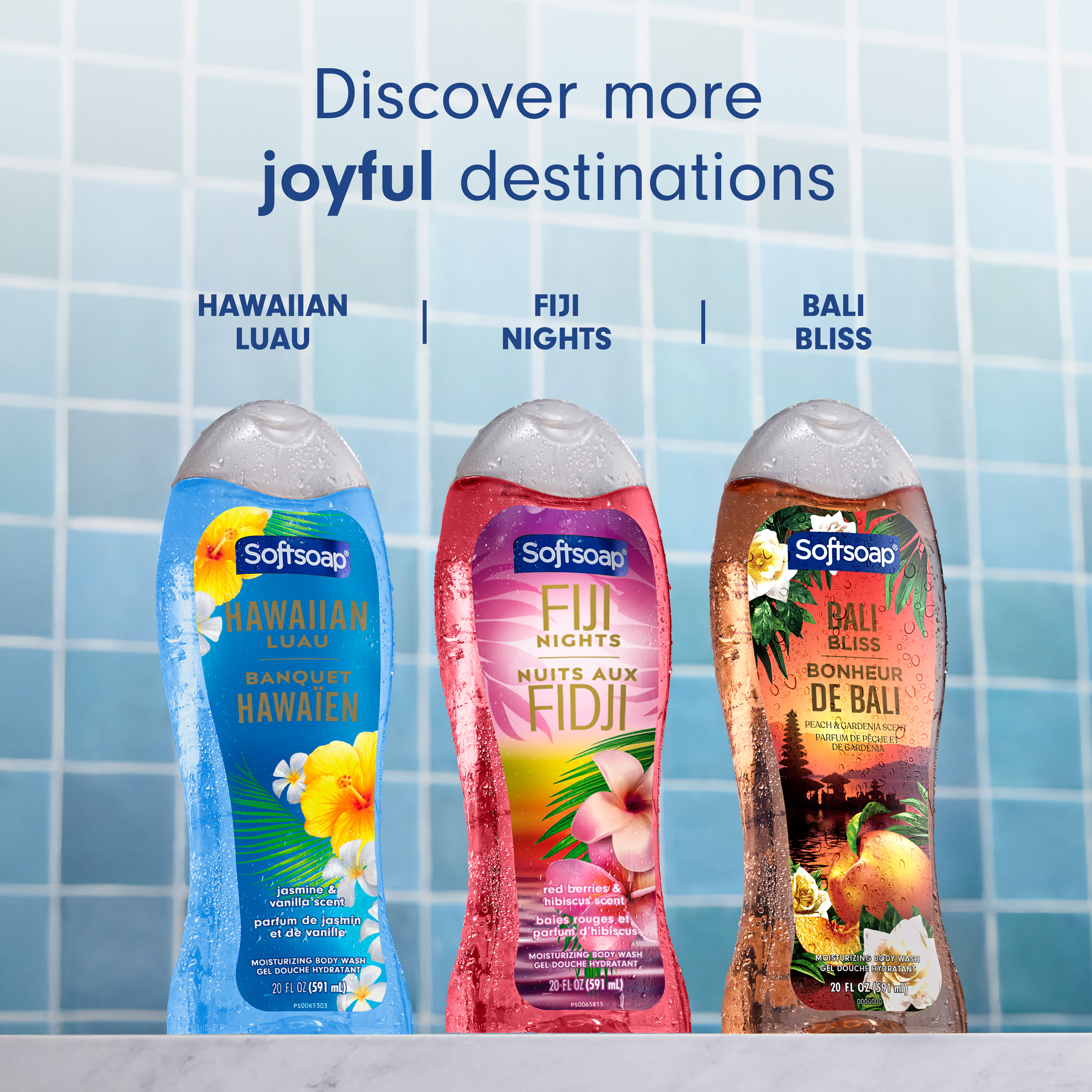 | Product Description | Experience a burst of bliss every day with Softsoap Bali Bliss Moisturizing Body Wash. Let your senses escape to trending destinations with every wash, inspired by one of the world’s most sought-after getaways and the sweet fragrance of peaches and gardenia. This body wash brings freshness to every shower, leaving your skin feeling fresh and revitalized. This pH balanced body wash helps retain your skin’s natural moisture, making it perfect for daily use and for anyone needing a body wash. Make bath time fun for the whole family! Softsoap body wash is moisturizing, making it a great choice for kids and adults alike. Formulated without parabens and phthalates. Whether you’re searching for a pink body wash, a shower gel, or just want to bring the tropics to your bathroom, Softsoap’s got you covered! |