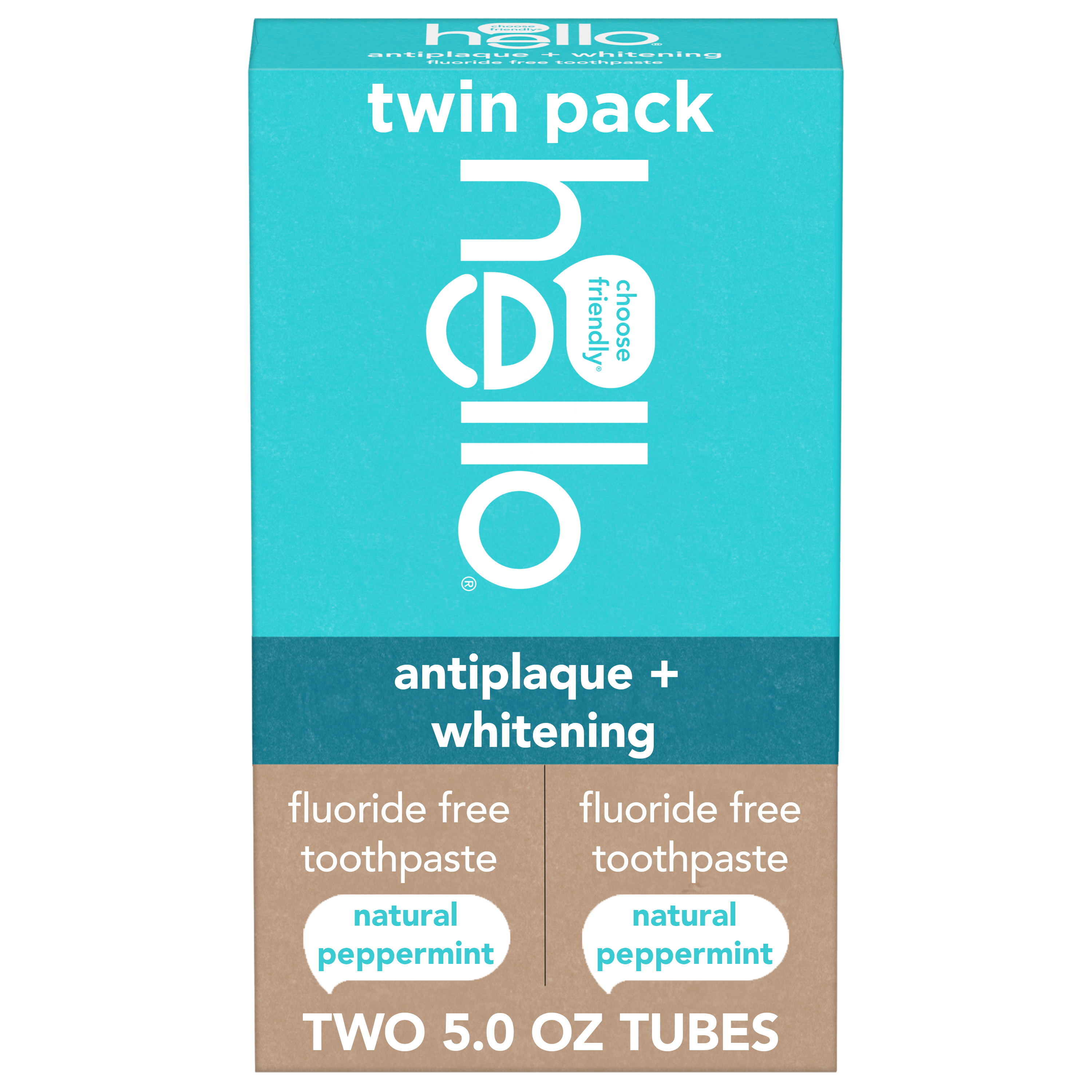 hello Antiplaque and Whitening Fluoride Free Toothpaste, Natural Peppermint, 2 Pack, 5 Oz