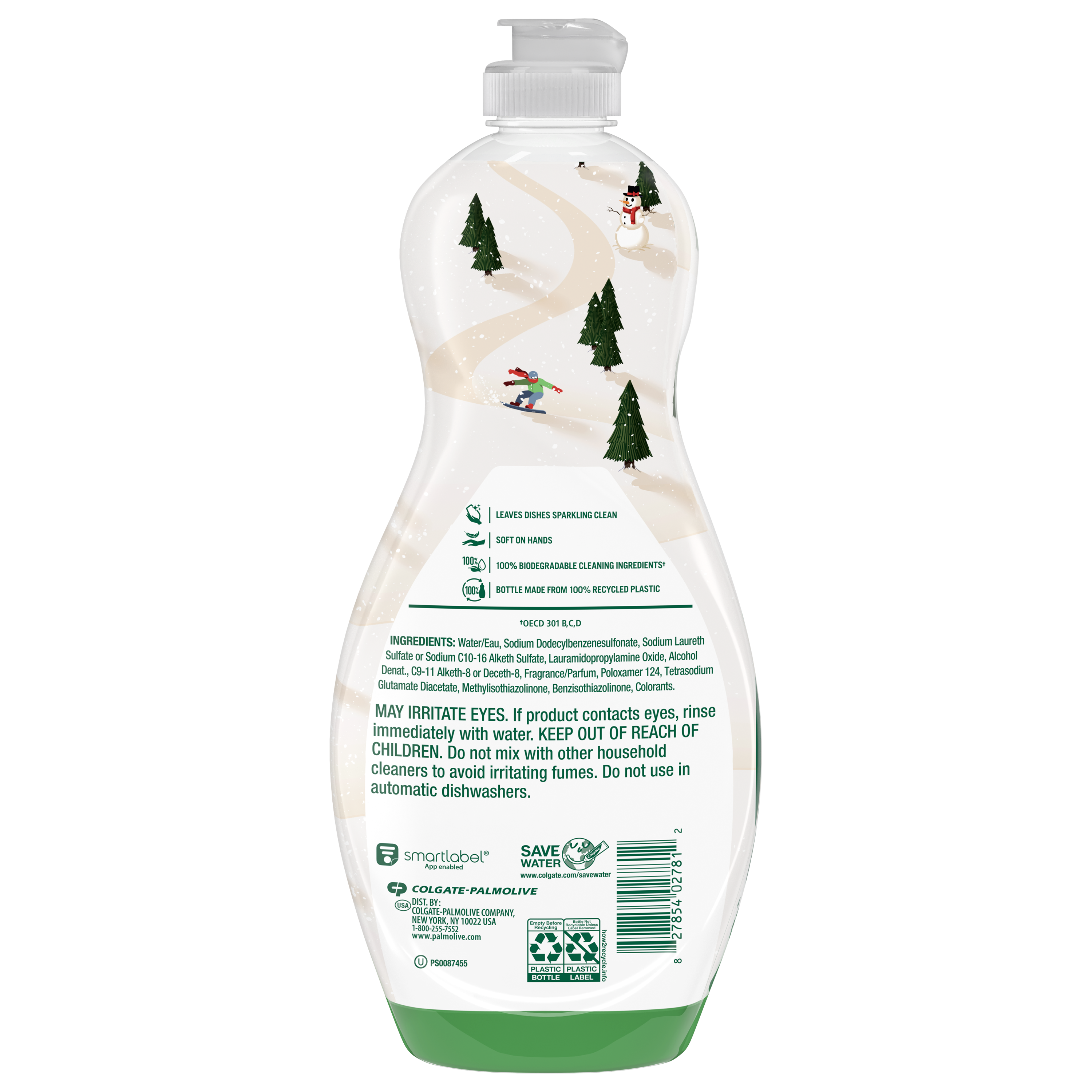 SKU 61054457 Consumer Unit - GTIN 00827854027812 Case - GTIN 10827854027819 Product Category Home Care Product Sub Category Dish Hand Product Equity (Brand) Palmolive Product Sub Brand Palmolive Ultra HD Product Title Palmolive Ultra Strength Liquid Dish Soap, Winter Edition, Original Scent, 20 fl oz Bottle Product Description Experience the trusted cleaning power of Palmolive Ultra Strength Original Liquid Dish Soap. This powerful dishwashing liquid instantly cuts grease and leaves your dishes sparkling clean with every wash, making even the toughest messes easy to tackle. Enjoy the classic, fresh aroma while knowing you’re making a responsible choice—Palmolive Ultra contains 0% parabens and phosphates. Tough on stubborn grease but gentle on hands, this green dish soap brings you the perfect balance of effective cleaning and caring ingredients. The rich, long-lasting suds help you power through piles of dishes quickly, while the unique holiday themed design in a decor-forward bottle adds holiday spirit to your sink. Make dishwashing feel effortless and festive with Palmolive Ultra Strength Limited Edition Original Scent—your kitchen essential for a sparkling clean, every time. Bullet 1 One 20 fl oz bottle of Palmolive Ultra Strength Liquid Dish Soap, Winter Edition, Original Scent Bullet 2 Instantly cuts through grease for powerful cleaning in your kitchen and beyond Bullet 3 This holiday dish soap leaves dishes sparkling clean and residue-free with every wash Bullet 4 This dishwashing liquid contains 0% parabens and phosphates Bullet 5 Tough on grease, yet soft on hands for a comfortable dishwashing experience Bullet 6 Enjoy the classic, fresh Original Scent in this limited edition bottle release Target RPC 94687322 Target URL https://www.target.com/p/a/-/A-94687322