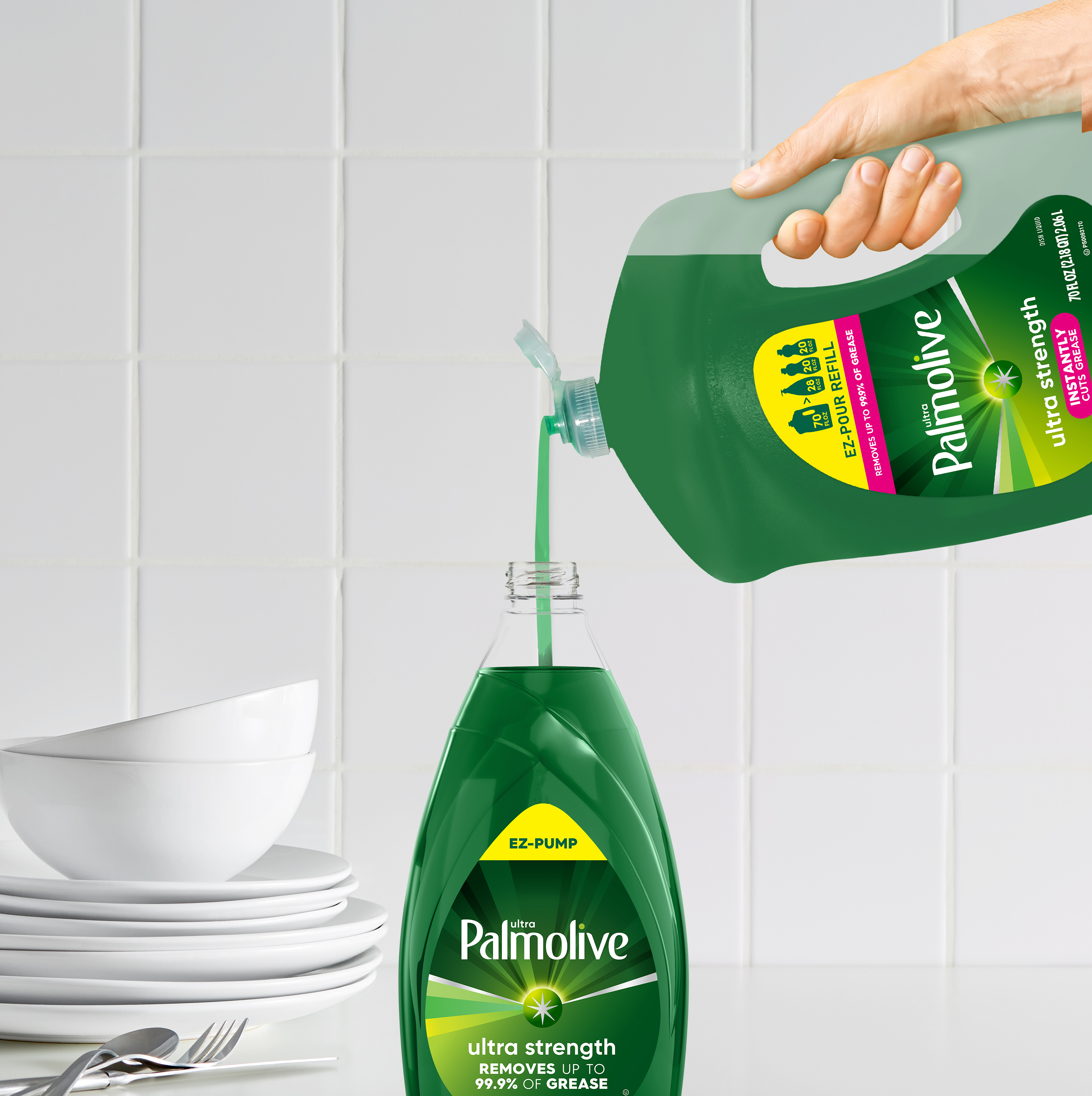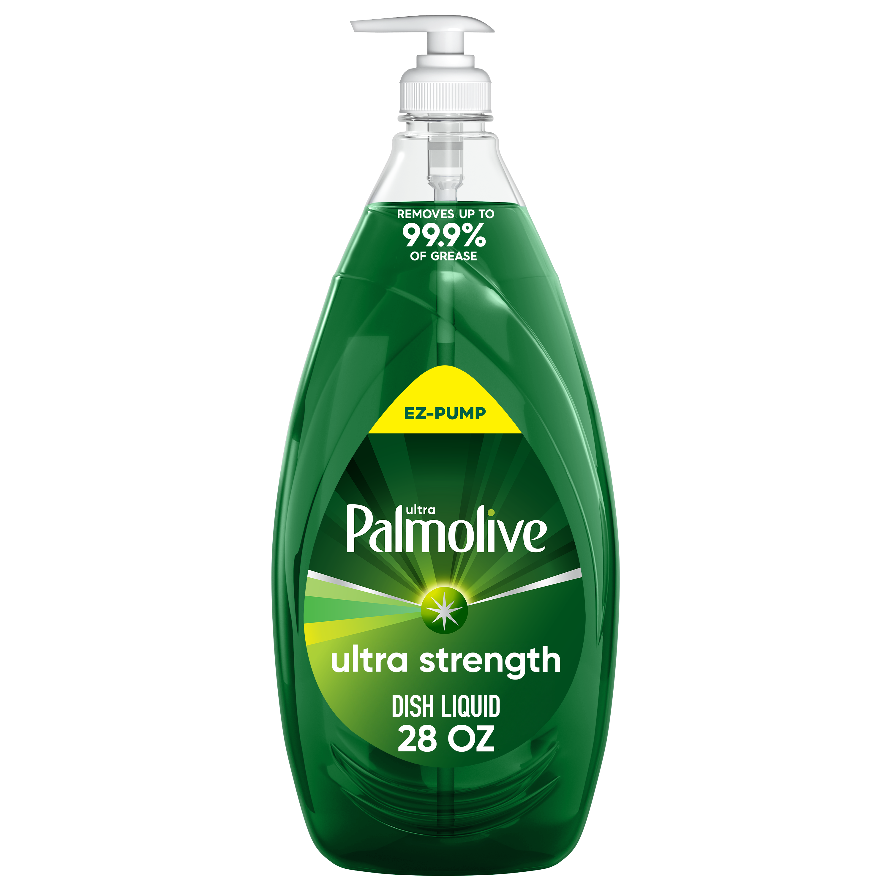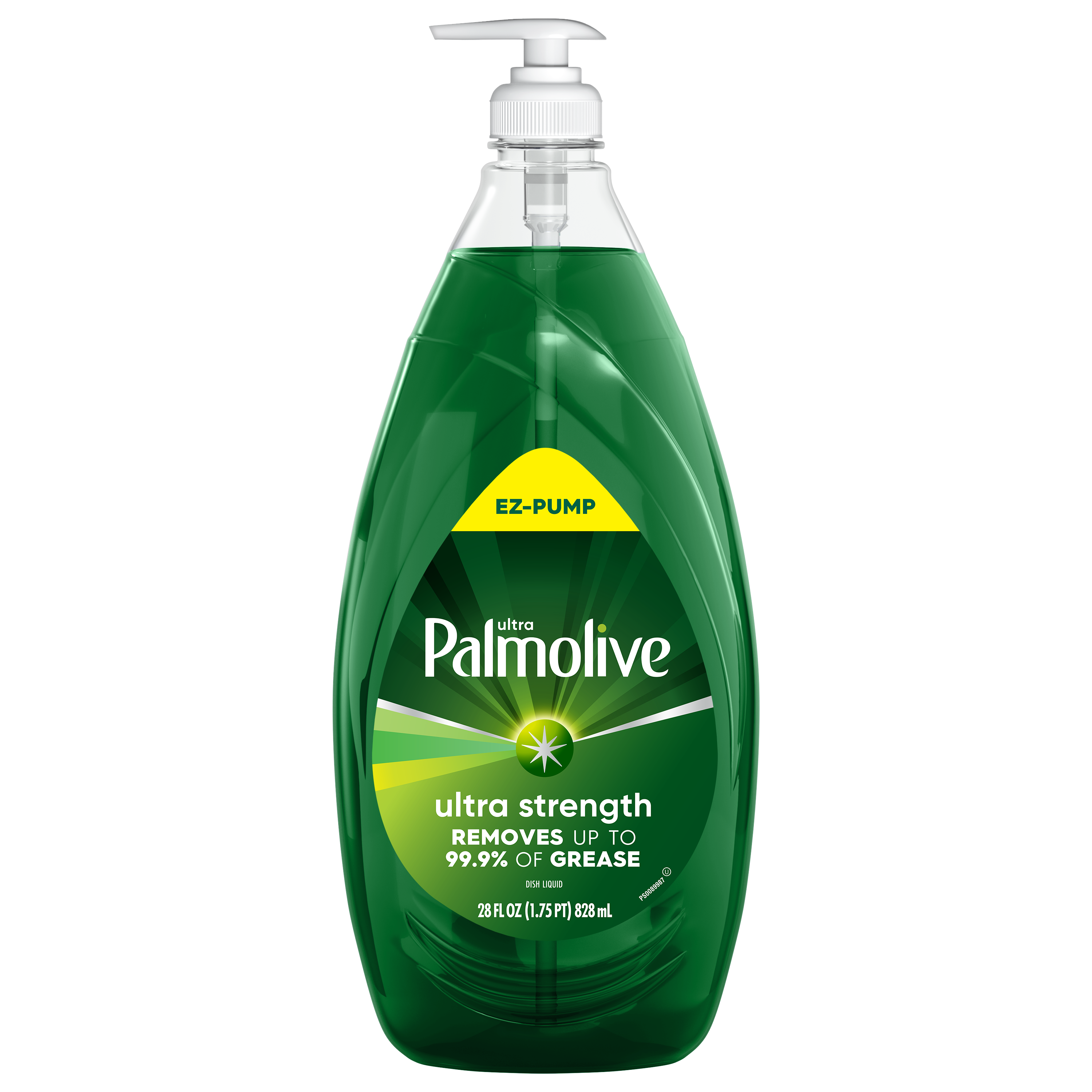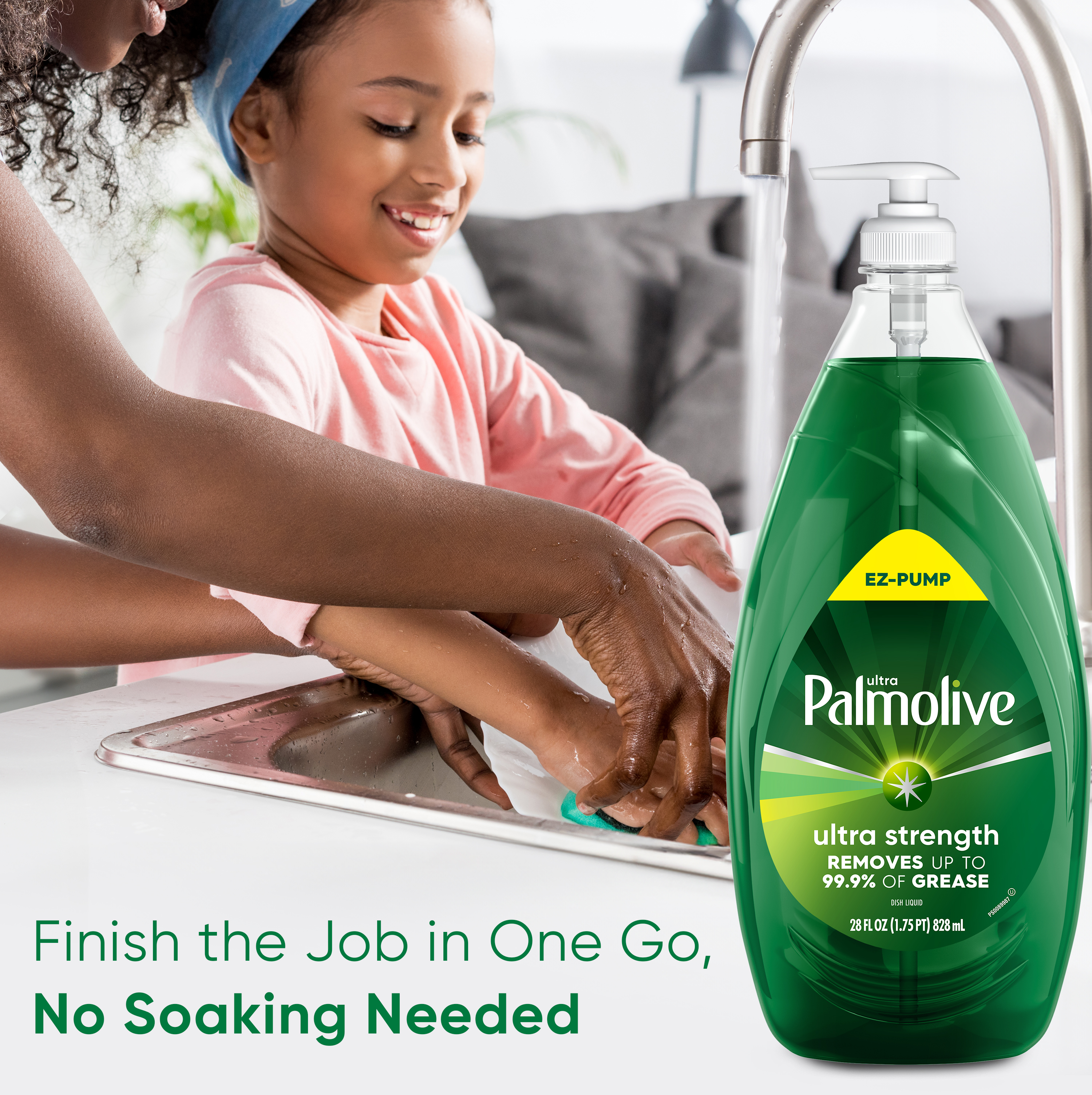 Palmolive Ultra Strength Liquid Dish Soap, Cuts Grease and Grime, No Soaking Needed, Powerful on Plastics, Dishwashing Liquid, 28 fl oz EZ-Pump, EZ-Clean Bottle