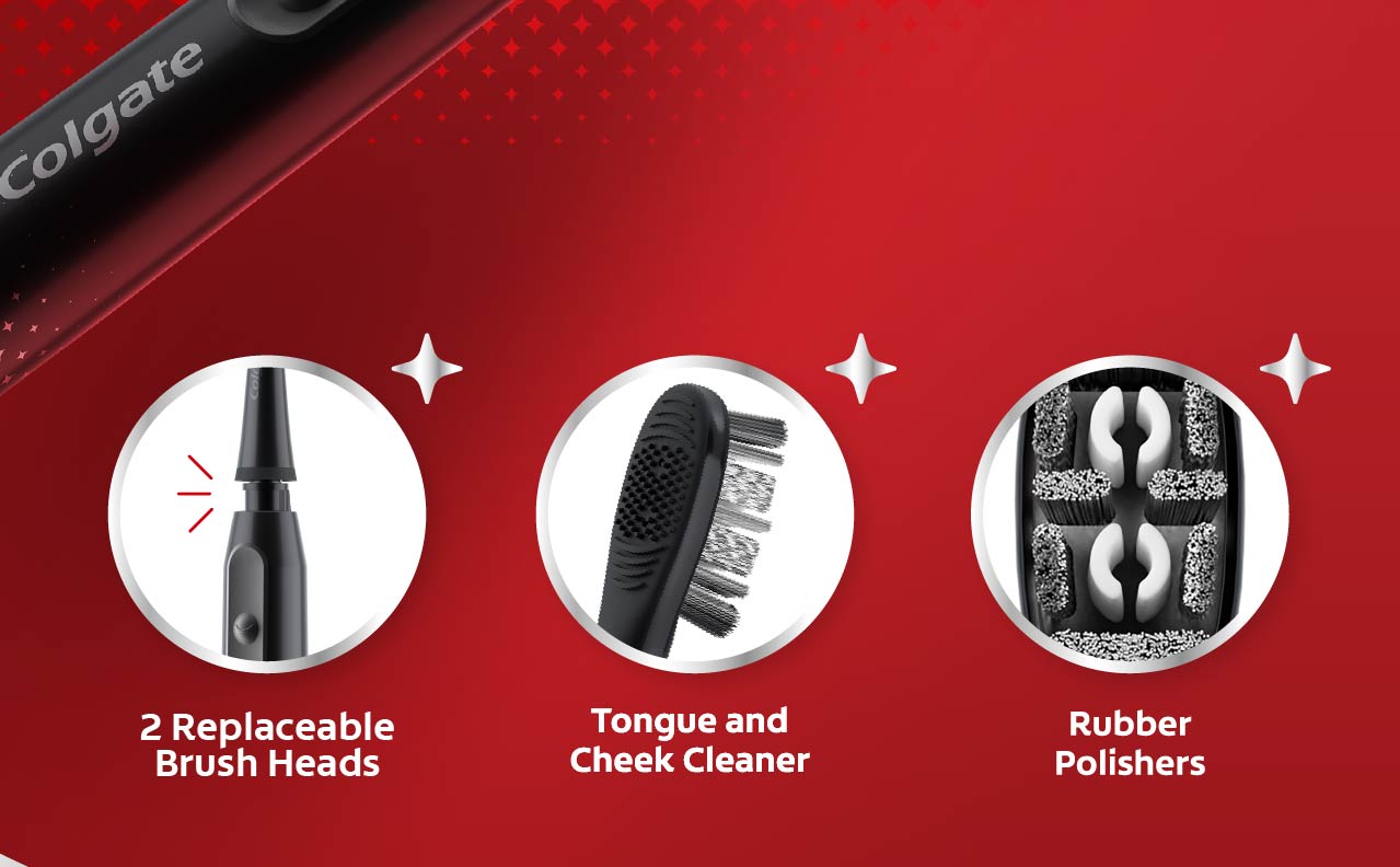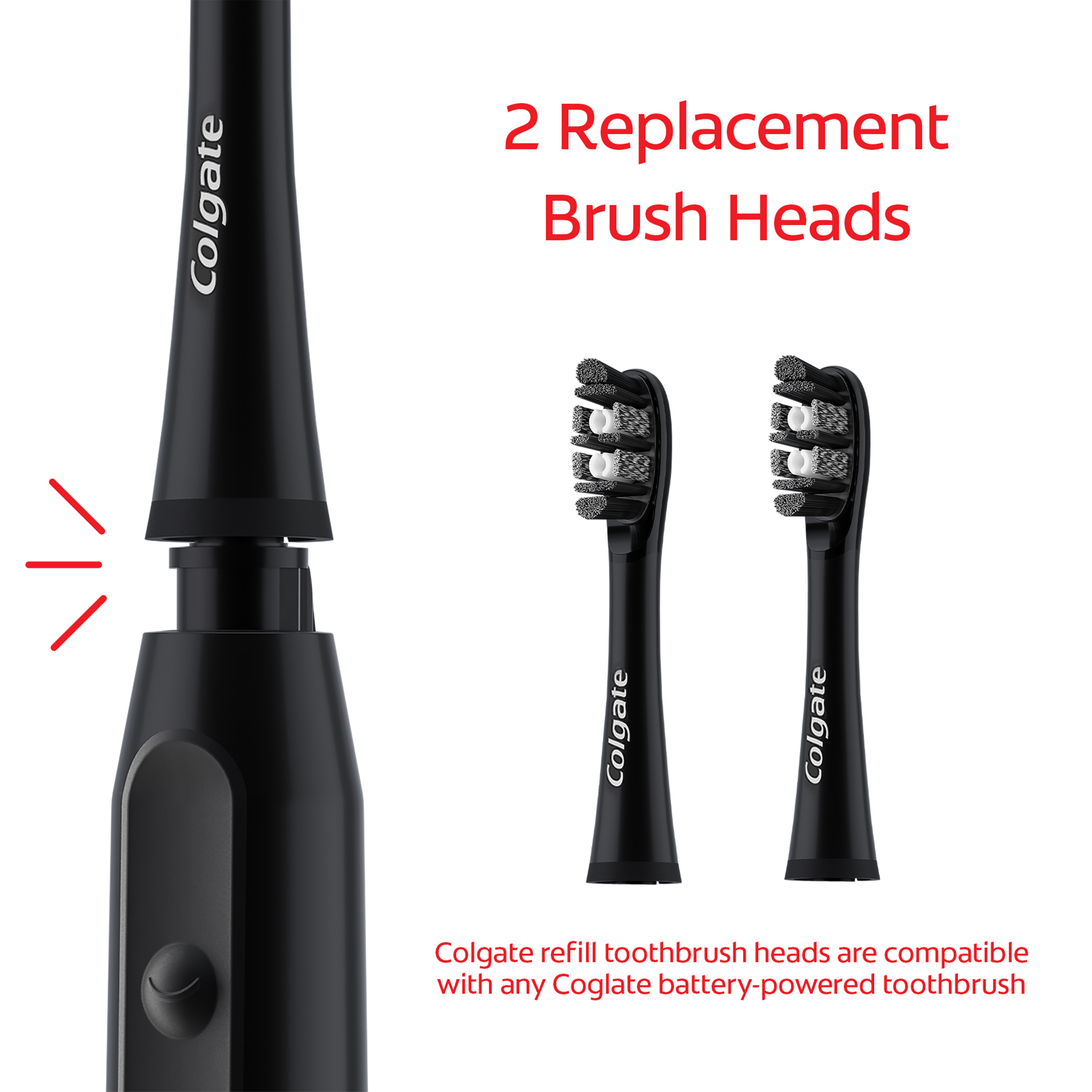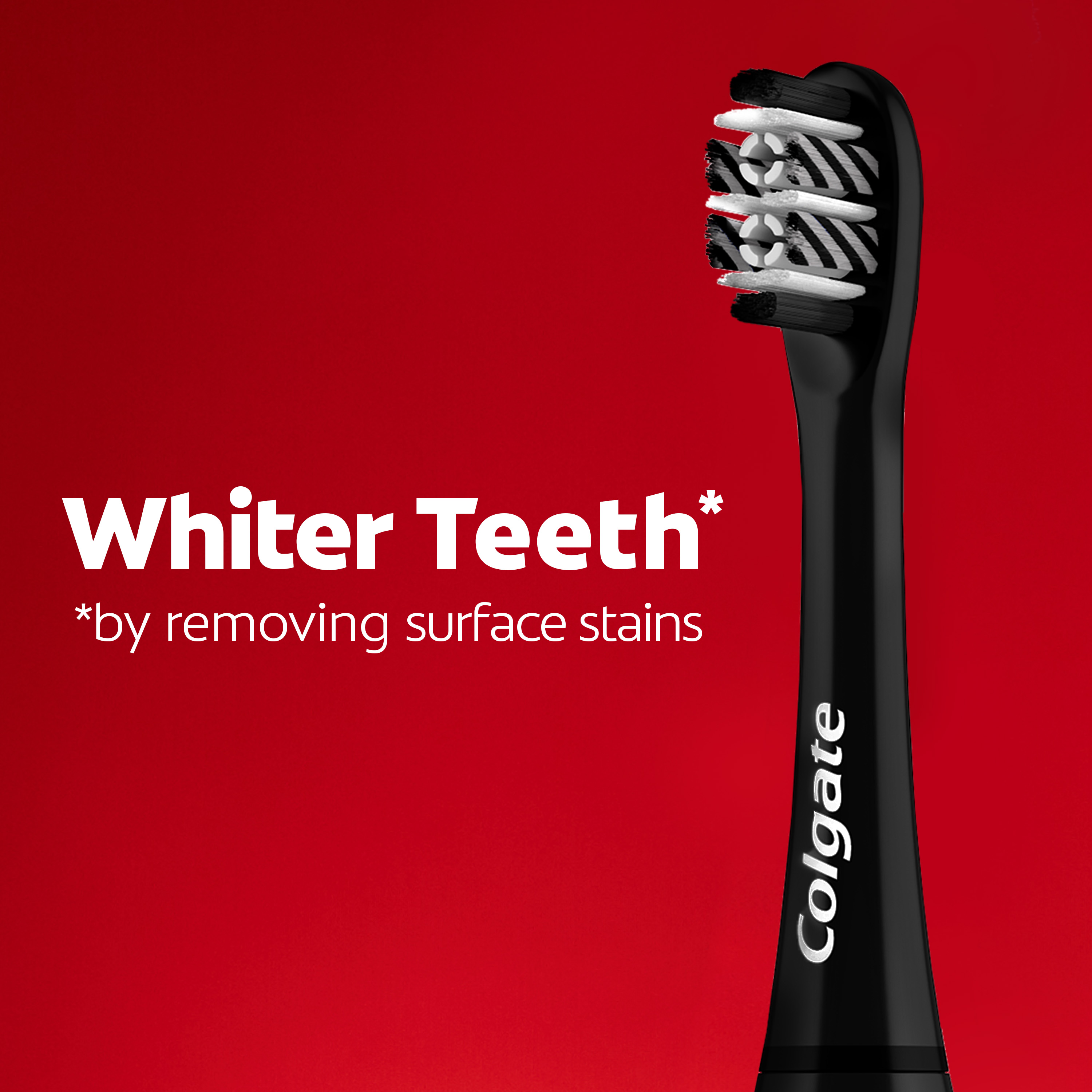 SKU 61056158 Consumer Unit - GTIN 00827854029380 Case - GTIN 10827854029387 Product Category Oral Care Product Sub Category Battery TB Product Equity (Brand) Colgate Product Sub Brand Colgate 360 ASB BTB Product Title Colgate Optic White Replacement Toothbrush Heads Pack, Black, 2 Count Product Description The Colgate Optic White Replacement Toothbrush Heads Pack includes two replacement brush heads so you always have extra power toothbrush replacement heads available for your Colgate Battery Powered Toothbrush. These Optic White replacement toothbrush heads are compatible with any type of adult Colgate battery toothbrush. These soft, battery toothbrush heads also feature a rubber polisher to help remove surface stains for whiter teeth. To replace the head of your Colgate battery-operated toothbrush, gently pull the old toothbrush head from the handle and press the replacement Optic White black toothbrush head into place. Experience the power of brightness at your fingertips* with Colgate Optic White Battery Replacement Toothbrush Heads. *by removing surface stains Bullet 1 Includes two (2) Colgate Optic White Replacement Toothbrush Heads with Soft Bristles, Black Bullet 2 Keep the brushing going and use these black toothbrush refill heads with any Colgate Optic White Battery Powered Toothbrush or Colgate hum toothbrush Bullet 3 This refill toothbrush pack includes two replacement brush heads that feature soft bristles Bullet 4 These Optic White soft toothbrush heads feature a rubber polisher on each head to help remove surface stains for whiter teeth Bullet 5 When it’s time to replace your battery operated toothbrush head, pull the old one from the handle and press the replacement toothbrush head in place Bullet 6 Always have extra toothbrush heads available with the Colgate Optic White Replacement Toothbrush Heads Pack Bullet 7 Dentists and hygienists recommend replacing your toothbrush head every 3 months