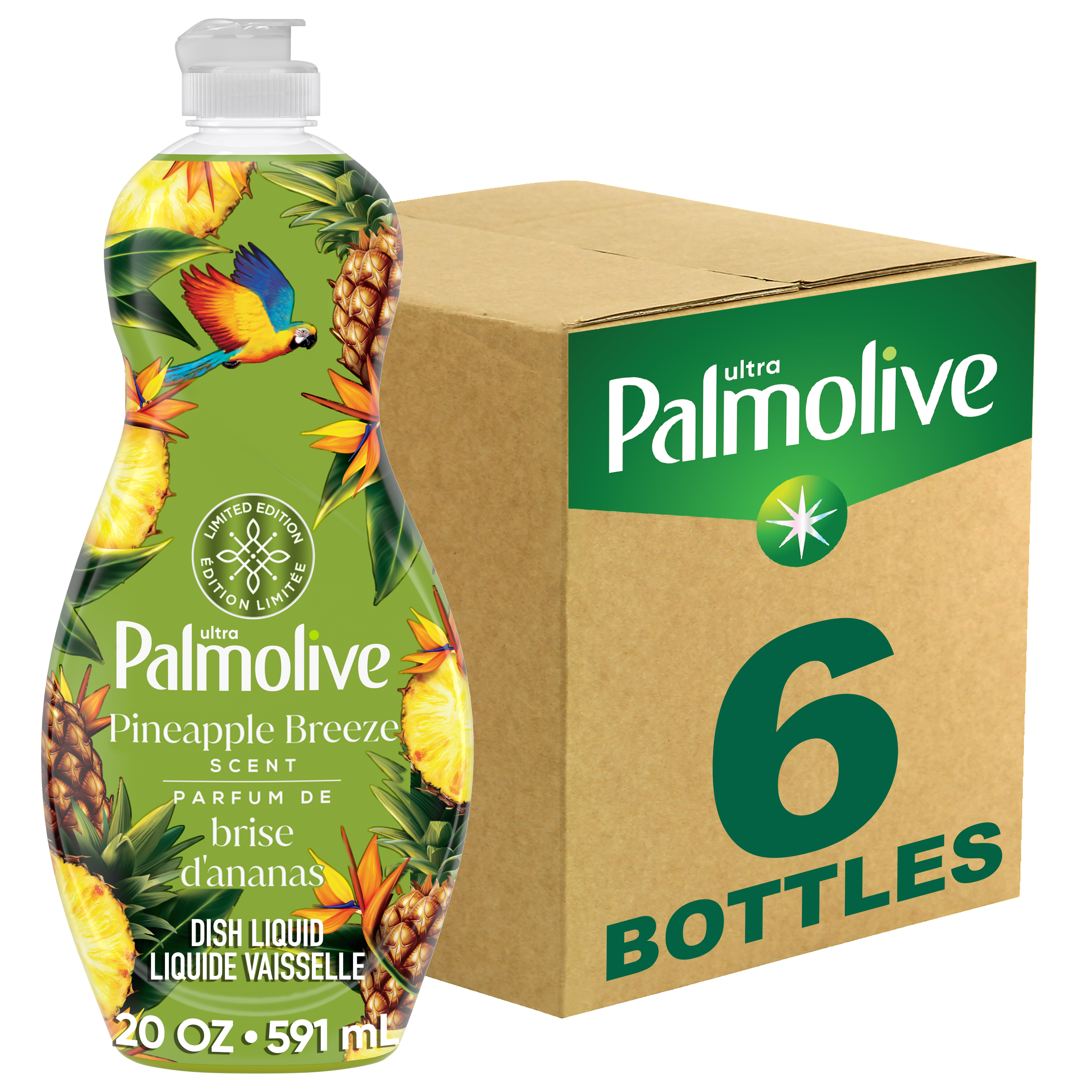 SKU 61056254 Consumer Unit - GTIN 09777777777770 Case - GTIN 88888888888884 Product Category Home Care Product Sub Category Dish Hand Product Equity (Brand) Palmolive Product Sub Brand Palmolive Ultra HD Product Title Palmolive Ultra Strength Liquid Dish Soap, Limited Edition Dishwashing Detergent, Pineapple Breeze Scent, 20 fl oz Bottle Product Description Experience the trusted cleaning power of Palmolive Ultra Strength Liquid Dish Soap, now available in a limited edition Pineapple Breeze Scent. Perfect for families and busy households, this dishwashing detergent instantly cuts through grease and leaves your dishes sparkling clean with every wash. Delight in the scent of freshly cut pineapple with this summer dish soap. Palmolive Ultra contains 0% parabens and phosphates, making it a paraben-free dish soap. Tough on grease but soft on hands, this dish soap liquid brings you the perfect balance of effective cleaning. Its versatile formula is a great addition to your dishwashing supplies, as it can also be used as a car tire cleaner, BBQ grill cleaner, or to pre-treat laundry stains for a fresh, clean space. The kitchen sink decor-forward bottle adds a vibrant pop of color to your sink and a cheerful, fruity summer scent. Make dishwashing feel uplifting with Palmolive Ultra Strength Limited Edition Pineapple Breeze Dish Soap—your kitchen essential for a brilliant shine every time. Bullet 1 One 20 fl oz bottle of Palmolive Ultra Strength Liquid Dish Soap, Limited Edition, Pineapple Breeze Scent for powerful kitchen cleaning Bullet 2 Enjoy the smell of freshly cut pineapple in this seasonal dish soap, perfect for adding summer fragrance to your kitchen Bullet 3 Palmolive dish detergent instantly cuts through grease for a powerful clean but is soft on hands for comfortable dishwashing, perfect for families and busy households Bullet 4 This dishwashing liquid leaves your dishes sparkling clean with every wash, making even the toughest messes easier to tackle Bullet 5 Palmolive Ultra contains 0% parabens and phosphates, making it a great addition to your dishwashing supplies Bullet 6 Use as a car tire cleaner, BBQ grill cleaner, or to pre-treat laundry stains for a fresh, clean space Bullet 7 Beautifully designed limited edition Pineapple Breeze scent that adds a pop of color to the sink and creates a fragrant dishwashing experience