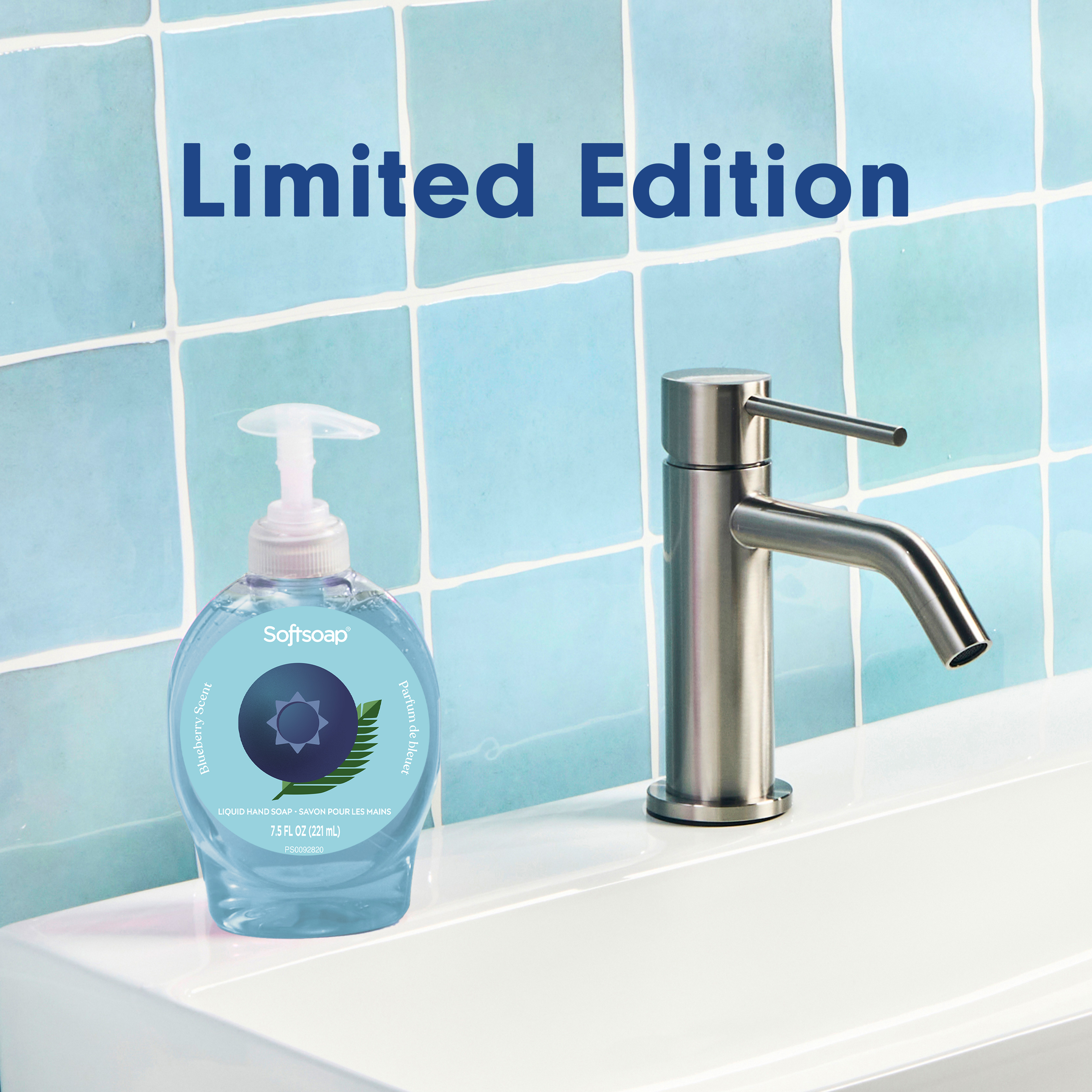 SKU 61056281 Consumer Unit - GTIN 00827854029656 Case - GTIN 10827854029653 Product Category Personal Care Product Sub Category Liquid Hand Wash Product Equity (Brand) Softsoap Product Sub Brand Softsoap LHW Product Title Softsoap Limited Edition Liquid Hand Soap, Blueberry Scent, 7.5 fl oz Pump Bottle Product Description Brighten your day with the refreshing clean of Softsoap Limited Edition Liquid Hand Soap, Blueberry Scent. As the #1 liquid hand soap brand*, Softsoap introduces a limited edition, seasonally inspired scented hand soap that captures the vibrant, uplifting fragrance of blueberries. This liquid hand soap washes away bacteria to keep hands clean and fresh, making it perfect for families, and ideal for daily use. Designed as a bathroom hand soap and kitchen hand soap, this hand soap comes in a convenient pump bottle for easy handwashing at the sink. The blue hand soap adds a bright accent to your home and sparks joy with every handwash. Formulated to care for skin, this paraben-free hand soap and phthalate-free hand soap helps retain skin’s natural moisture and is pH balanced for your skin. Choose Softsoap Liquid Hand Soap for a limited edition soap that keeps hands clean and fresh and brings seasonal joy for your sink. *Based in part on data reported by Nielsen through its Market Track Service for the Liquid Hand Soap Category for the 52 week period ending 09/13/25, for the All Outlet market. Copyright © 2025 Nielsen. eCommerce Copy- Long Description Infuse your daily routine with Softsoap’s Limited Edition Blueberry Scented Liquid Hand Soap. Add a touch of fun with this delightful hand soap that sparks joy with every pump, turning a simple task into a cheerful moment. Softsoap is America's #1 Liquid Hand Soap brand (1), trusted to clean your hands since 1975. Enjoy the sweet, vibrant scent of blueberries with our seasonal hand soap, capturing the essence of ripe berry fields and refreshing bursts of freshness. Our formula is pH balanced, is paraben free, and formulated without phthalates. This hand soap helps retain your skin's natural moisture after every wash. Health care agencies recommend washing hands with soap and clean running water for 20 seconds to wash away dirt and bacteria. Don't miss the chance to make every hand wash a moment of happiness; grab yours while supplies last. (1) Based in part on data reported by Nielsen through its Market Track Service for the Liquid Hand Soap Category for the 52 week period ending 9/28/24, for the All Outlet market. Copyright © 2024 Nielsen. Bullet 1 One 7.5 fl oz pump bottle of Softsoap Limited Edition Liquid Hand Soap, Blueberry Scent, #1 liquid hand soap brand* Bullet 2 Seasonally inspired hand soap that captures the vibrant, uplifting fragrance of blueberries Bullet 3 This scented hand soap washes away bacteria and helps you and your family maintain clean hands with every wash Bullet 4 Perfect for use as a kitchen or bathroom hand soap, uplifting every handwashing moment with its blueberry hand soap fragrance Bullet 5 This paraben-free hand soap and phthalate-free hand soap helps retain skin’s natural moisture and is pH balanced for your skin Walmart RPC 17738705729 Walmart URL (Computed) https://www.walmart.com/ip/a/17738705729