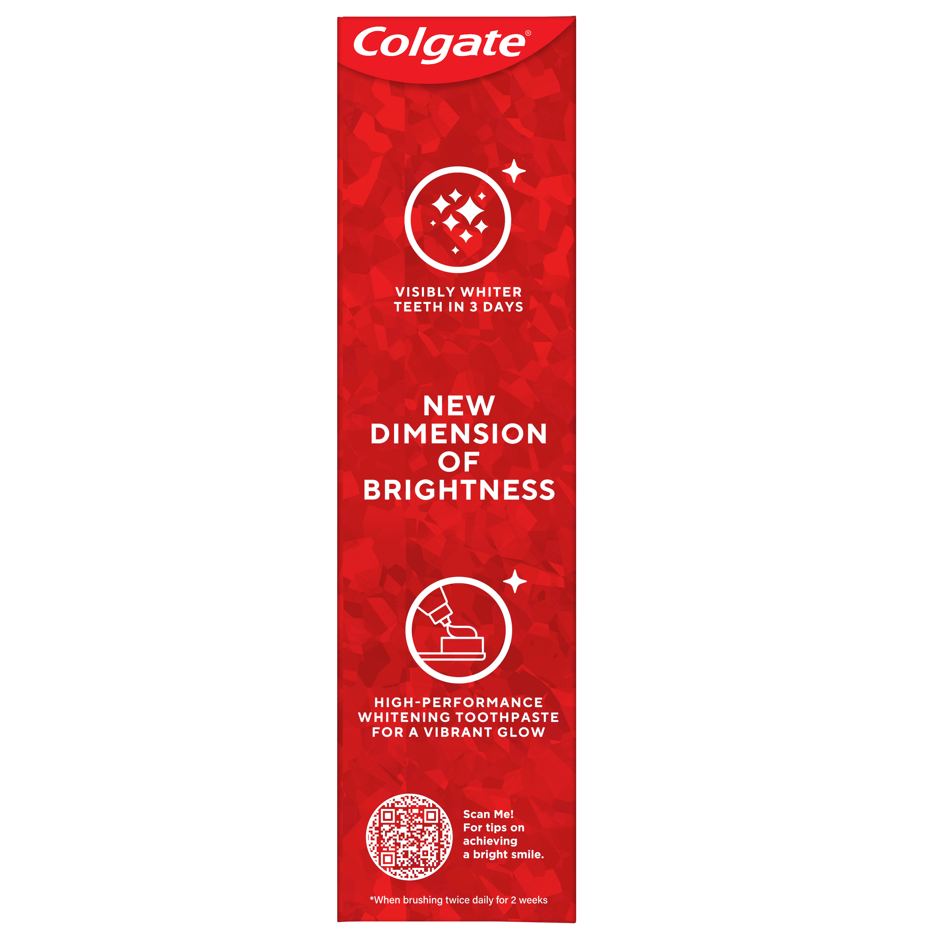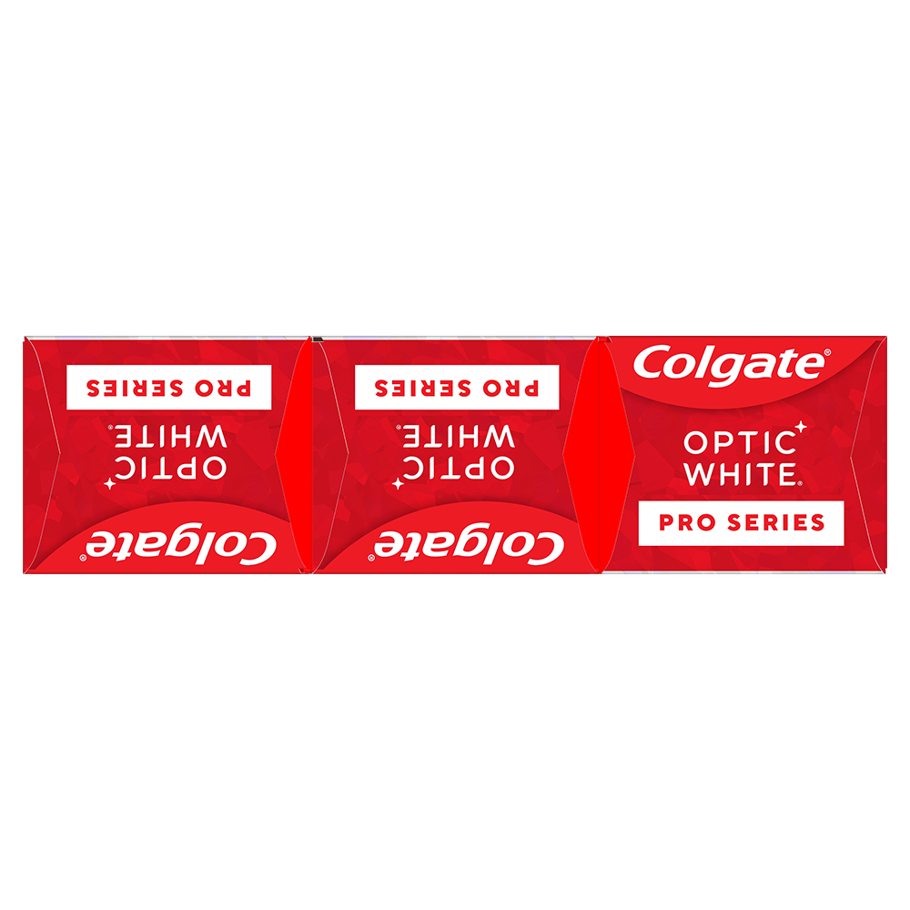 SKU 61057374 Consumer Unit - GTIN 00827854030652 Case - GTIN 10827854030659 Product Category Oral Care Product Sub Category Toothpaste Product Equity (Brand) Colgate Product Sub Brand Colgate Optic White TP Product Title Colgate Optic White Pro Series High Impact White Toothpaste, 3 Pack, 3.0 OZ Product Description Powered by HP Complex, our unique formulation of Hydrogen Peroxide, Optic White Pro Series gives you 5X whiter teeth than the leading whitening toothpaste after 1 day*. This clinically proven formula contains Hydrogen Peroxide, the same whitening ingredient used by dentists. Plus, innovative ActivShine Technology polishes the enamel surface to reveal next-level shine. Achieve visibly whiter teeth in 3 days** as the dual-action teeth whitening formula brushes surface stains away while dissolving tough stains below the surface. After two weeks, this 5% hydrogen peroxide toothpaste removes 15 years of deep-set stains**. Plus, ActiveShine Technology polishes enamel for a bright, glowing smile. Optic White Pro Series toothpaste dissolves deep-set stains without causing tooth sensitivity or compromising enamel health. With this invigorating mint toothpaste, there’s no need to choose between having a bright smile and safeguarding your enamel. *vs. Crest 3D White Advanced silica-based toothpaste. Use as directed. **when brushing twice daily for 2 weeks eCommerce Copy- Long Description Powered by HP Complex, our unique formulation of Hydrogen Peroxide, Optic White Pro Series gives you 5X whiter teeth than the leading whitening toothpaste after 1 day*. This clinically proven formula contains Hydrogen Peroxide, the same whitening ingredient used by dentists. Plus, innovative ActivShine Technology polishes the enamel surface to reveal next-level shine. Achieve visibly whiter teeth in 3 days** as the dual-action teeth whitening formula brushes surface stains away while dissolving tough stains below the surface. After two weeks, this 5% hydrogen peroxide toothpaste removes 15 years of deep-set stains**. Plus, ActiveShine Technology polishes enamel for a bright, glowing smile. Optic White Pro Series toothpaste dissolves deep-set stains without causing tooth sensitivity or compromising enamel health. With this invigorating mint toothpaste, there’s no need to choose between having a bright smile and safeguarding your enamel. *vs. Crest 3D White Advanced silica-based toothpaste. Use as directed. **when brushing twice daily for 2 weeks Bullet 1 Three 3.0 OZ tubes of Colgate Optic White Pro Series High Impact White Toothpaste, Brilliant Mint Bullet 2 Effectively removes tea, coffee, and wine stains, as shown in a laboratory study; deeply whitens beyond surface stains with 5% hydrogen peroxide Bullet 3 Get 5X whiter teeth than the leading teeth whitening toothpaste after 1 day* *vs. Crest 3D White Advanced silica-based toothpaste, use as directed Bullet 4 Includes 5% hydrogen peroxide, plus uses a clinically proven formula with HP complex to remove both deep-set and surface stains Bullet 5 This whitening toothpaste pack features ActivShine Technology which polishes the enamel surface and reflects light to reveal a next-level shine Bullet 6 Invigorating mint toothpaste combines clean wintergreen and smooth peppermint flavors Bullet 7 85% of people notice a positive difference in their teeth in 7 days when used as directed Amazon RPC B0G2T1S85K AMZ URL https://www.amazon.com/dp/B0G2T1S85K