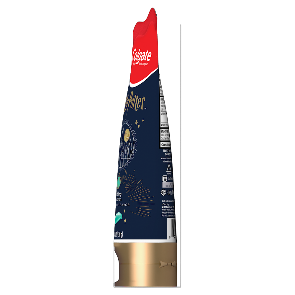 SKU 61057795 Consumer Unit - GTIN 00827854031048 Case - GTIN 10827854031045 Product Category Oral Care Product Sub Category Toothpaste Product Equity (Brand) Colgate Product Sub Brand Colgate Kids TP Product Title Colgate Harry Potter Kids Toothpaste with Fluoride, Bubblegum Bubbling Cauldron, 4 Pack, 4.6 Oz Product Description Turn regular brushing time into an enchanting adventure using Colgate Harry Potter Kids Toothpaste with Fluoride. Specially crafted for children ages 2 and older, this value 4 pack of kids anticavity toothpaste offers a Bubbling Cauldron bubblegum toothpaste flavor that makes brushing teeth feel exciting. This fluoride kids toothpaste offers cavity protection and is an ADA accepted toddler toothpaste with fluoride. Defend against the dark arts of cavities with the Colgate Harry Potter Kids Fluoride Toothpaste. This Colgate kids toothpaste contains fluoride, a clinically proven ingredient that fights cavities. In addition to fighting cavities, this fluoride formulated kids toothpaste also helps strengthen teeth and is gentle on kids’ tooth enamel. Plus, parents will appreciate this kids cavity protection toothpaste is sugar free, gluten free, paraben free, vegan, and contains no artificial preservatives. Make brushing feel adventurous with Colgate Harry Potter Kids Toothpaste with Fluoride. This kids fluoride toothpaste pack is ideal for parents stocking up on anticavity toothpaste for kids who are age 2 years and older. Help young Harry Potter fans build healthy oral care habits for a bright future with Colgate Harry Potter Kids Toothpaste with Fluoride. eCommerce Copy- Long Description Turn regular brushing time into an enchanting adventure using Colgate Harry Potter Kids Toothpaste with Fluoride. Specially crafted for children ages 2 and older, this value 4 pack of kids anticavity toothpaste offers a Bubbling Cauldron bubblegum toothpaste flavor that makes brushing teeth feel exciting. This fluoride kids toothpaste offers cavity protection and is an ADA accepted toddler toothpaste with fluoride. Defend against the dark arts of cavities with the Colgate Harry Potter Kids Fluoride Toothpaste. This Colgate kids toothpaste contains fluoride, a clinically proven ingredient that fights cavities. In addition to fighting cavities, this fluoride formulated kids toothpaste also helps strengthen teeth and is gentle on kids’ tooth enamel. Plus, parents will appreciate this kids cavity protection toothpaste is sugar free, gluten free, paraben free, vegan, and contains no artificial preservatives. Make brushing feel adventurous with Colgate Harry Potter Kids Toothpaste with Fluoride. This kids fluoride toothpaste pack is ideal for parents stocking up on anticavity toothpaste for kids who are age 2 years and older. Help young Harry Potter fans build healthy oral care habits for a bright future with Colgate Harry Potter Kids Toothpaste with Fluoride. Bullet 1 WHAT'S INCLUDED: Four (4) 4.6 oz tubes of Colgate Harry Potter Kids Toothpaste with Fluoride in a magical Bubbling Cauldron bubblegum toothpaste flavor; value 4-pack for families stocking up on kids anticavity toothpaste Bullet 2 PROTECTS AGAINST CAVITIES: This ADA accepted kids fluoride toothpaste pack is gentle on enamel and clinically proven to fight against cavities and help strengthen teeth Bullet 3 FOR AGES 2 AND UP: You can use this fluoride-formulated Harry Potter toothpaste pack for children ages 2 and up, making this a great toddler toothpaste Bullet 4 ENCHANTING FLAVOR: The Bubbling Cauldron flavor delivers an enchanting bubblegum toothpaste flavor that kids love and encourages healthy oral care habits Bullet 5 SUGAR-FREE FORMULA: This kids anticavity toothpaste is gluten free, sugar free, paraben free, vegan, and contains no artificial preservatives Amazon RPC B0G44LYG35 AMZ URL https://www.amazon.com/dp/B0G44LYG35