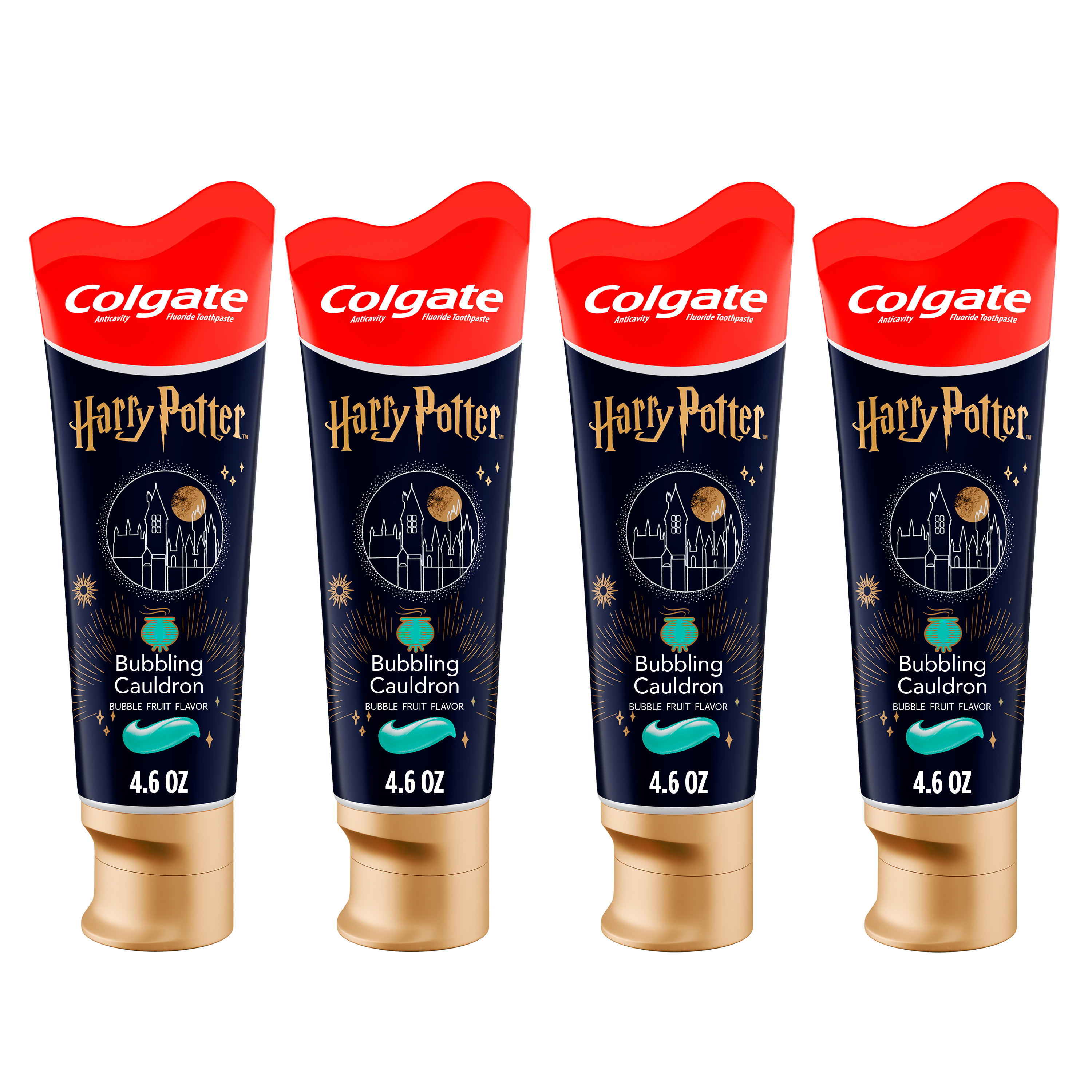 Colgate Harry Potter Kids Toothpaste with Fluoride, Bubblegum Bubbling Cauldron, 4 Pack, 4.6 Oz